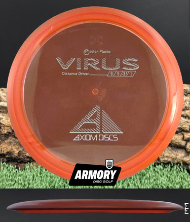 The Virus is Axiom’s easiest to throw distance driver, with a glide and responsive understability that keeps it in the air. Power throwers will be able to flex huge turnover shots with straight forward fade. Average throwers will be able to extend and shape lines using the Virus’ turn and gentle fade. Compared to the MVP lineup, the Virus resembles a worn-in Impulse.