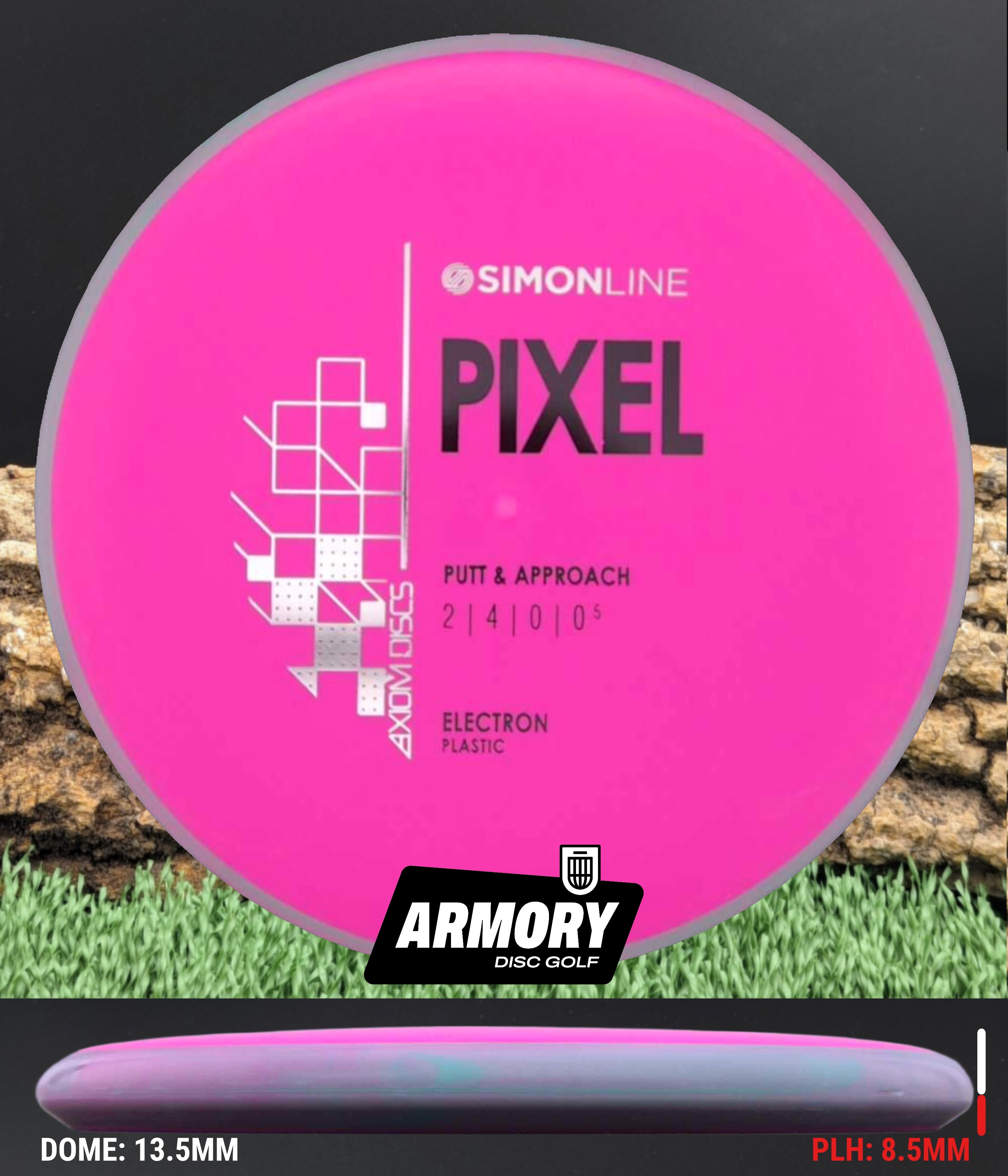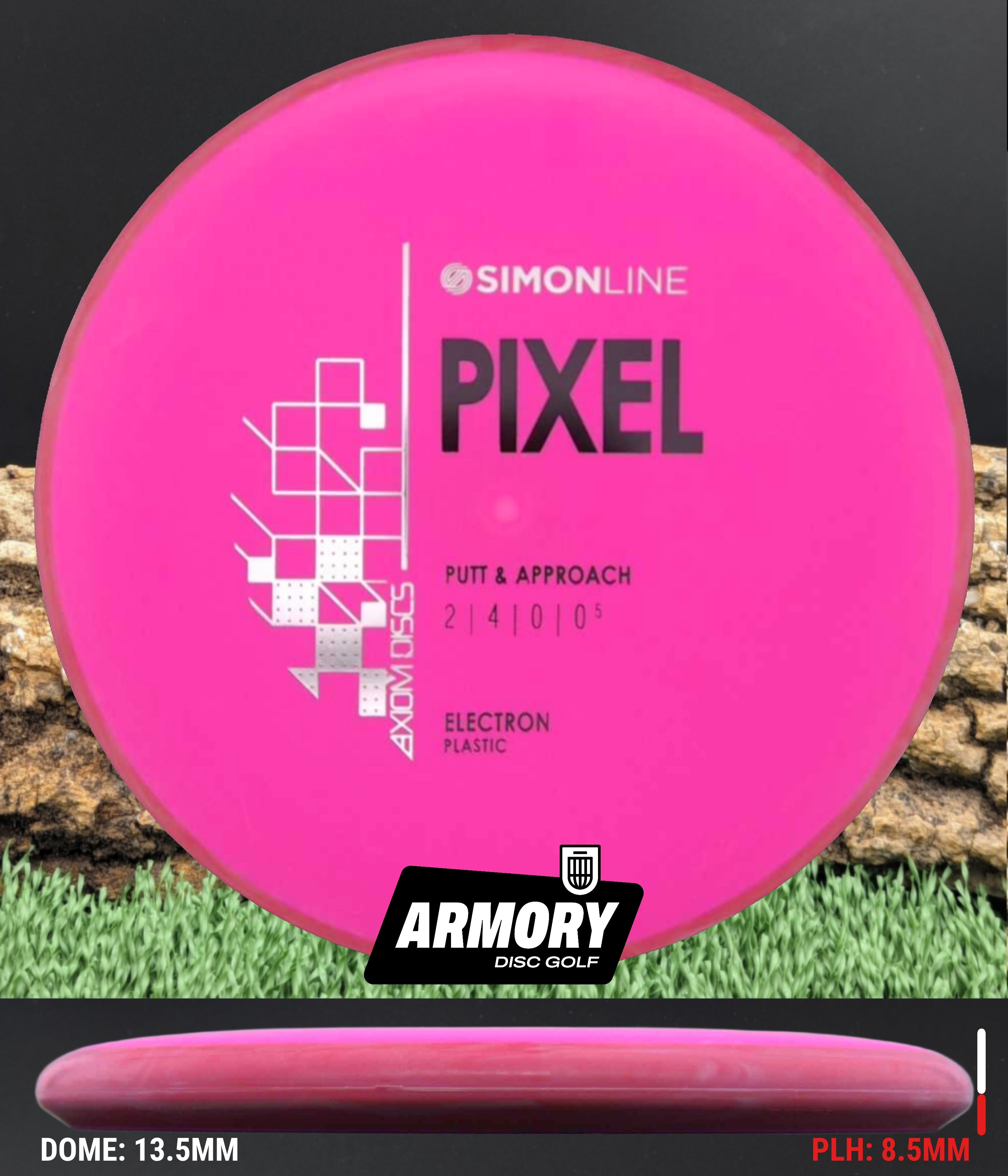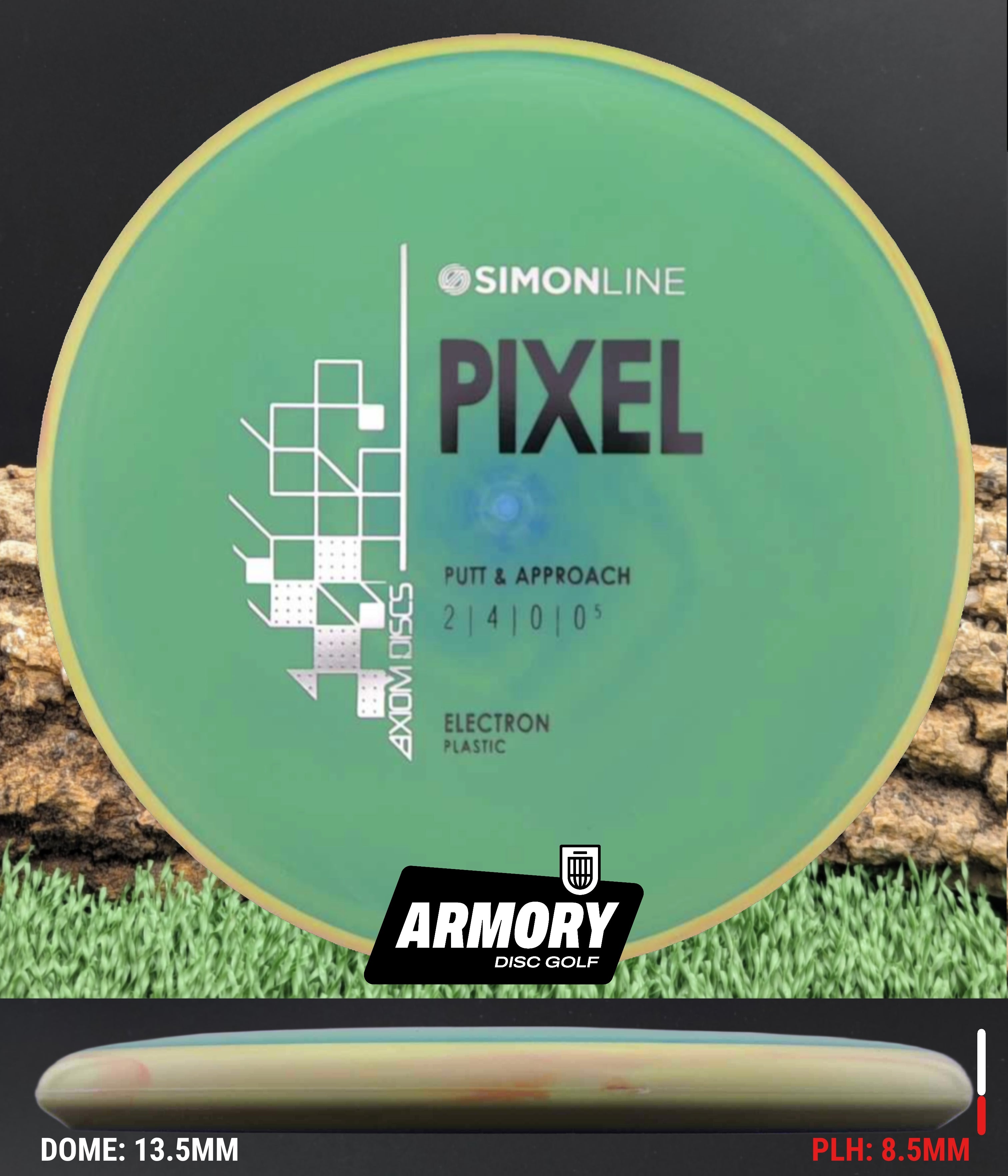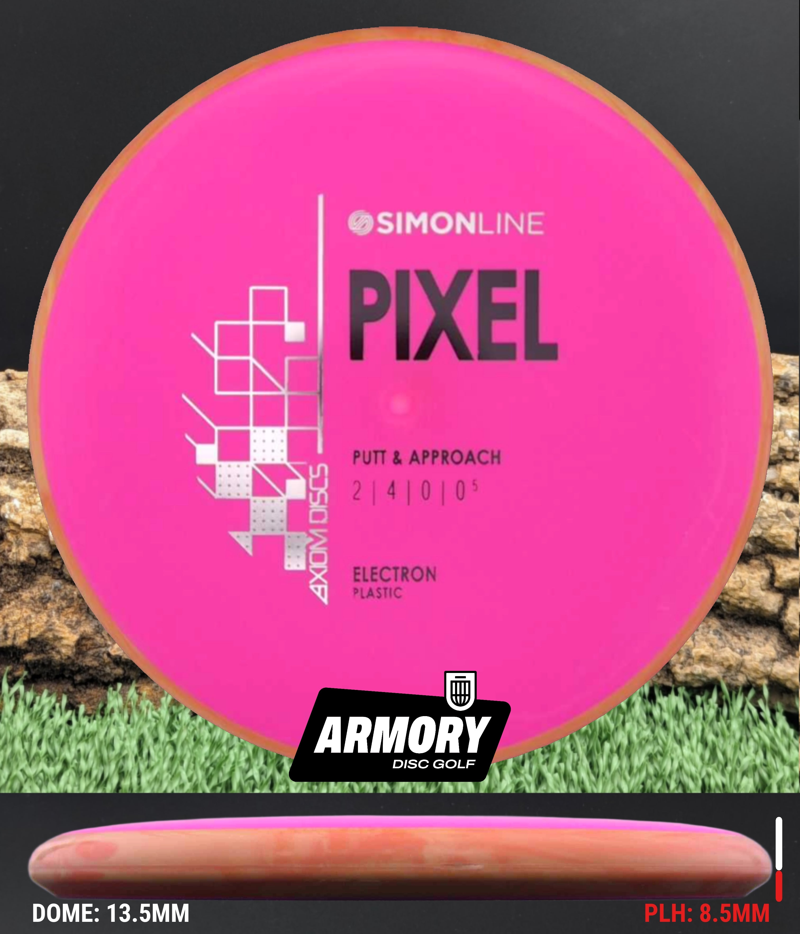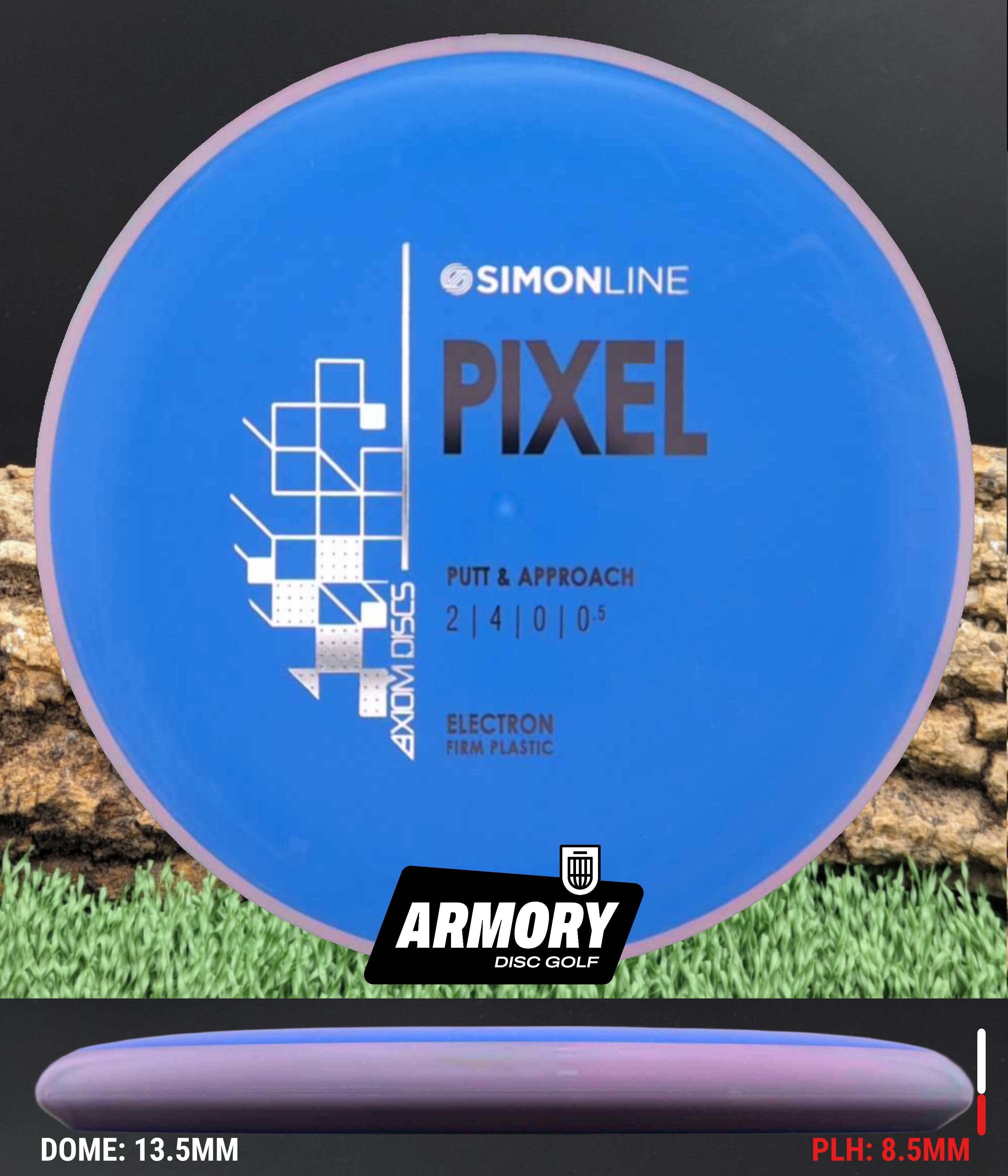 The Axiom Pixel marks the second release in the Simon Line, capturing the smooth, precise feel that defines Simon Lizotte’s game. Featuring flight numbers of 2 | 4 | 0 | 0.5, the Pixel offers a deep profile with a micro-bead rim for an ultra-clean release. Designed for both spin and push putting styles, this putter delivers laser-straight flights with effortless glide — the definition of point-and-shoot putting.
