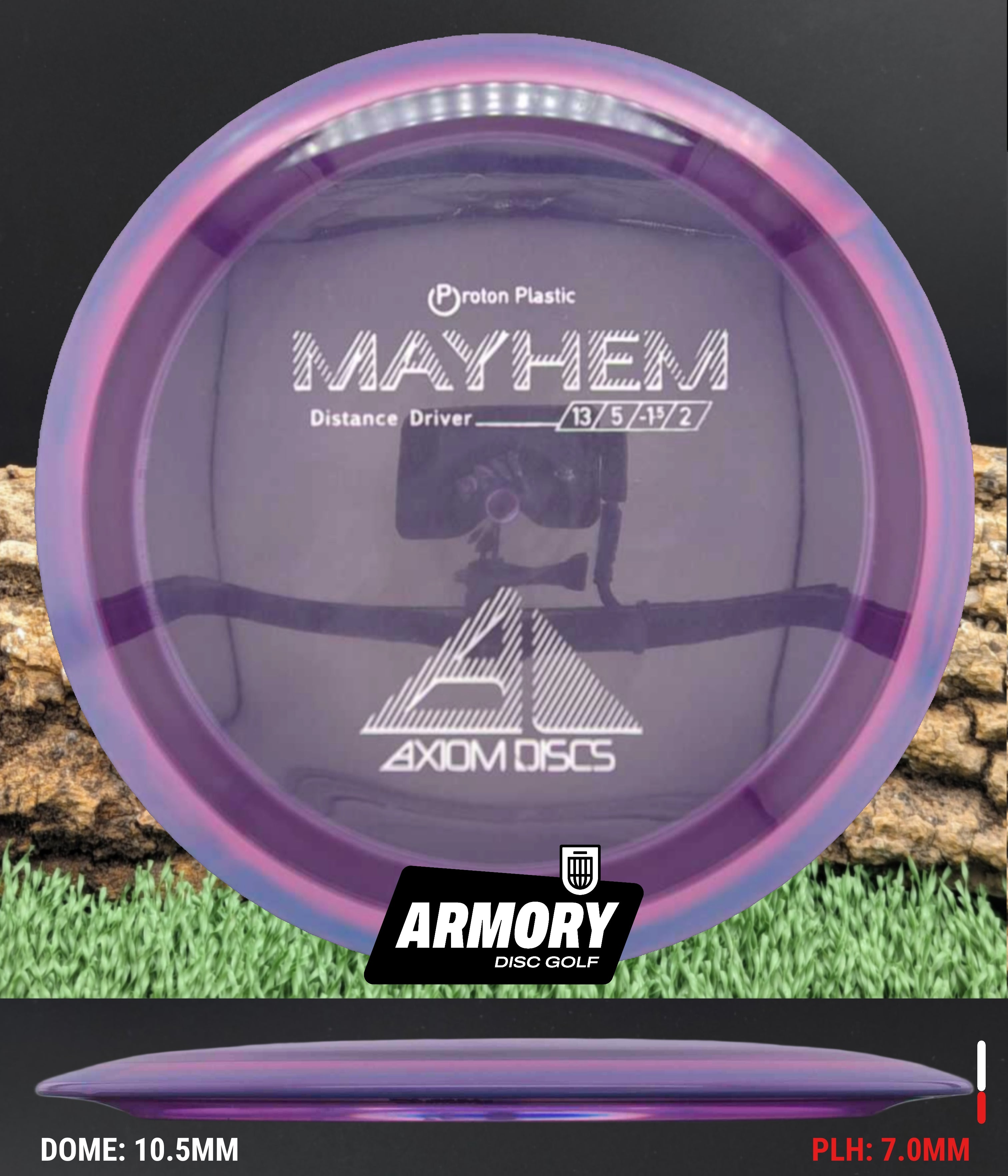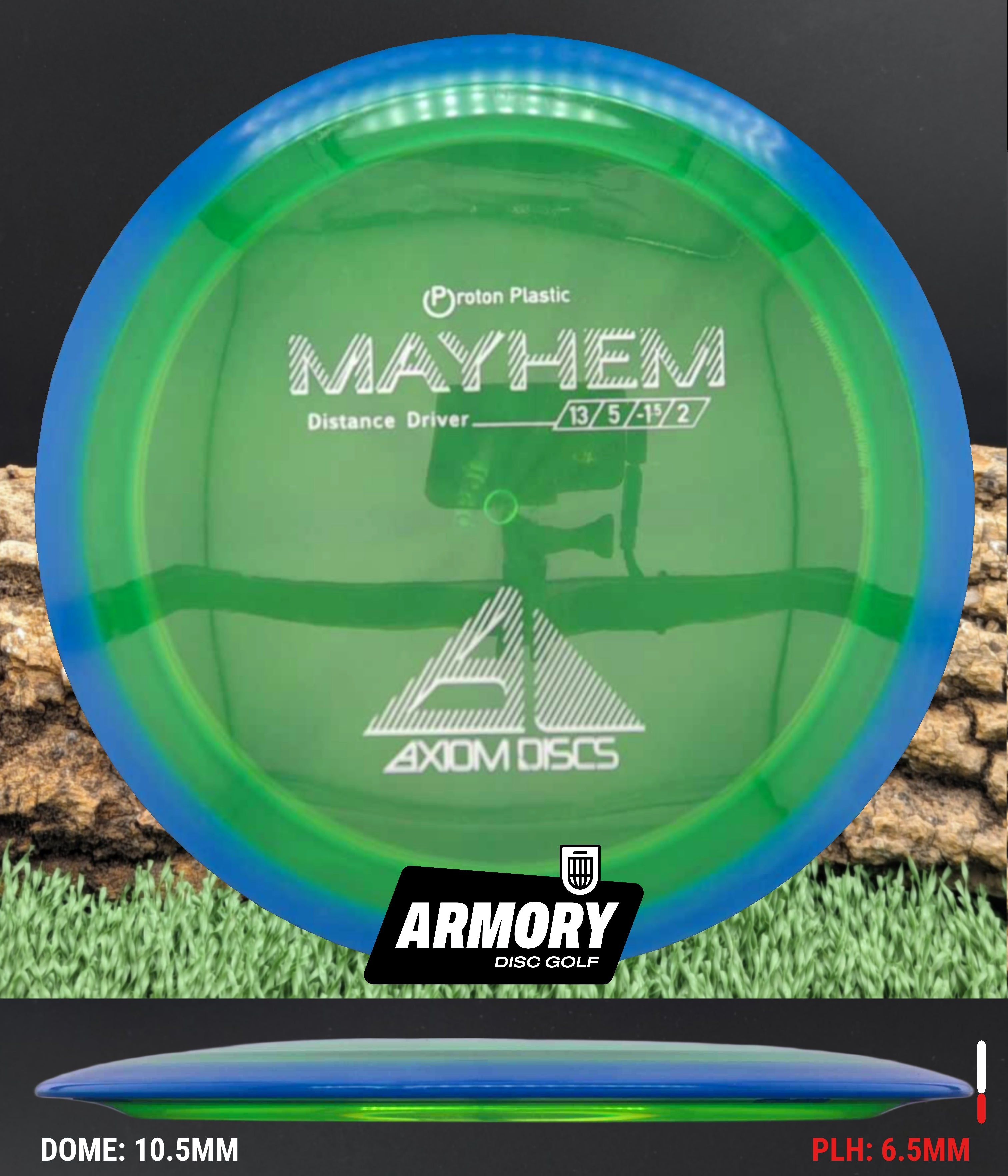 The Axiom Mayhem is a high-speed distance driver that blends power, glide, and control into one sleek package. With flight numbers of 13 | 5 | -1.5 | 2, the Mayhem offers long, workable flights that make it a go-to driver for players with solid arm speed.