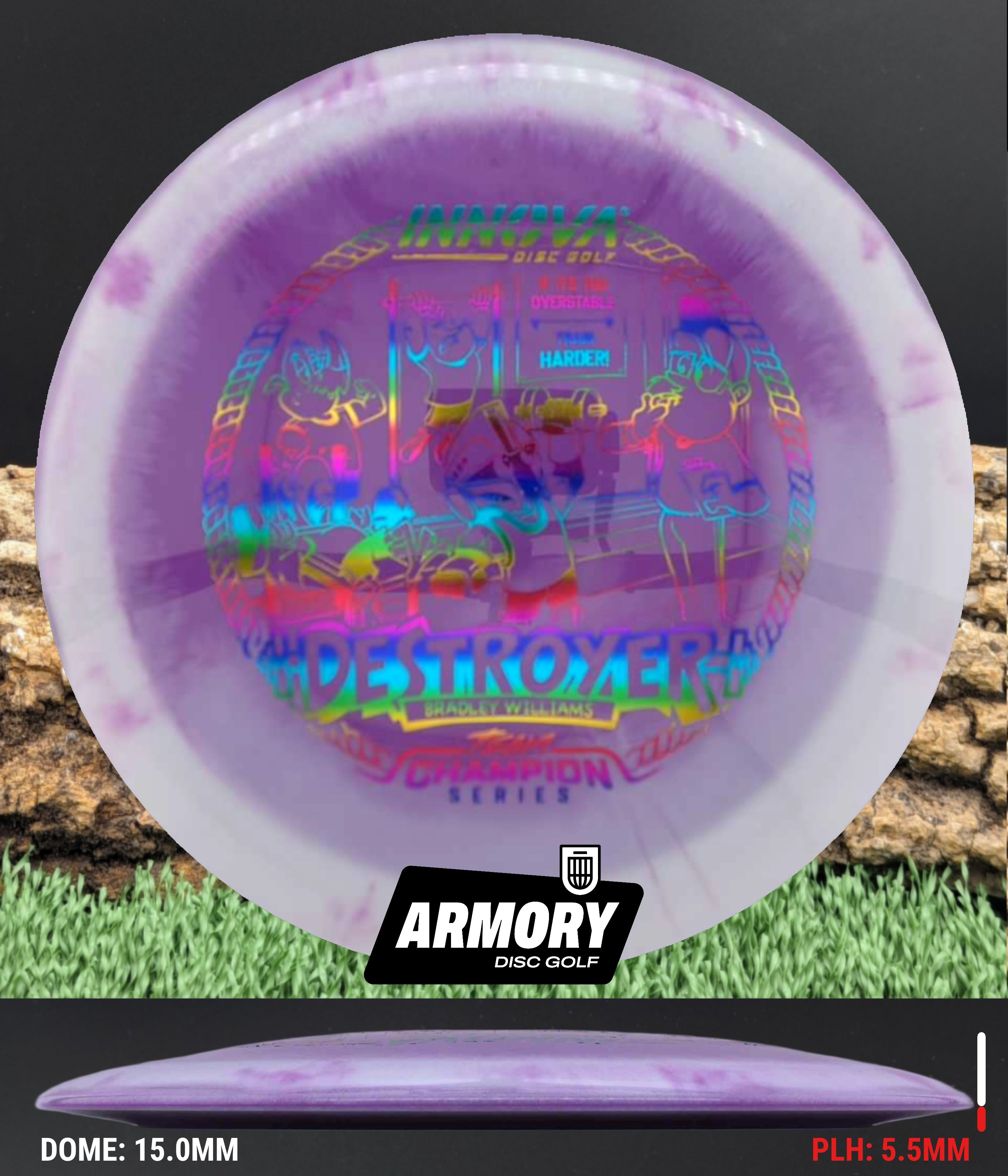 Built for aggressive lines and elite-level power, the Bradley Williams 2026 Tour Series Halo Star Destroyer is designed to thrive under pressure. Known for his fearless distance and attacking style, Bradley’s Destroyer delivers maximum speed with a torque-resistant flight that holds up when thrown hard. This run provides a confident high-speed push followed by a strong, forward-driving fade that finishes with authority.