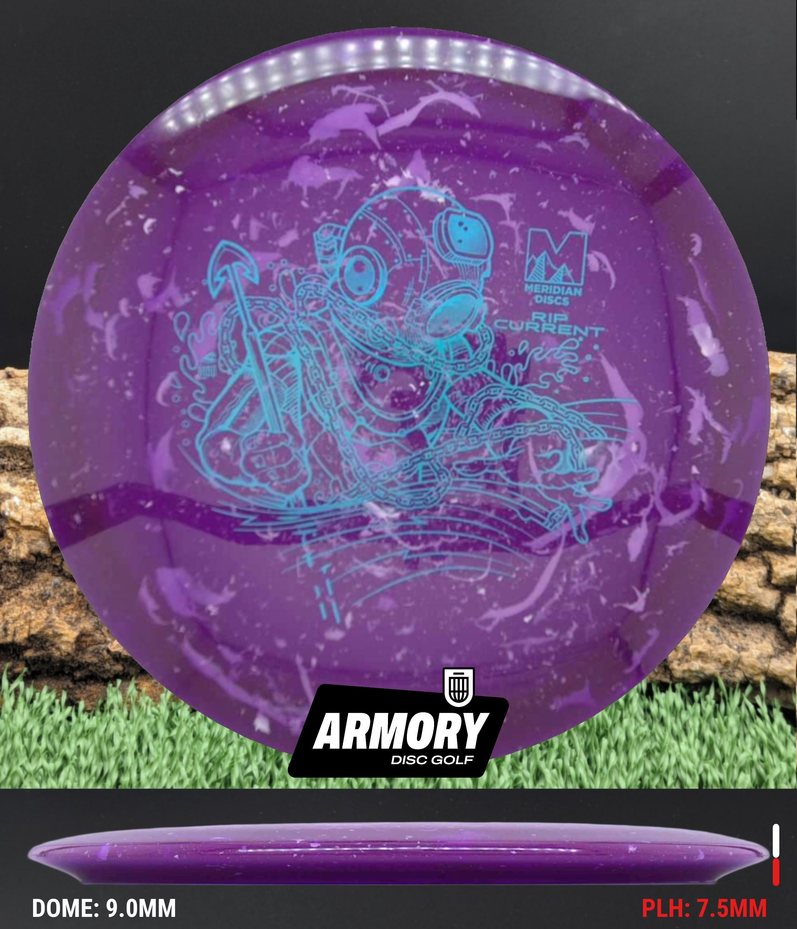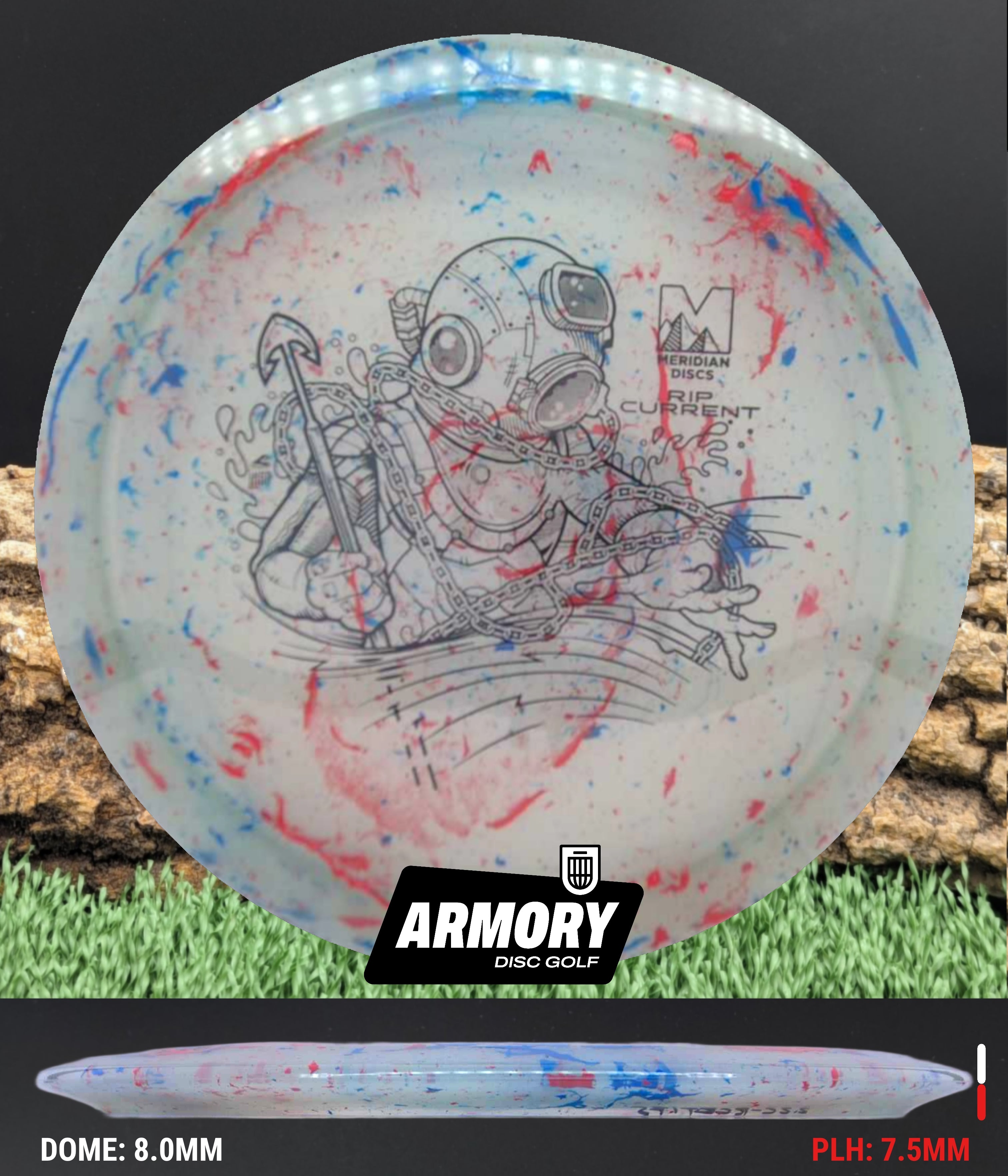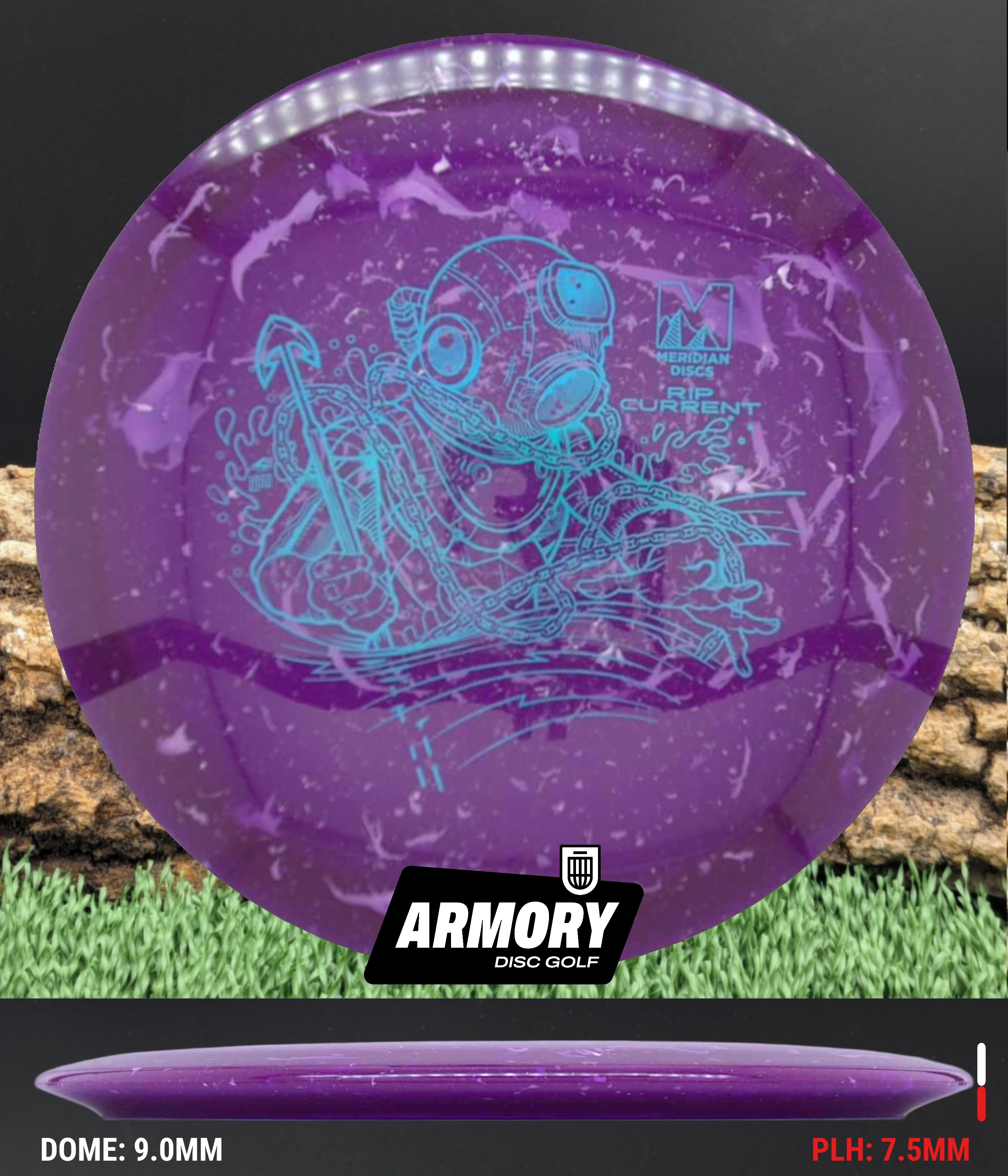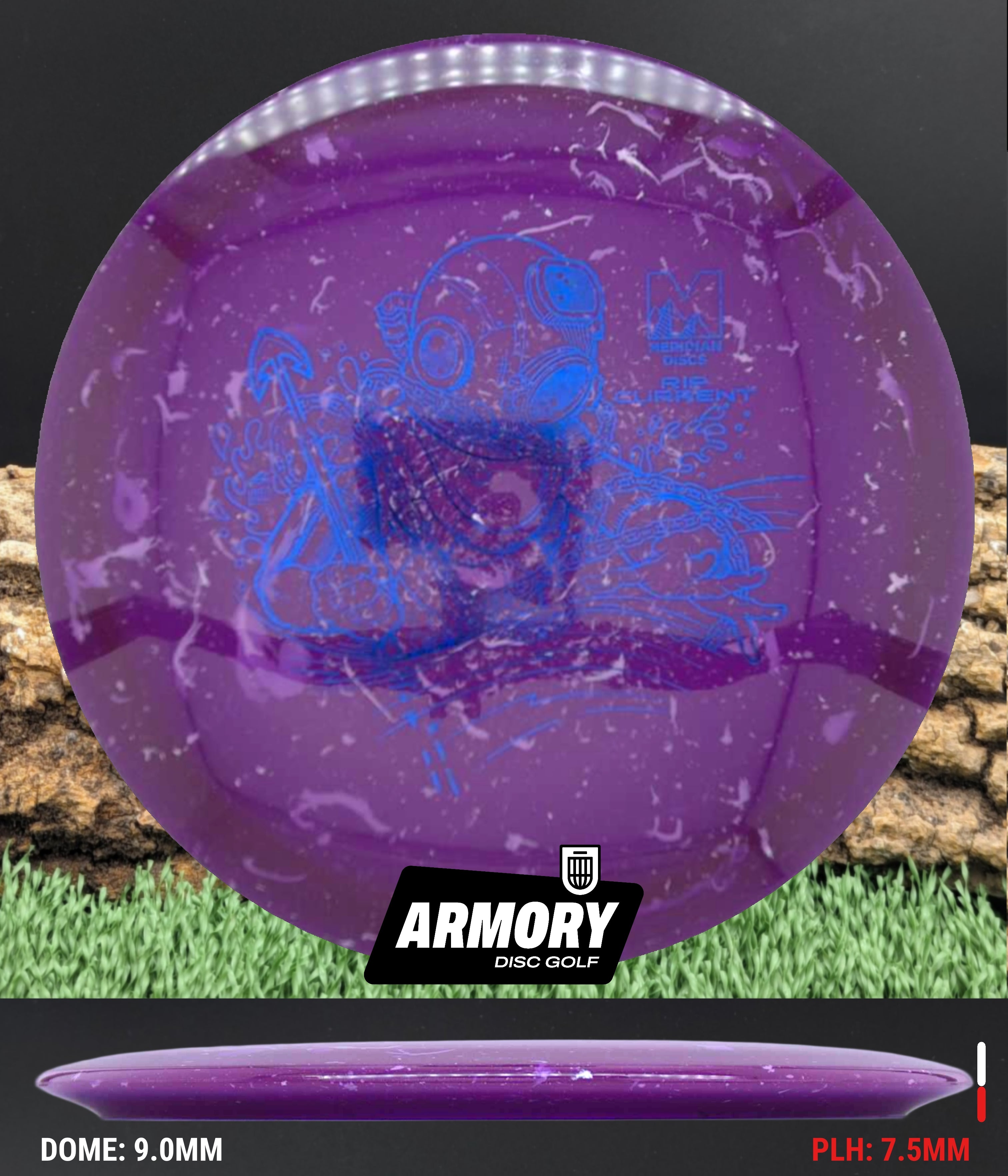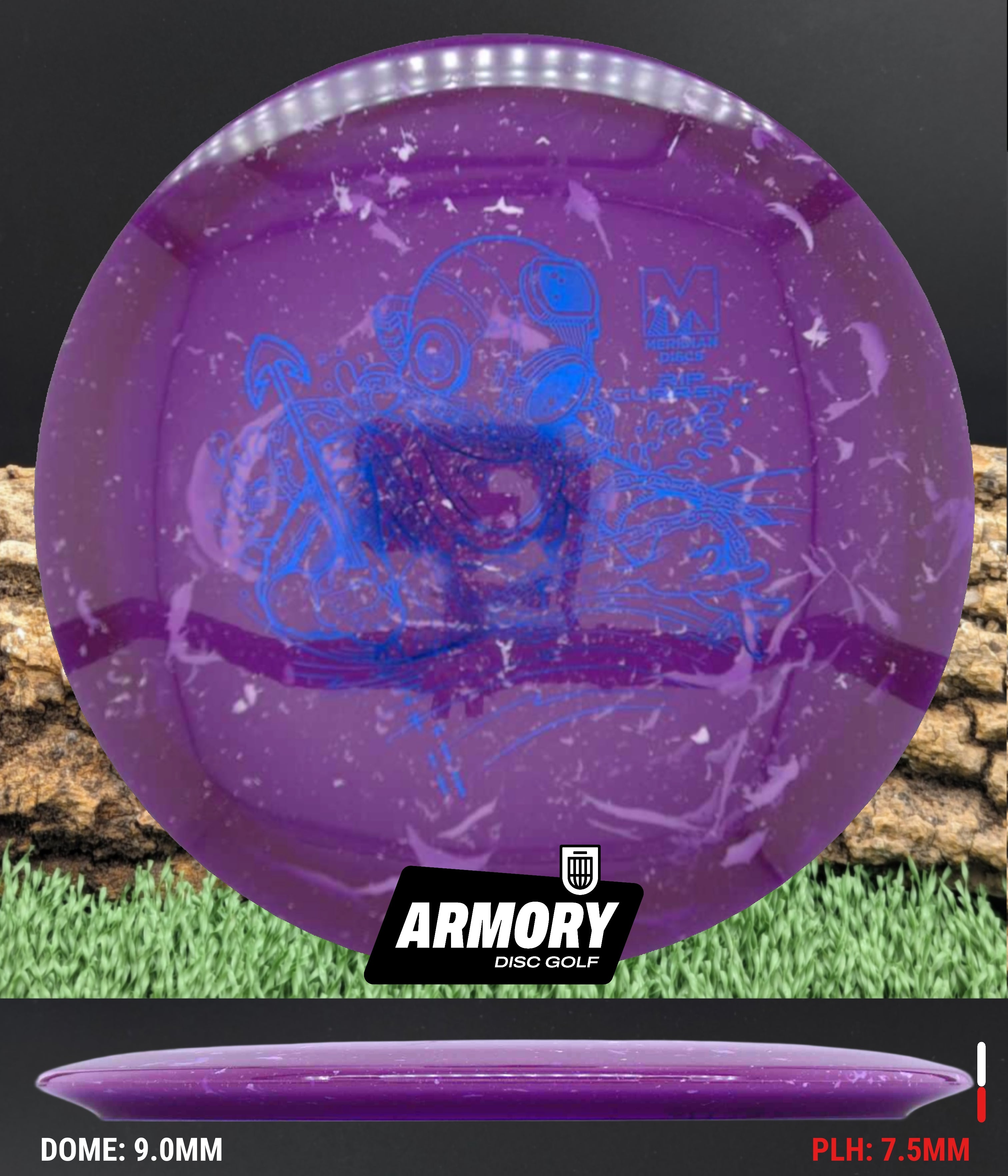The Rip Current is Meridian’s understable 7 speed fairway driver—an easy-turning, shot-shaping complement to the popular Current. With flight numbers 7 | 5 | -2 | 1, the Rip Current offers smooth hyzer flips, long-gliding turnovers, and roller potential straight out of the box.
