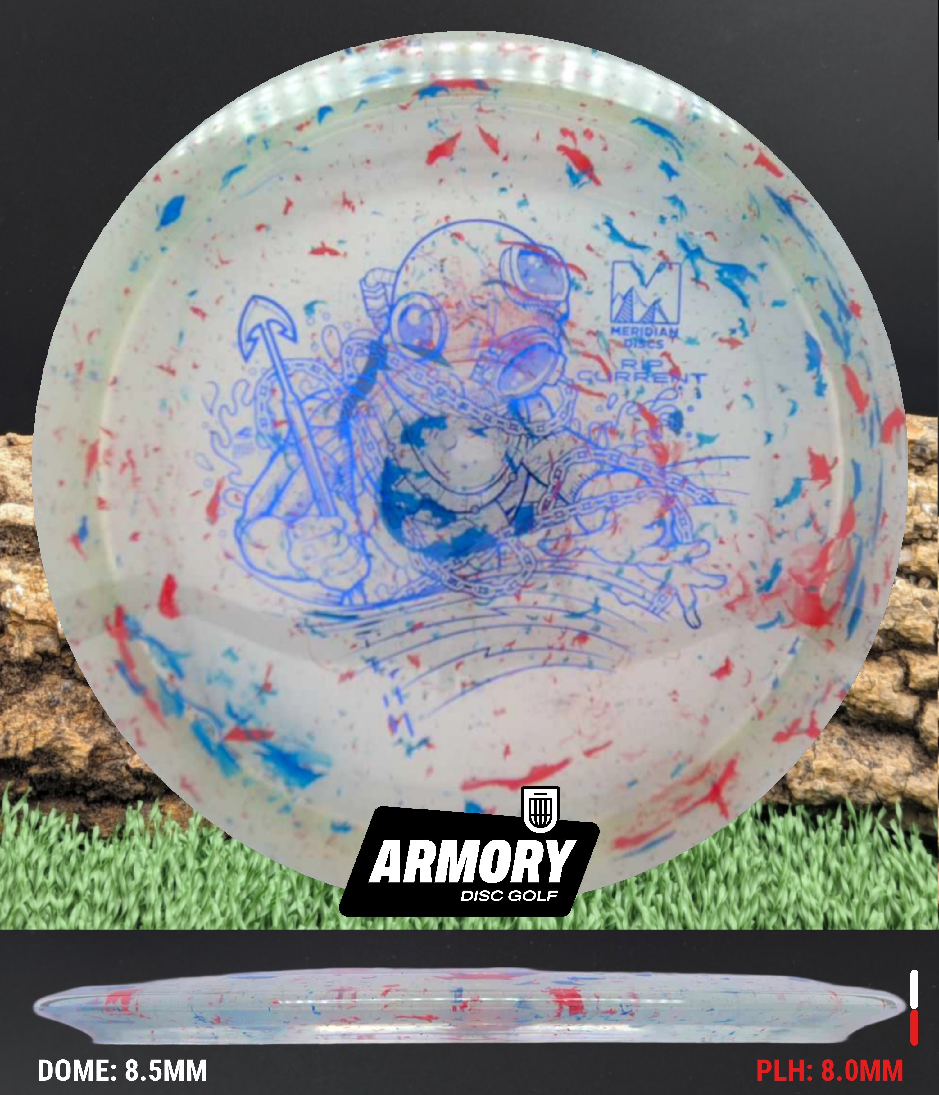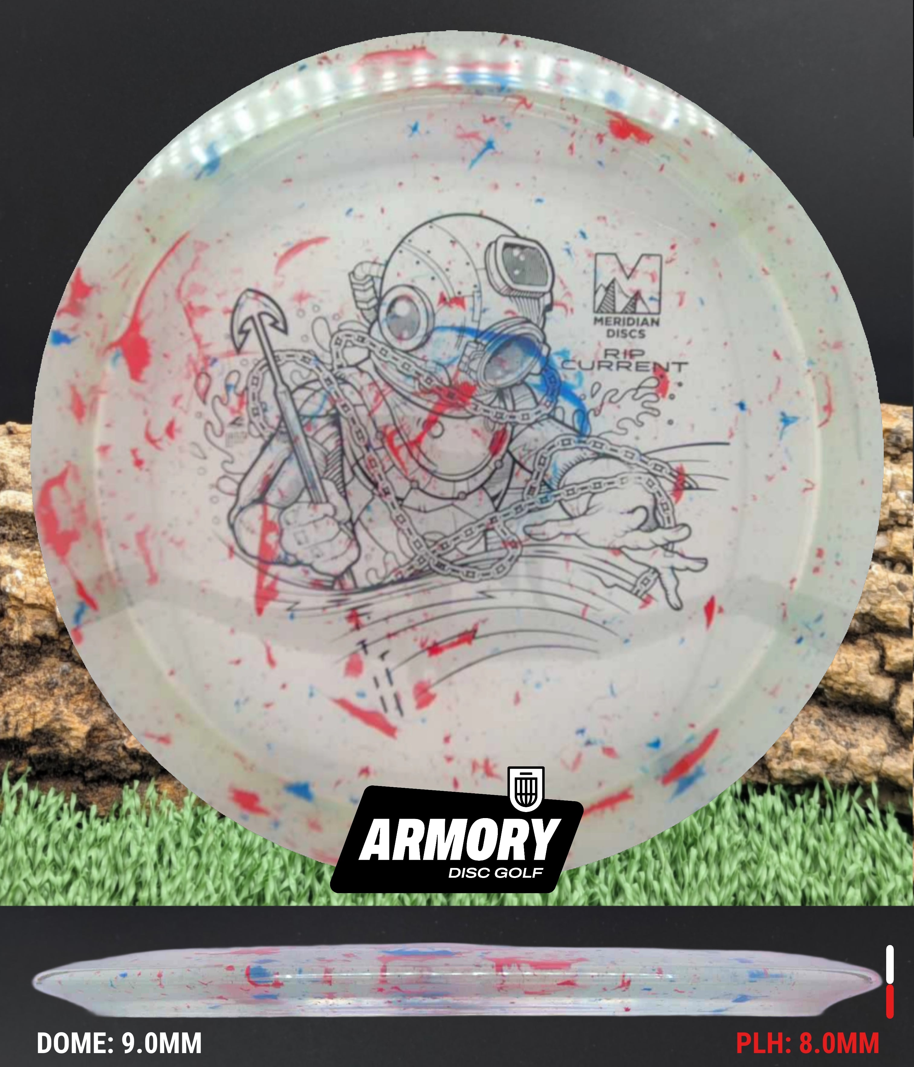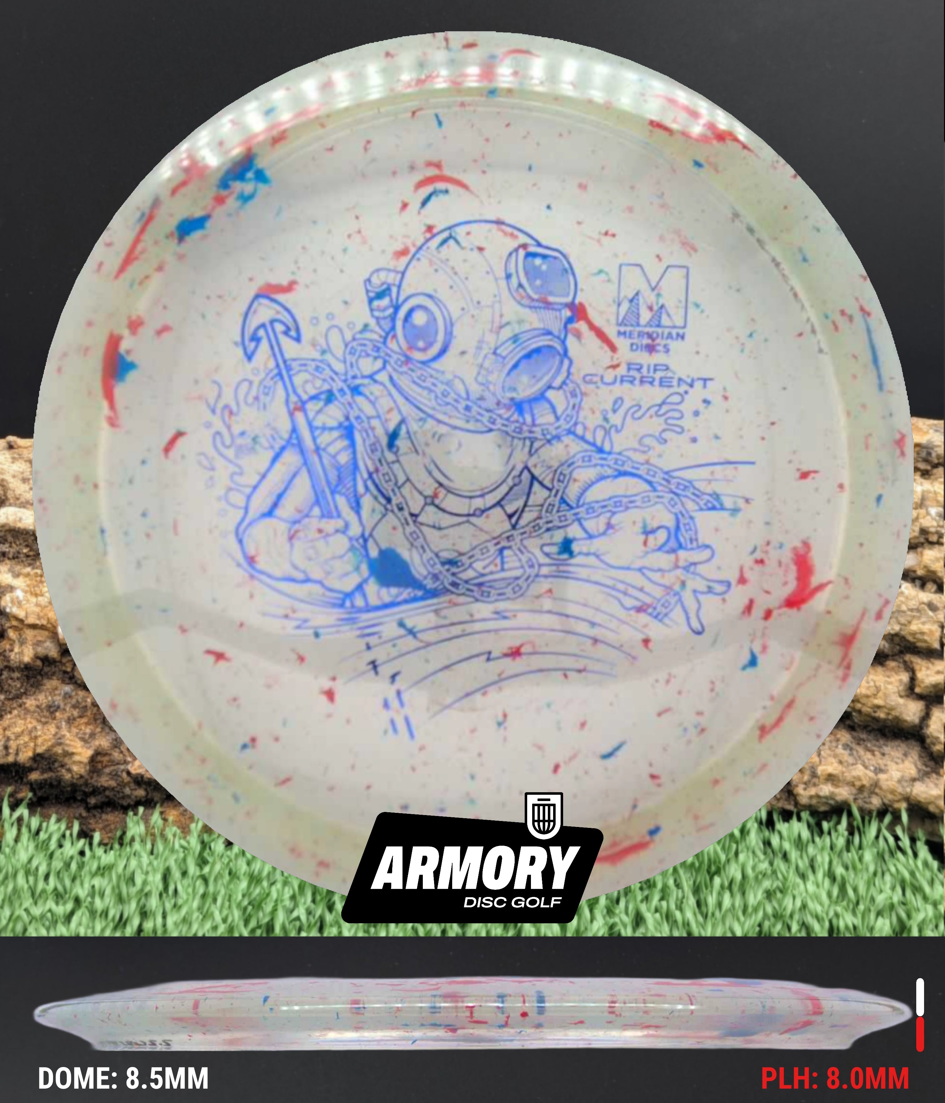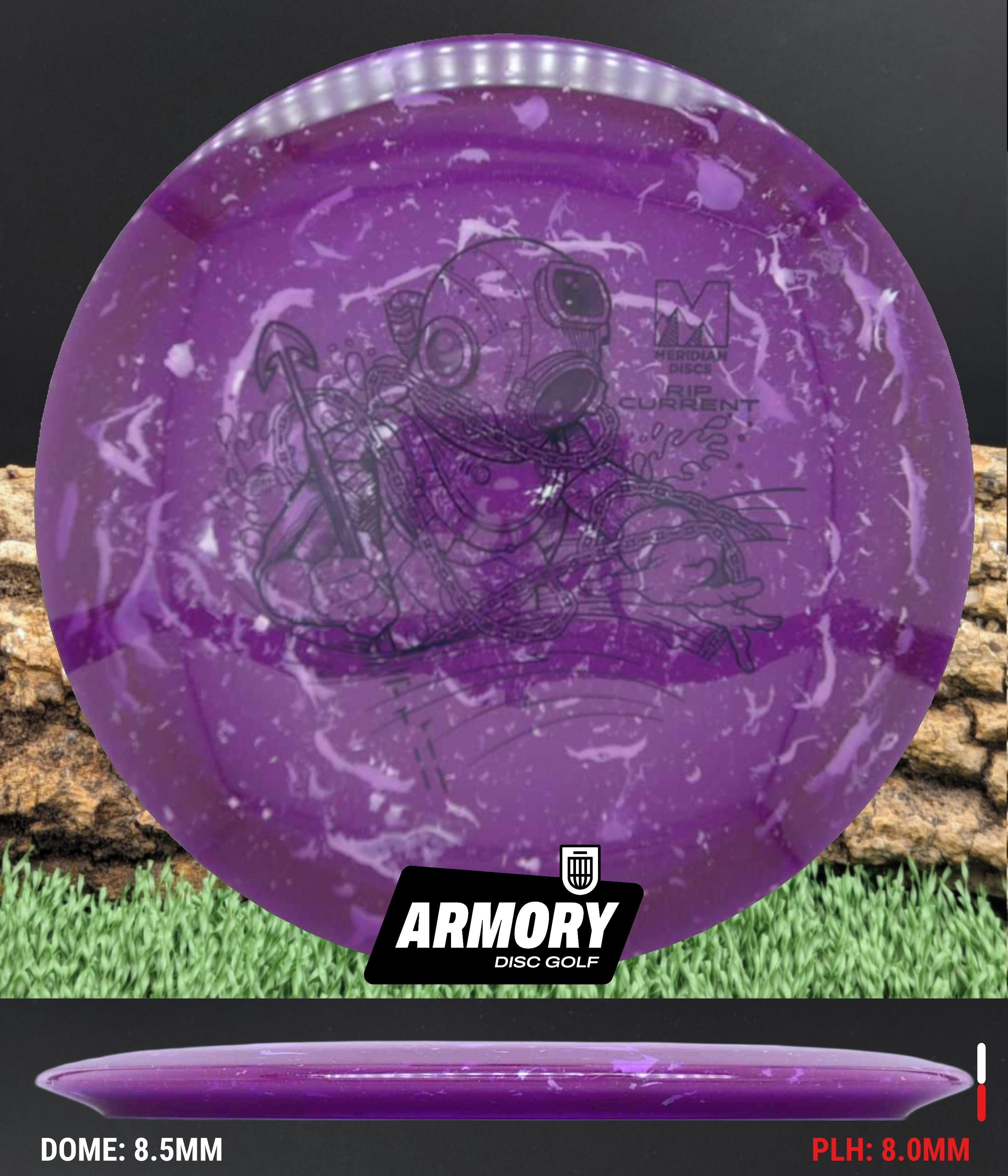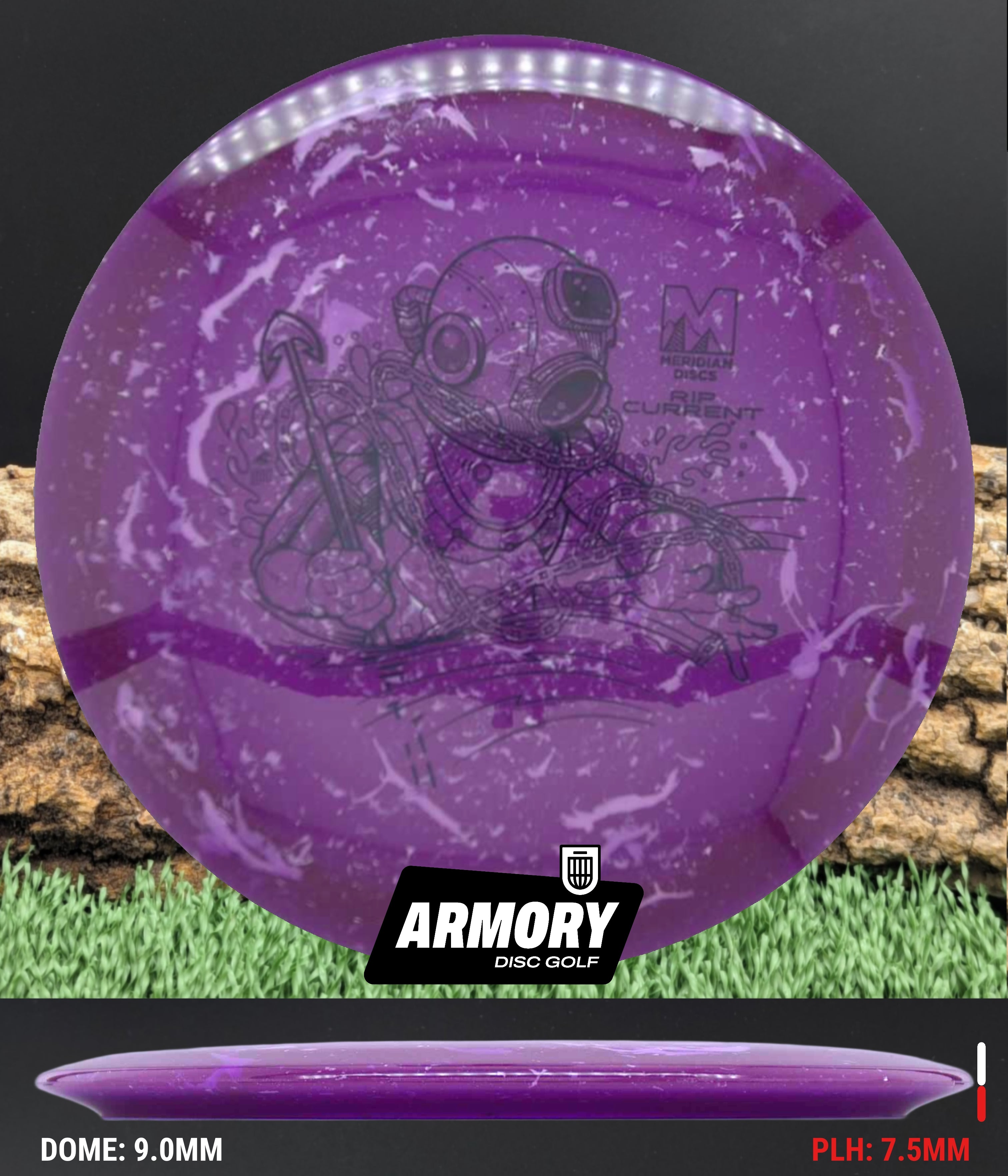 The Rip Current is Meridian’s understable 7 speed fairway driver—an easy-turning, shot-shaping complement to the popular Current. With flight numbers 7 | 5 | -2 | 1, the Rip Current offers smooth hyzer flips, long-gliding turnovers, and roller potential straight out of the box.