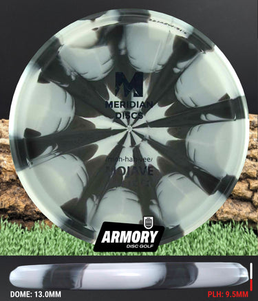 The Marbled Graphite Mojave is Meridian’s newest bead-in putt and approach disc, modeled closely after the trusted PA3 but tuned for even better glide and control. Featuring a flat top, low shoulder, squared nose, and a clean, confident bead, the Mojave delivers a consistent hand feel that players who love stable putters will immediately trust.