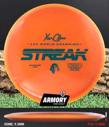 Inspired by Ken Climo’s unprecedented nine-year World Title streak, the Streak debuts as the first fairway driver in the Climo Disc Golf lineup. Built for players chasing dependable, repeatable results, the Streak pairs neutral stability with high glide and a gentle, late fade—a straight, trustworthy flight you can lean on round after round.