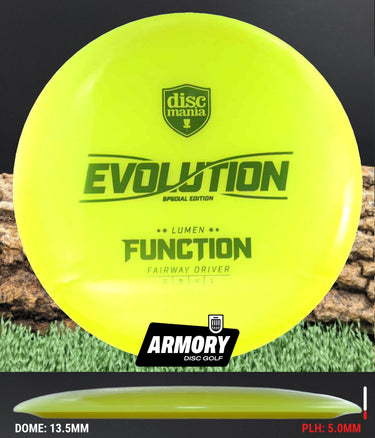 Function is an easy to throw fairway driver that offers the most understable flight path of any Discmania disc produced to date. Those that enjoy the performance of the Essence but seek something just a bit flipper for their game are going to fall in love with this one right away. The Function is engineered for players with lower level arm speeds, beginners/amateurs, and those that enjoy the flight of an understandable fairway driver that executes turning shots quickly and easily.