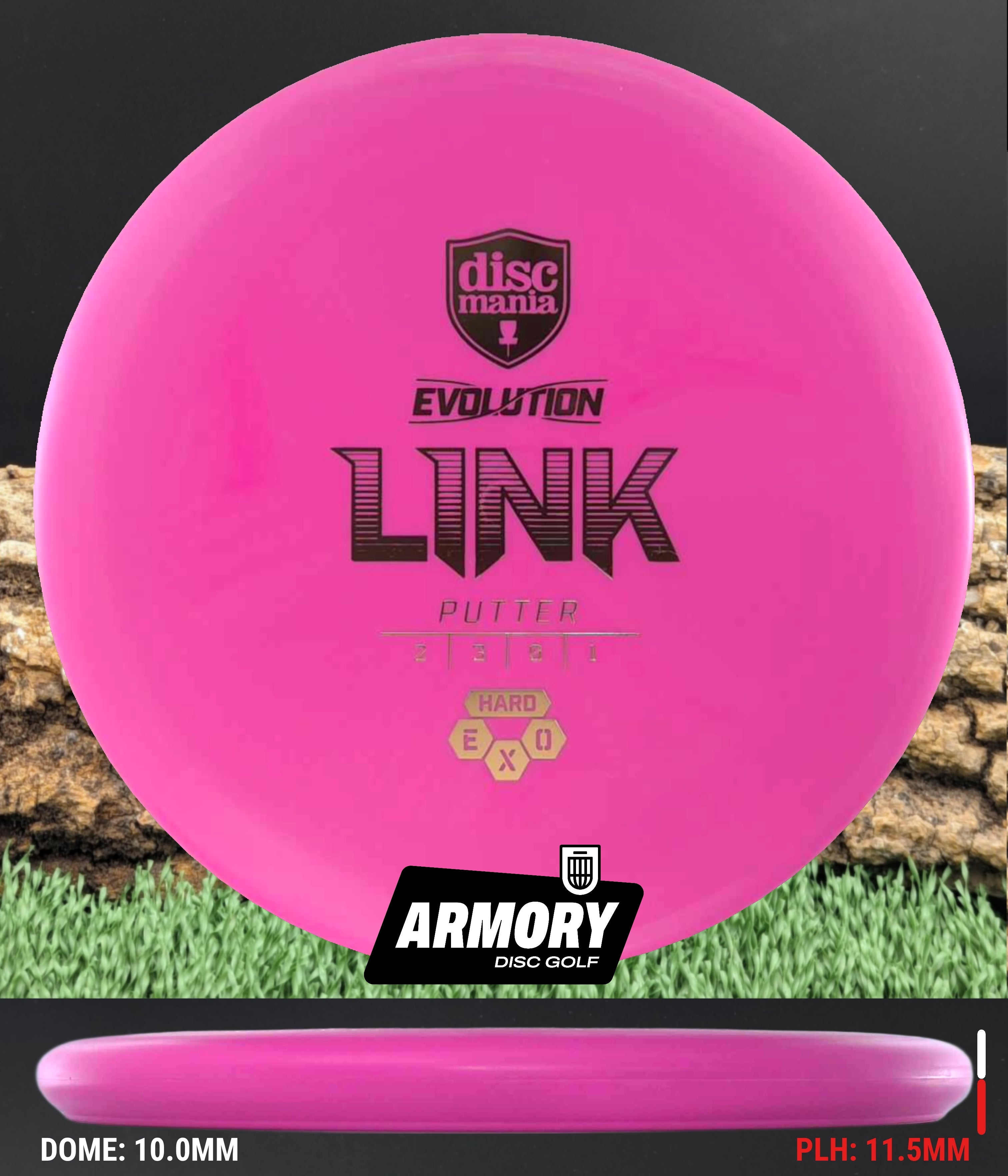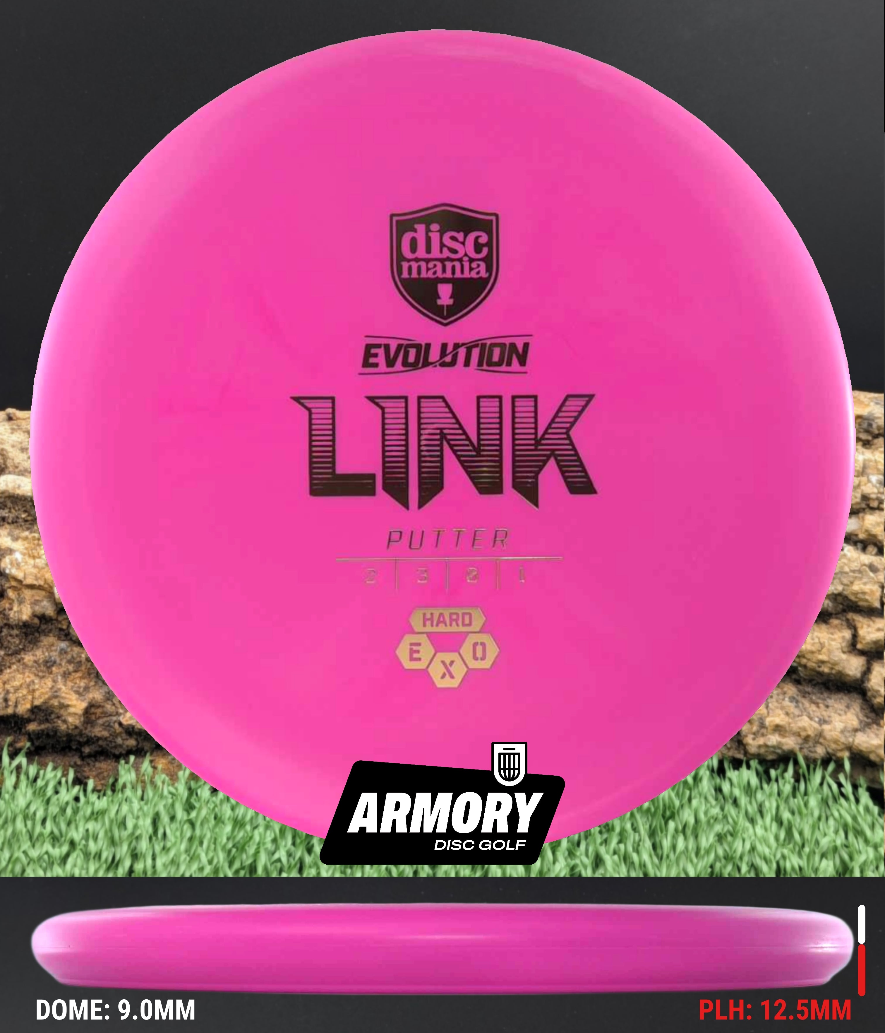 The Link is the putter of choice for a wide variety of players from beginners all the way to top level Discmania professionals. It offers a reliable, stable flight pattern with low glide to make sure you don't sail past your target. Its ergonomic rim profile makes sure it fits well in all hand sizes and for all kinds of shots from short putts to soaring putter drives off the tee.