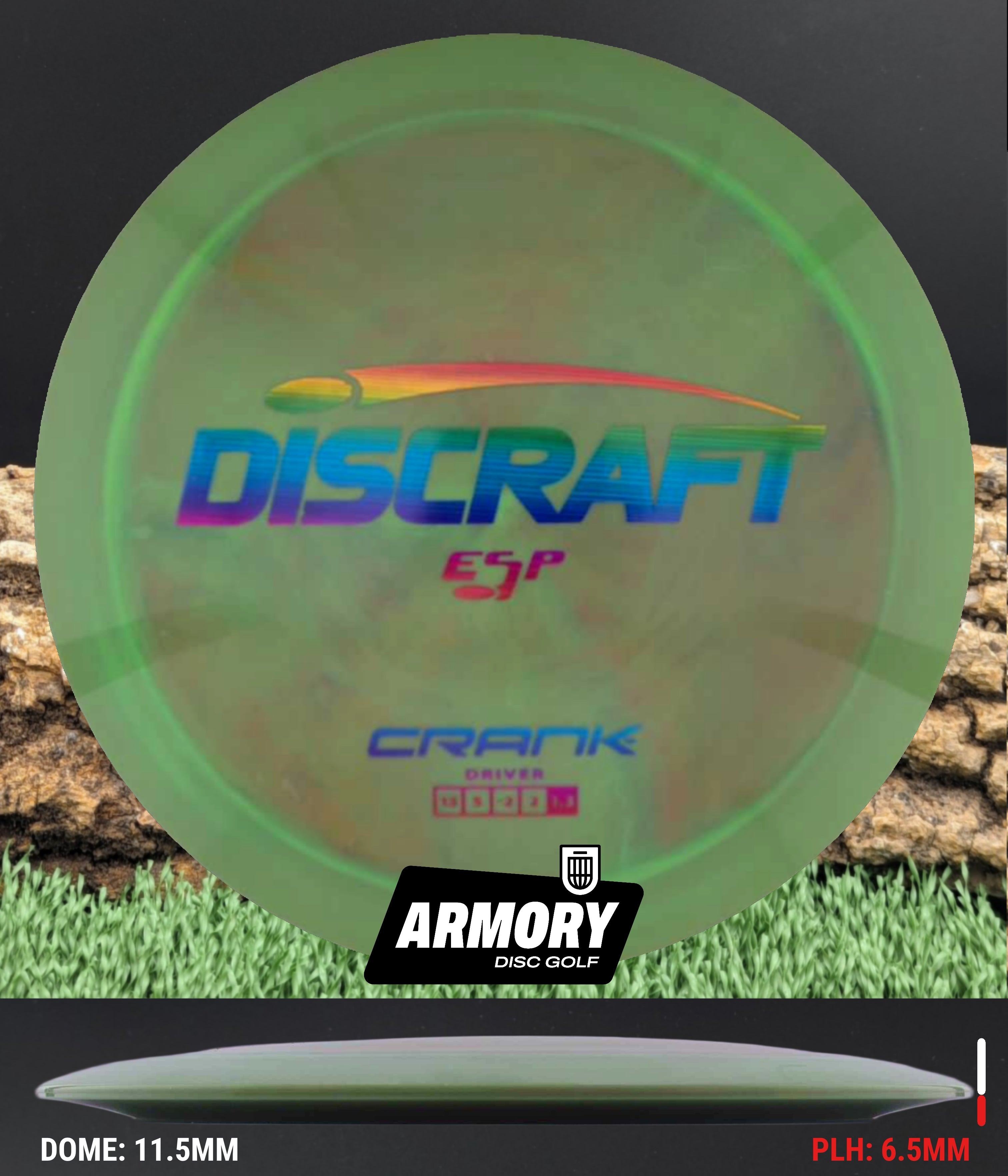 ESP plastic enhances the Crank with superior grip, enhanced feel, and eye-catching swirls, giving players added confidence on full-power drives. This blend performs consistently in all weather conditions and offers slightly more workability than Z Line, making it a strong option for shaping distance lines with touch and control.