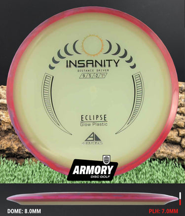 Another Special Edition release (for Halloween of 2021), the Eclipse Insanity is making its absolutely glowing return as a stock offering! Maintaining flight numbers of 9 | 5 | -2 | 1.5, the Eclipse Insanity is now available any time you need a consistent stable to understable distance driver for your bag. High power players will have a precise flip-up or turnover disc for day or night, while average power players will have a remarkably straight distance driver. Designed with a softened profile to mimic a more worn-in disc, explore the multitude of shot shapes the Eclipse Insanity can bring to your game by grabbing your own from your favorite local or online retailer!