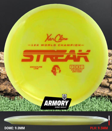 Inspired by Ken Climo’s unprecedented nine-year World Title streak, the Streak debuts as the first fairway driver in the Climo Disc Golf lineup. Built for players chasing dependable, repeatable results, the Streak pairs neutral stability with high glide and a gentle, late fade—a straight, trustworthy flight you can lean on round after round.