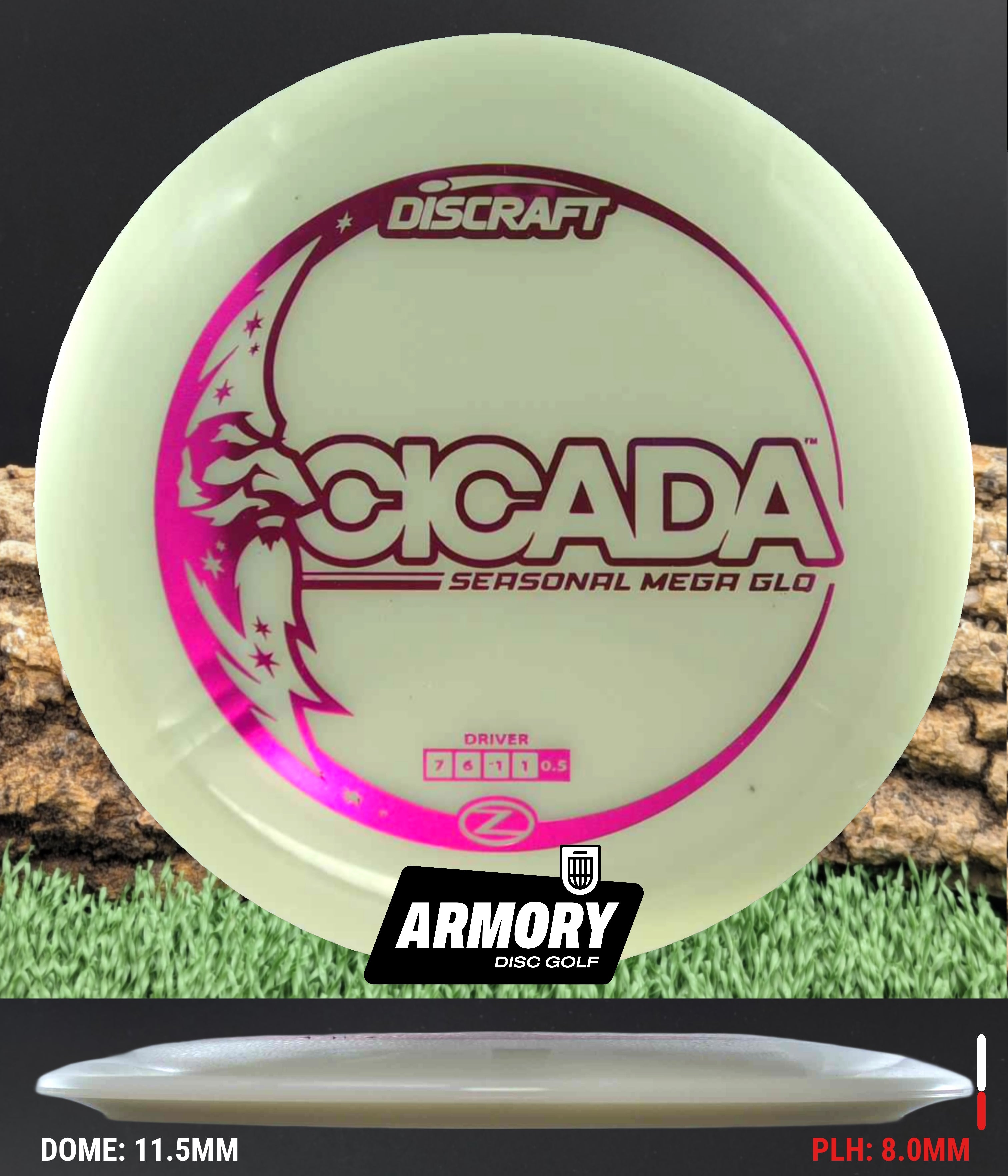 Now available in Discraft’s brightest-ever Mega Glo plastic, the Cicada takes its clean release and effortless glide into the night. The durable, grippy glow blend ensures consistent performance and visibility when the lights go low — giving you the confidence to shape perfect lines even after sunset.
