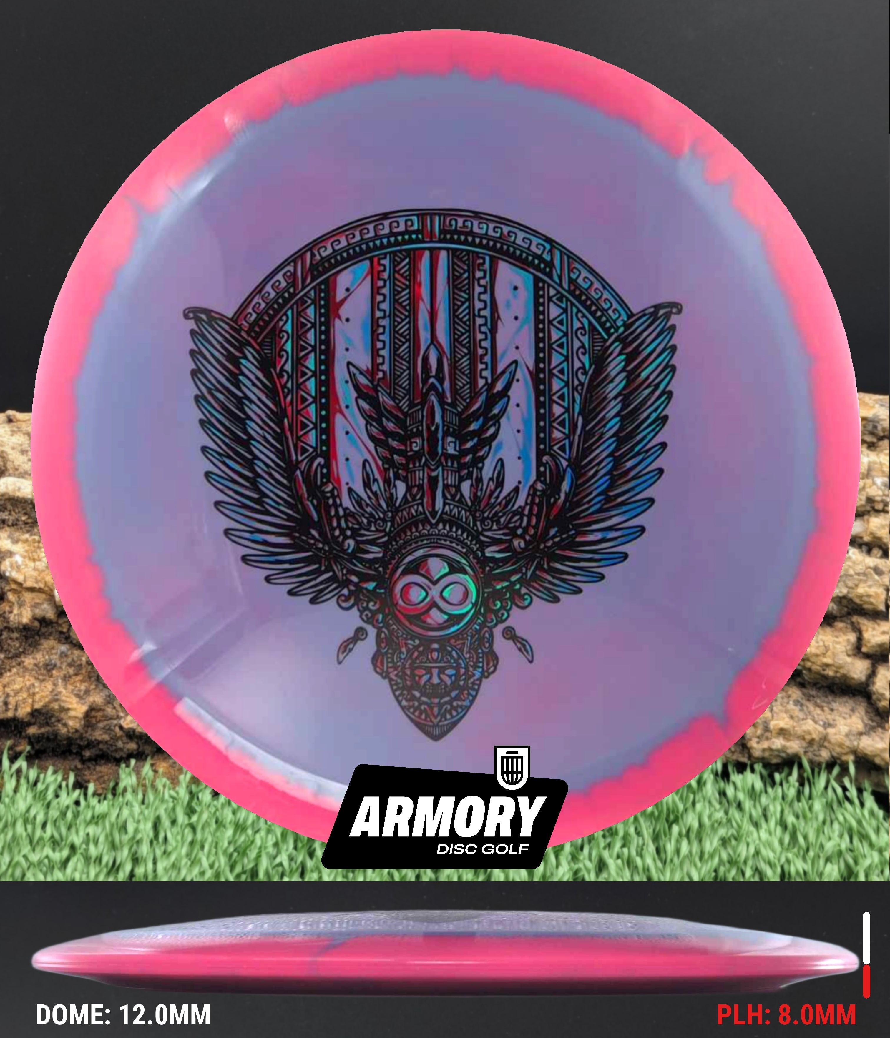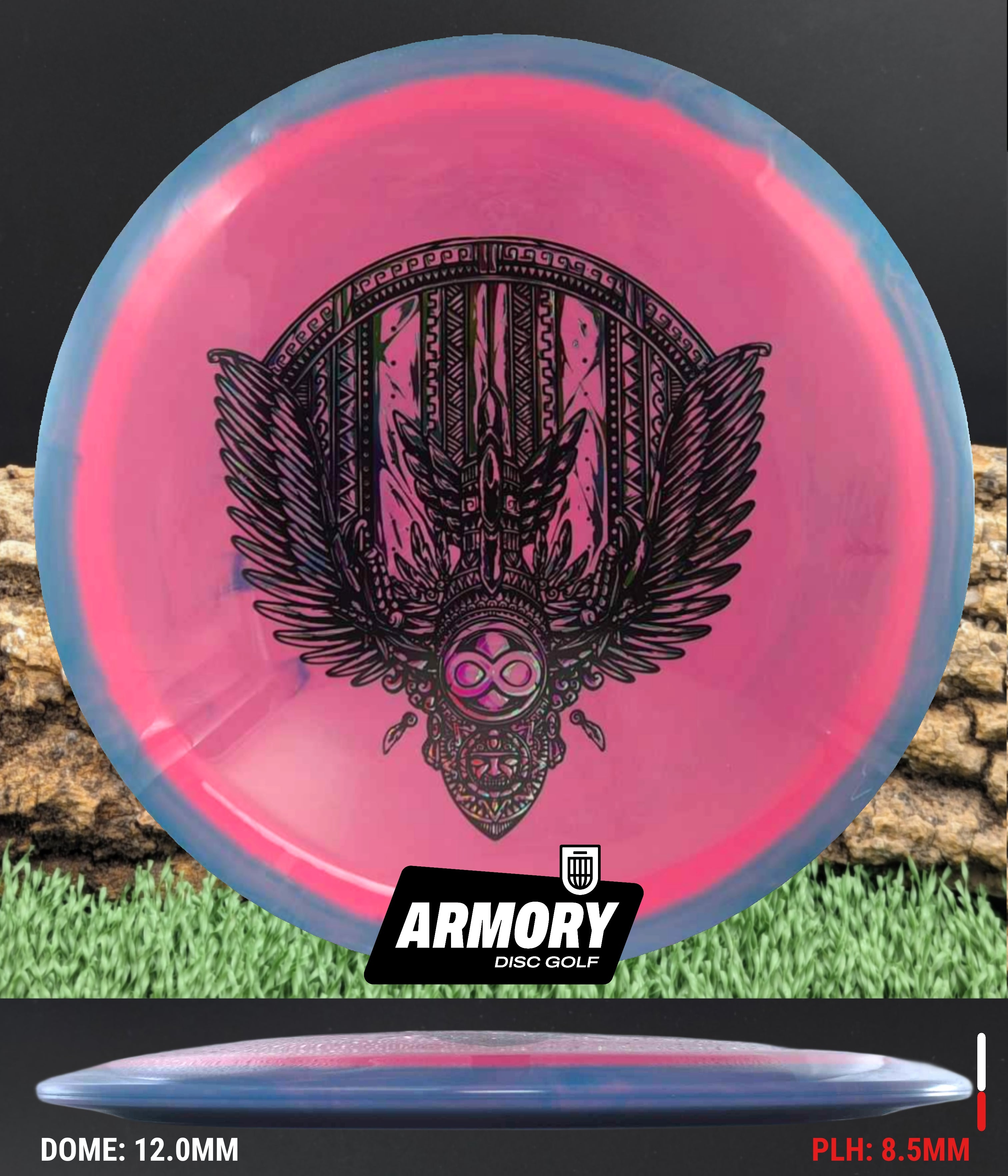 The Aztec is a speed 10 driver, flying straight with a little bit of fade at the end. Don't let the speed 10 fool you, the Aztec will bring unexpected distance and accuracy to your game. This disc has a skinnier rim than the big distance drivers, making it more comfortable for most disc golfers. The Aztec is said to be a longer Exodus or Sphinx.