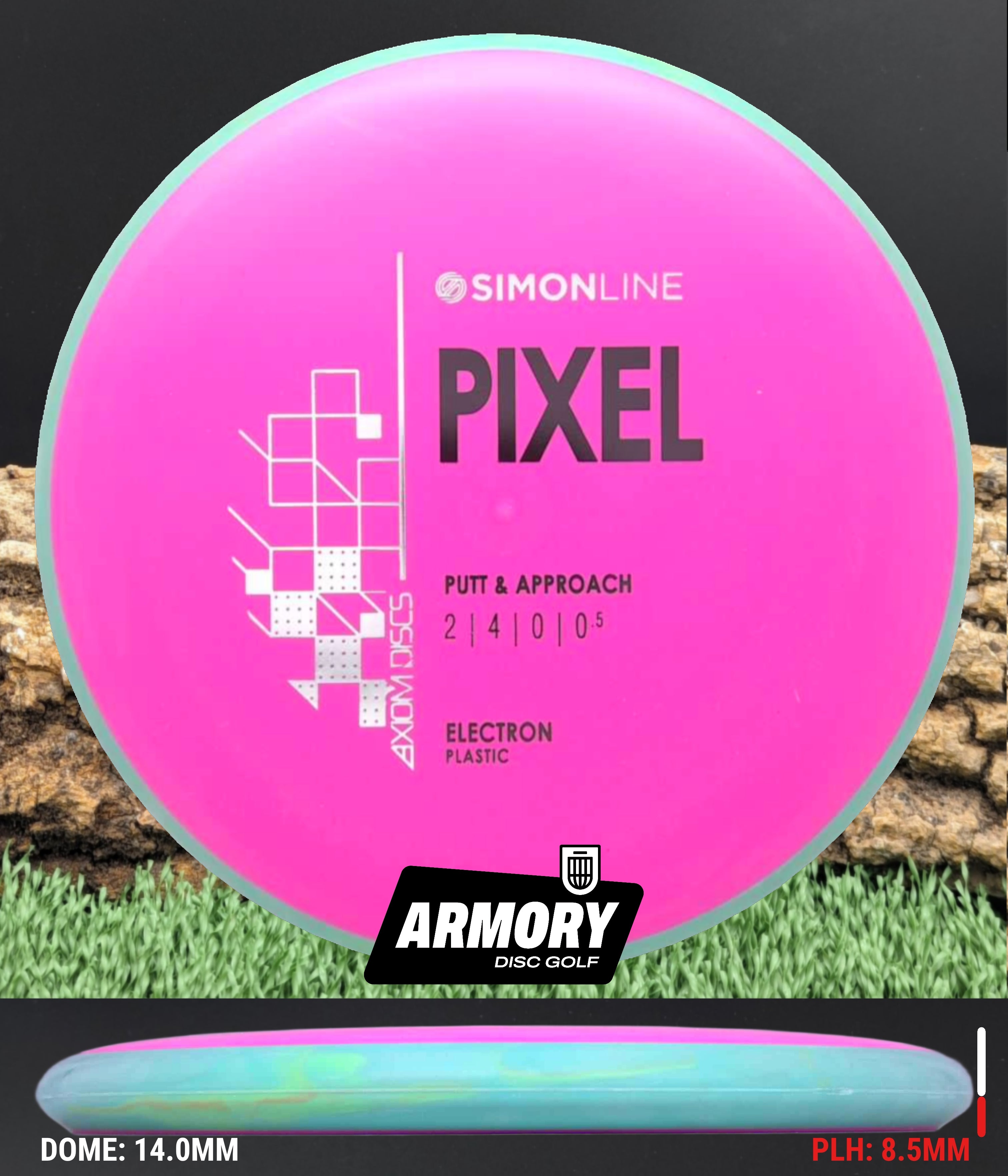 The Axiom Pixel marks the second release in the Simon Line, capturing the smooth, precise feel that defines Simon Lizotte’s game. Featuring flight numbers of 2 | 4 | 0 | 0.5, the Pixel offers a deep profile with a micro-bead rim for an ultra-clean release. Designed for both spin and push putting styles, this putter delivers laser-straight flights with effortless glide — the definition of point-and-shoot putting.