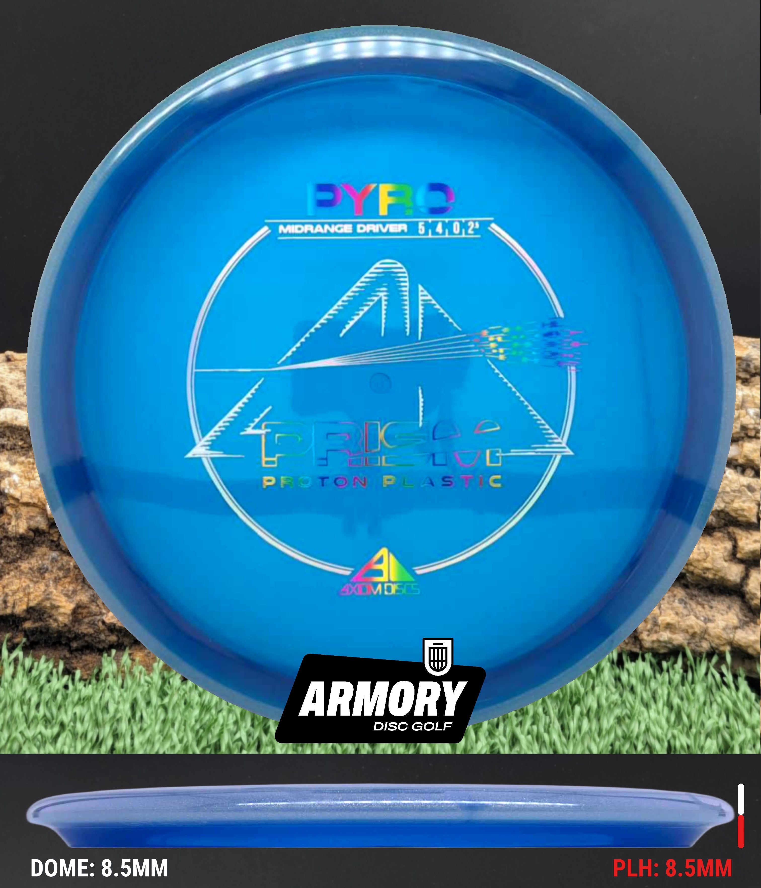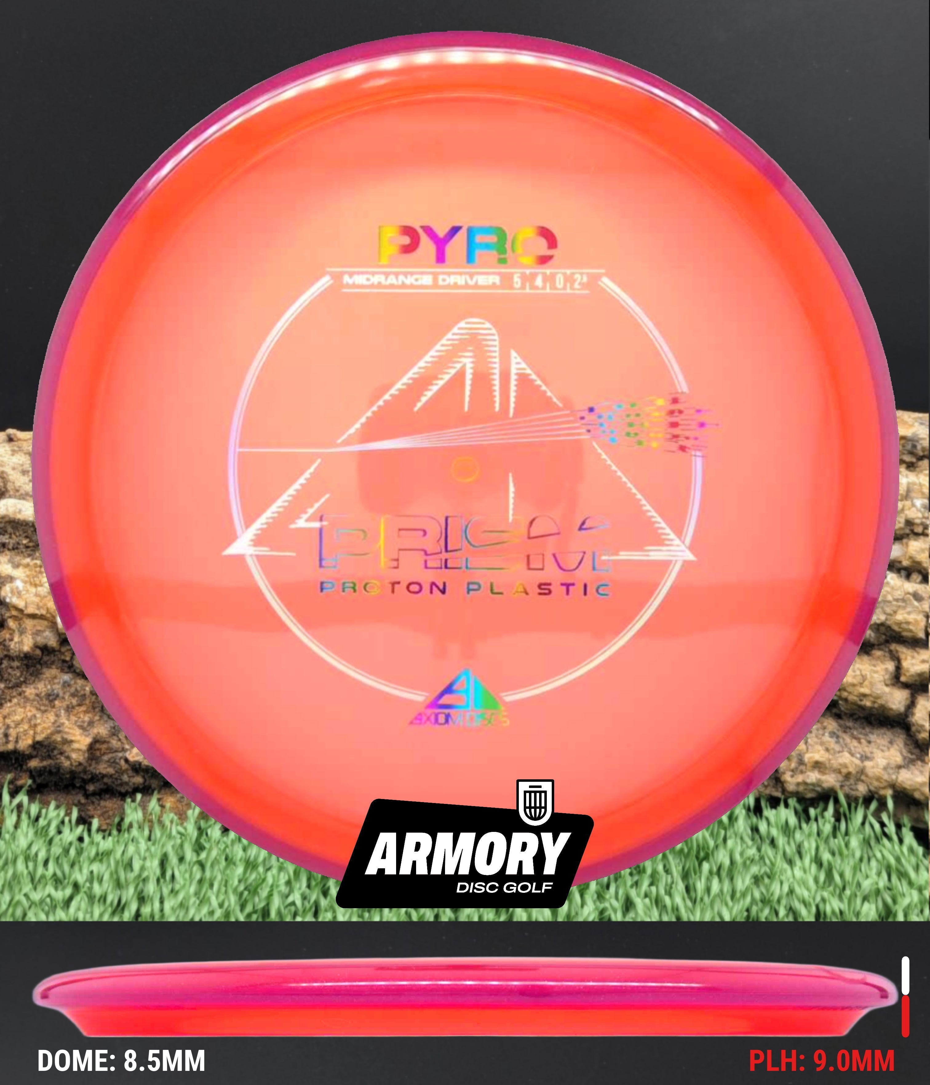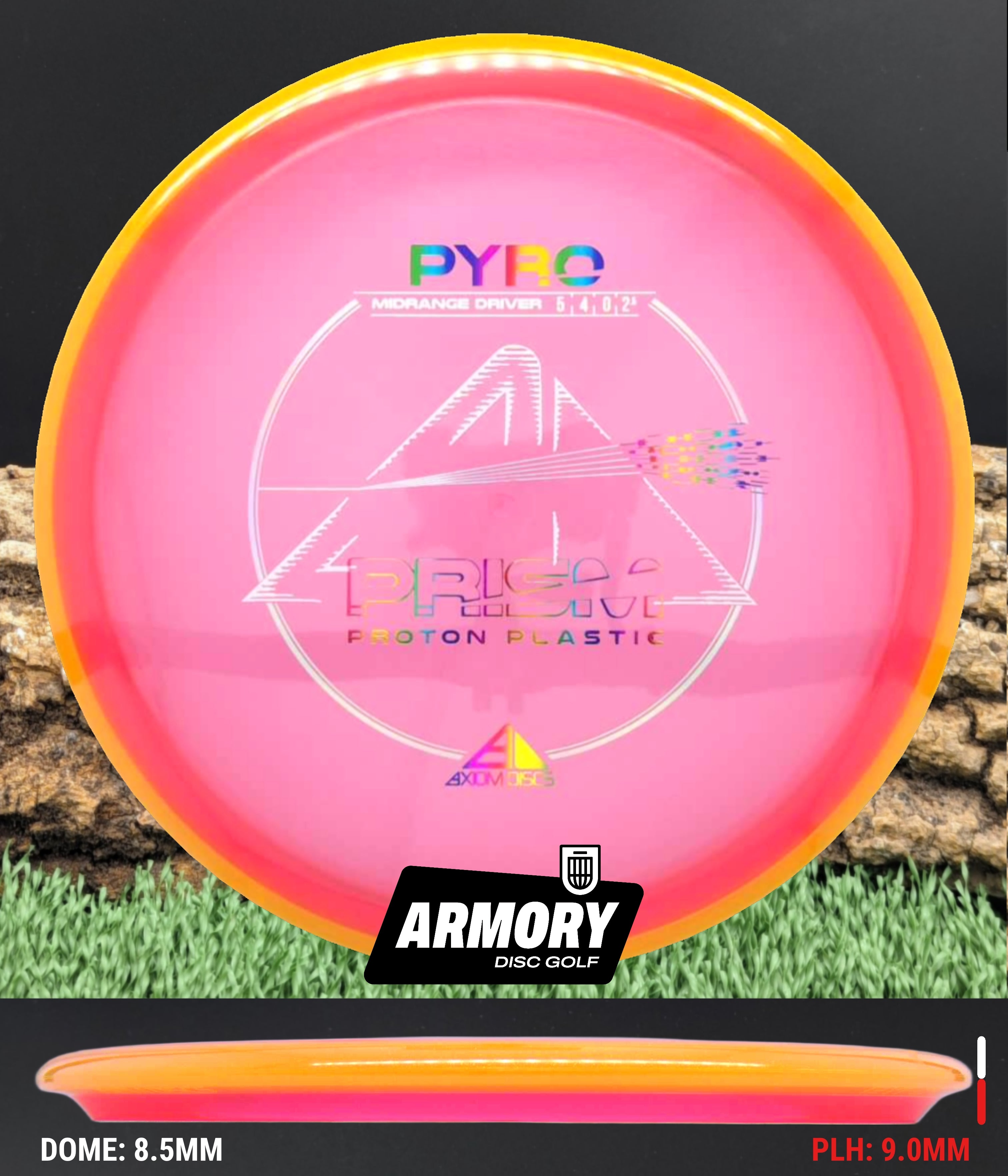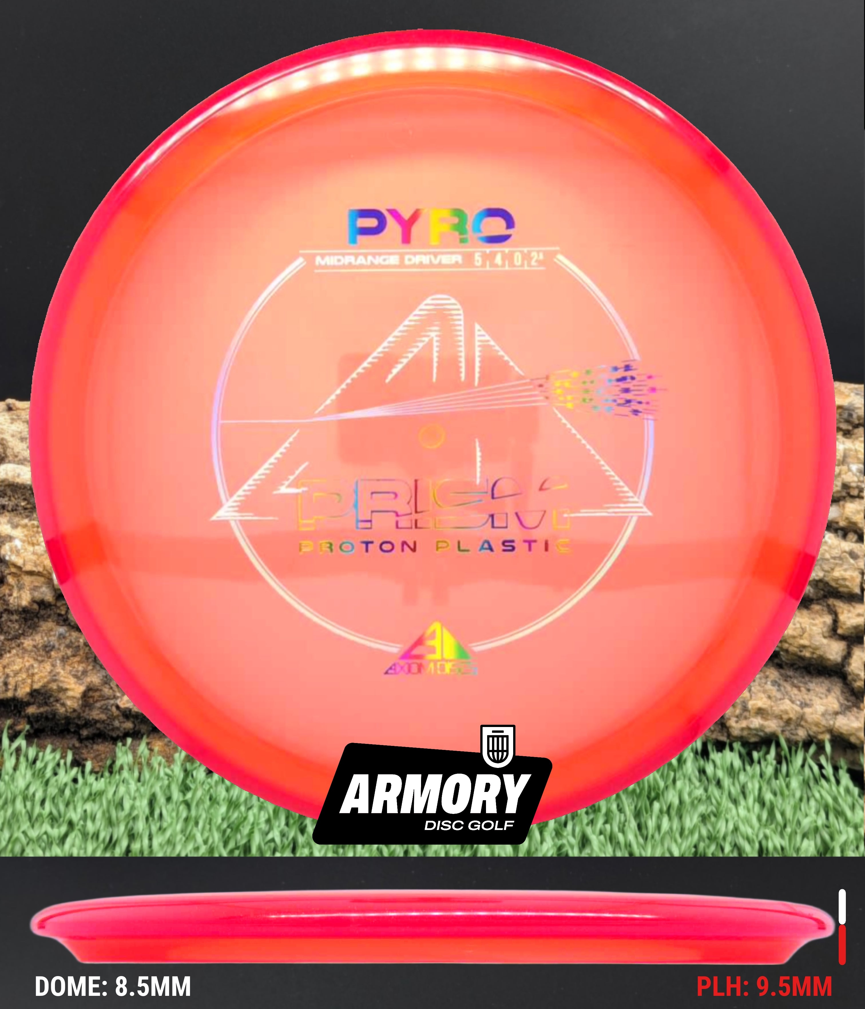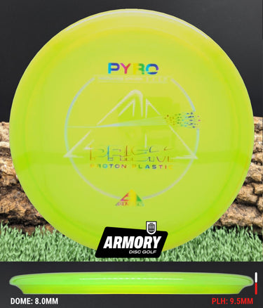 The Axiom Pyro in Prism Proton plastic brings a perfect balance of durability, stability, and visual appeal to one of Axiom’s most trusted midranges. Featuring flight numbers of 5 | 4 | 0 | 2.5, the Pyro offers a reliably overstable flight with dependable fade — ideal for forehands, headwinds, and precise placement shots.