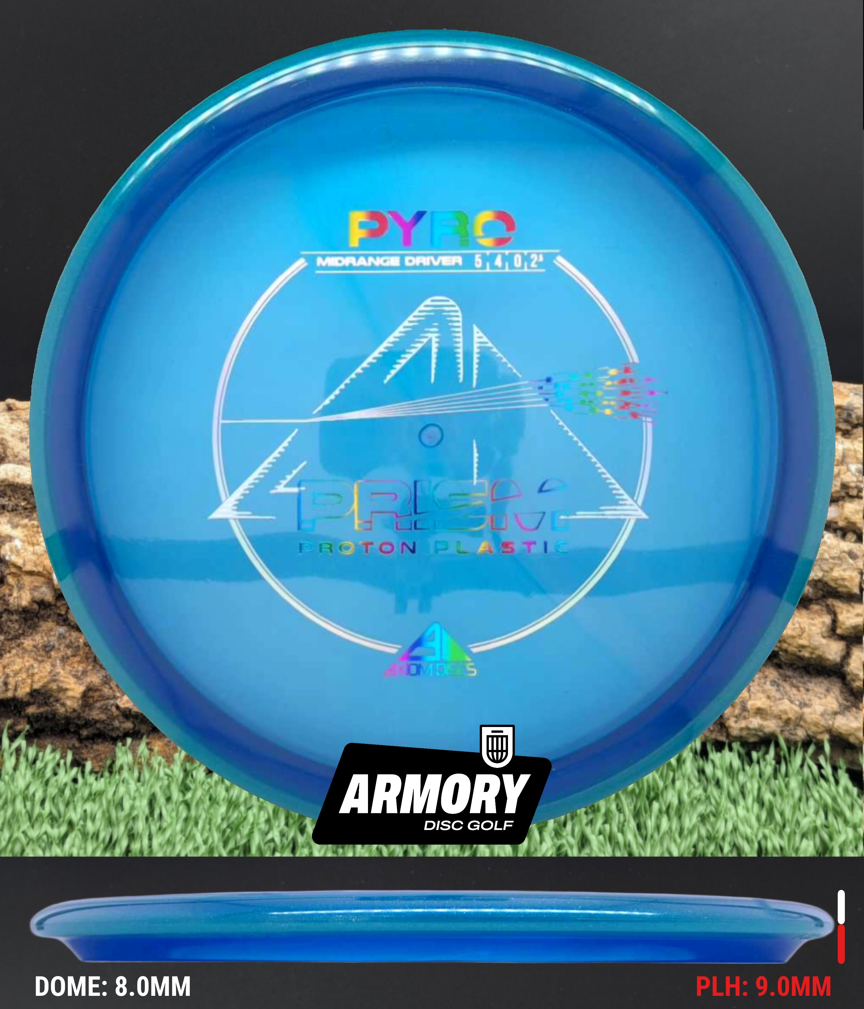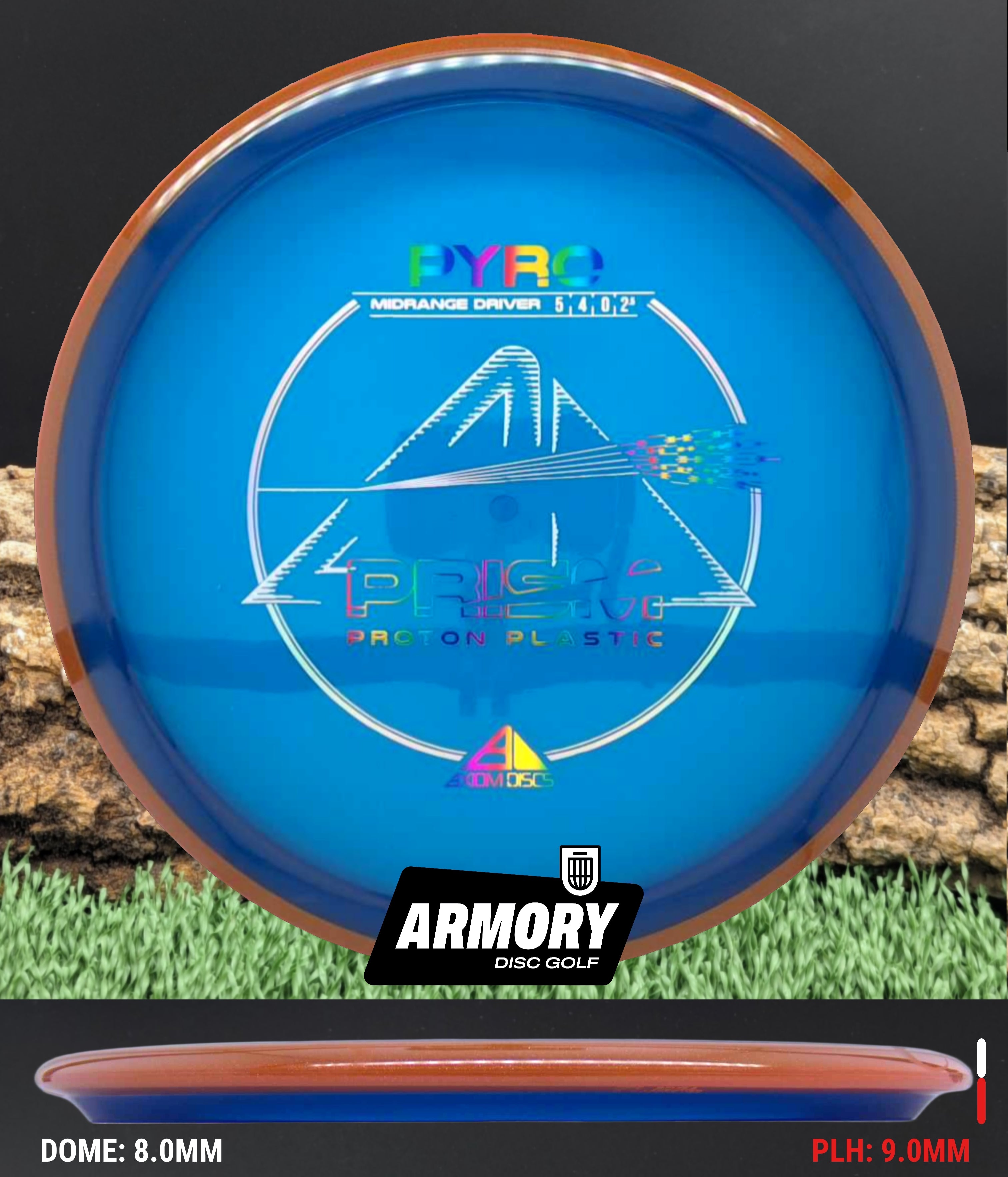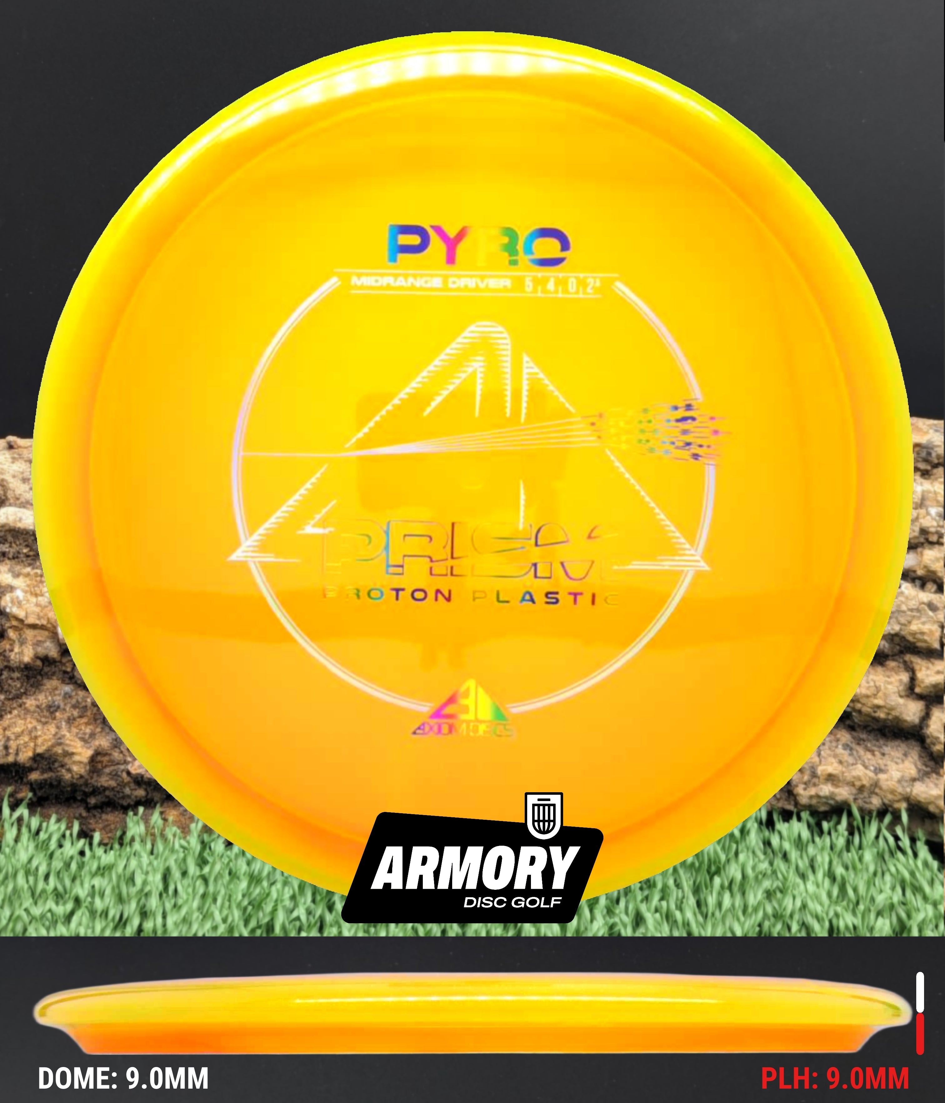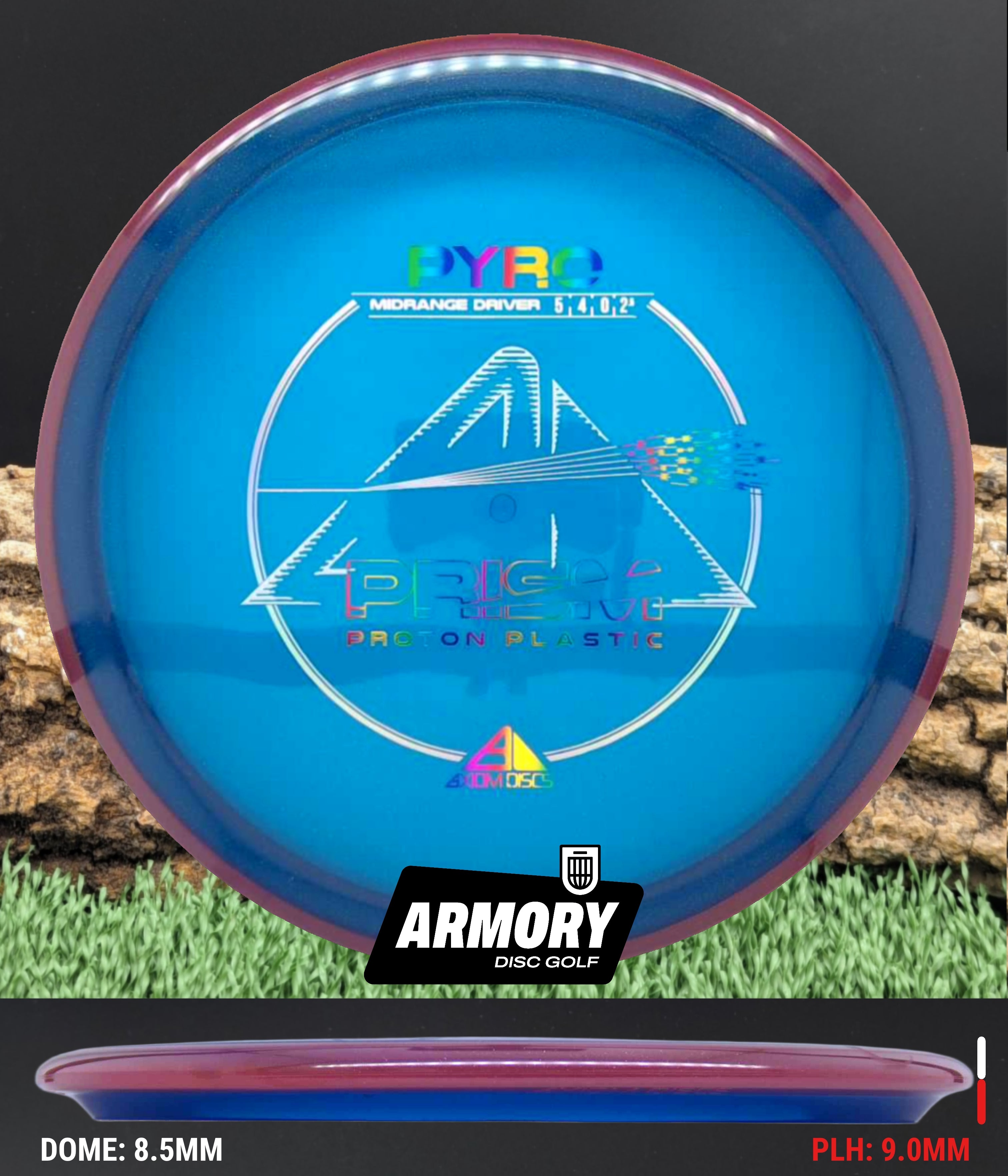 The Axiom Pyro in Prism Proton plastic brings a perfect balance of durability, stability, and visual appeal to one of Axiom’s most trusted midranges. Featuring flight numbers of 5 | 4 | 0 | 2.5, the Pyro offers a reliably overstable flight with dependable fade — ideal for forehands, headwinds, and precise placement shots.