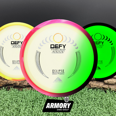The Axiom Defy is now available year-round in Eclipse plastic — the brightest, most durable glow blend in disc golf. Known for its resistance to turn and its ability to pierce through headwinds, the Defy is built for confidence. High-power players will get long, straight pushes with a penetrating fade, while lower-power throwers will appreciate its dependable overstability and reliable finish.