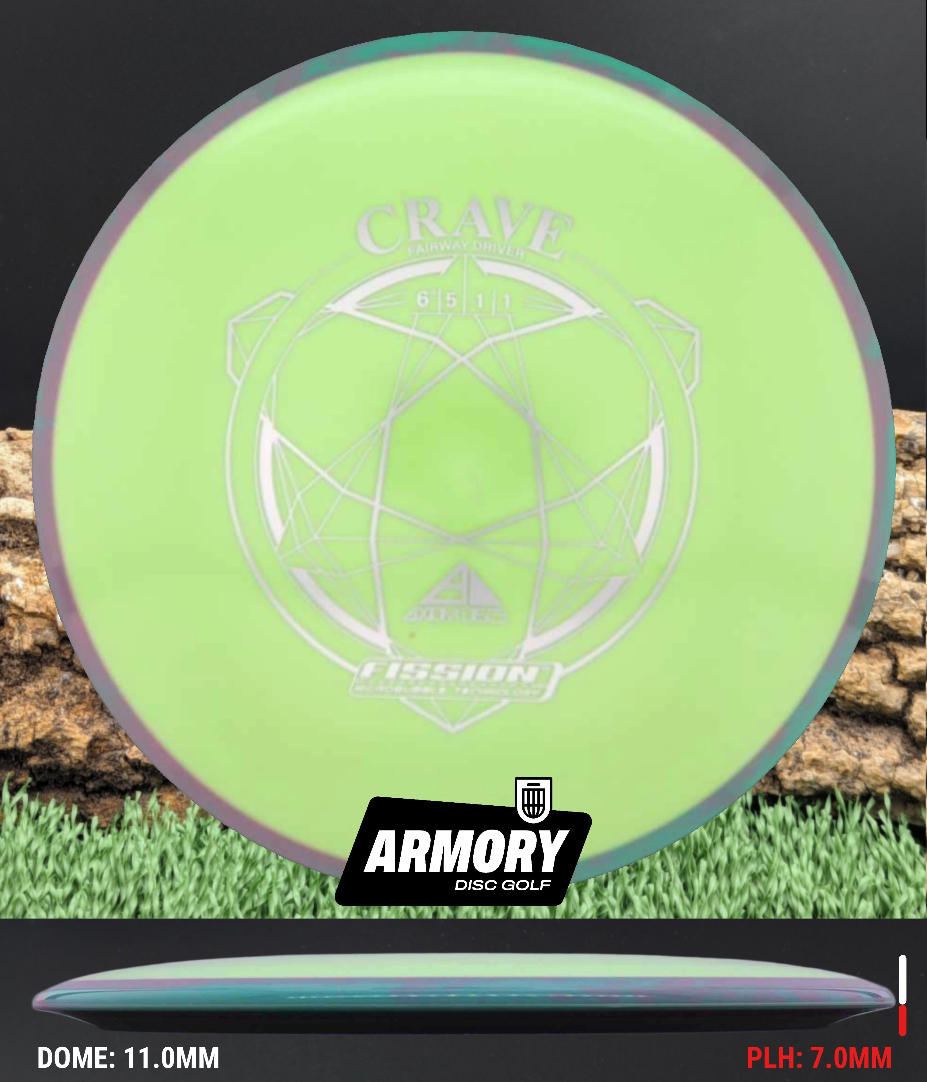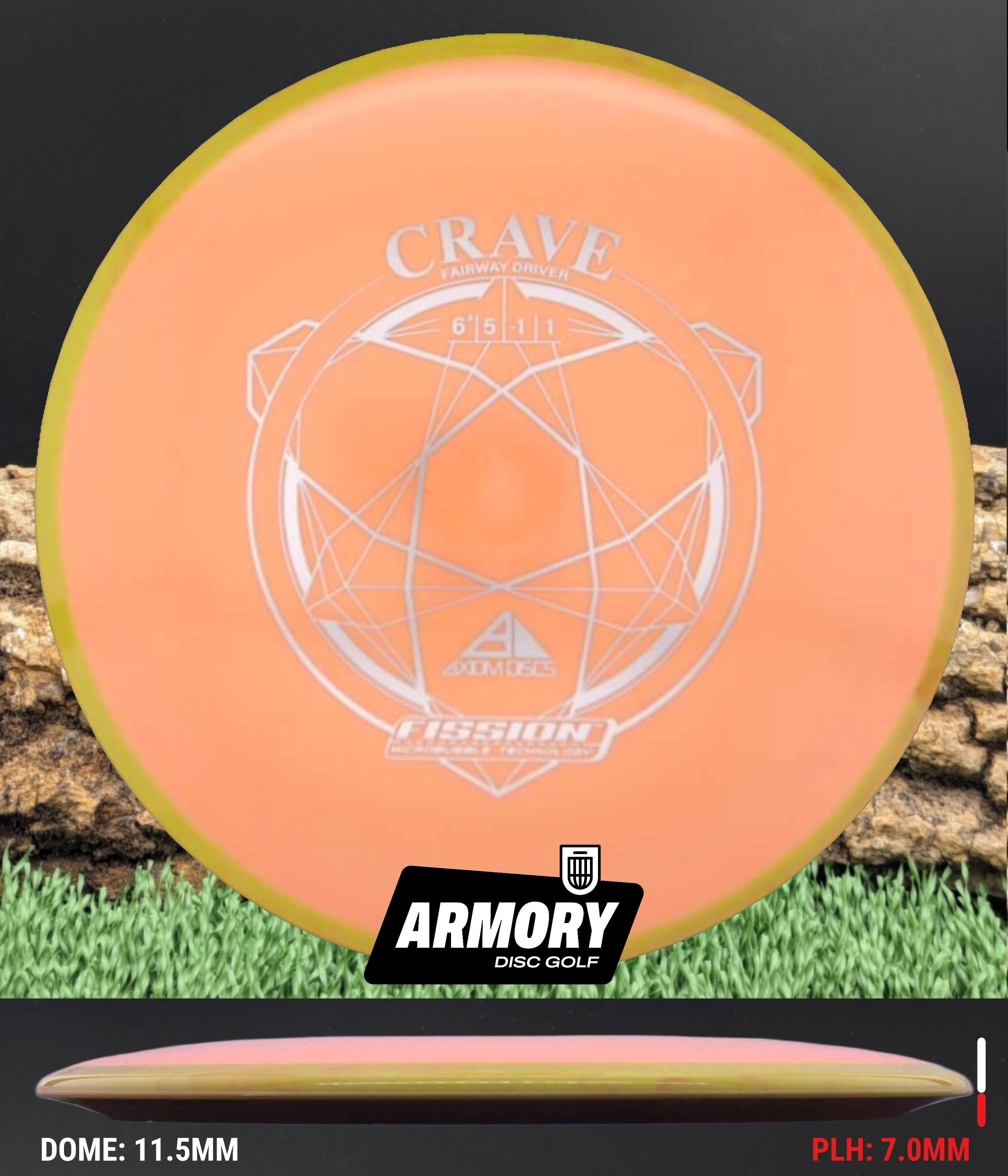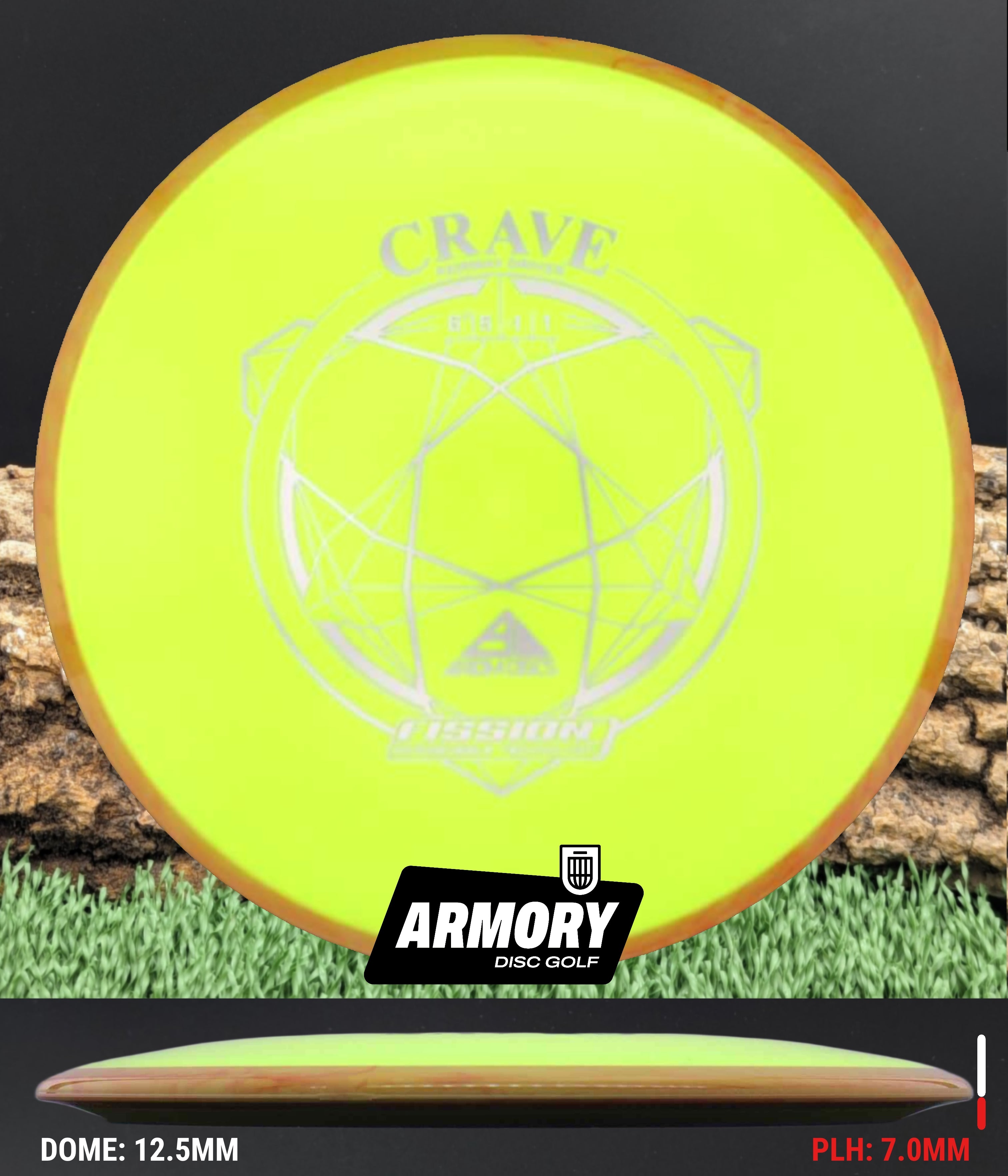 In Fission plastic, the Crave becomes even easier to throw. The lightweight micro-bubble core and enhanced GYRO overmold create a slightly more understable flight, adding extra turn, glide, and shot shaping potential. Players choose the Fission Crave for touch-controlled distance, workable lines in the woods, and reliable straight shots at modest power levels.