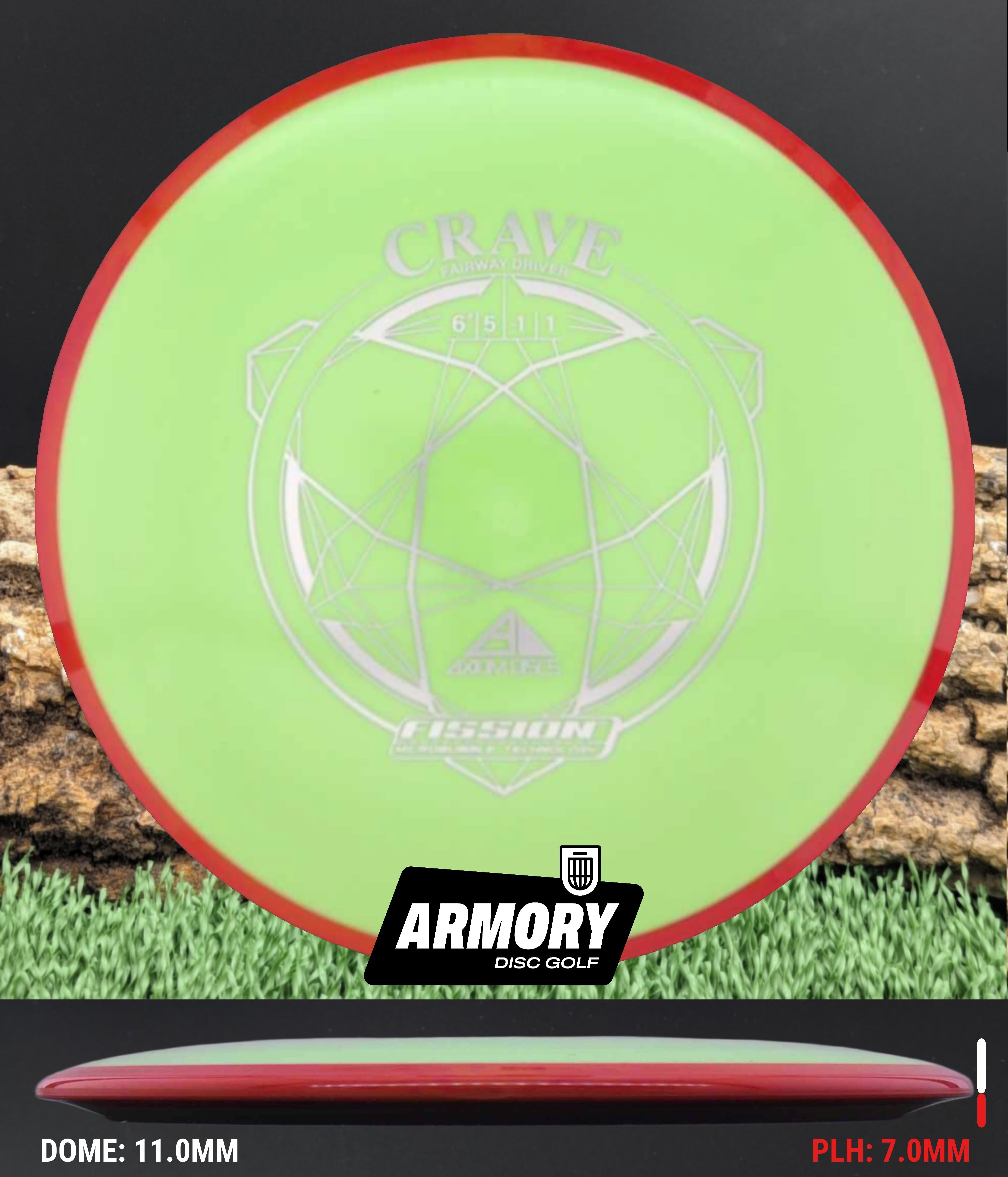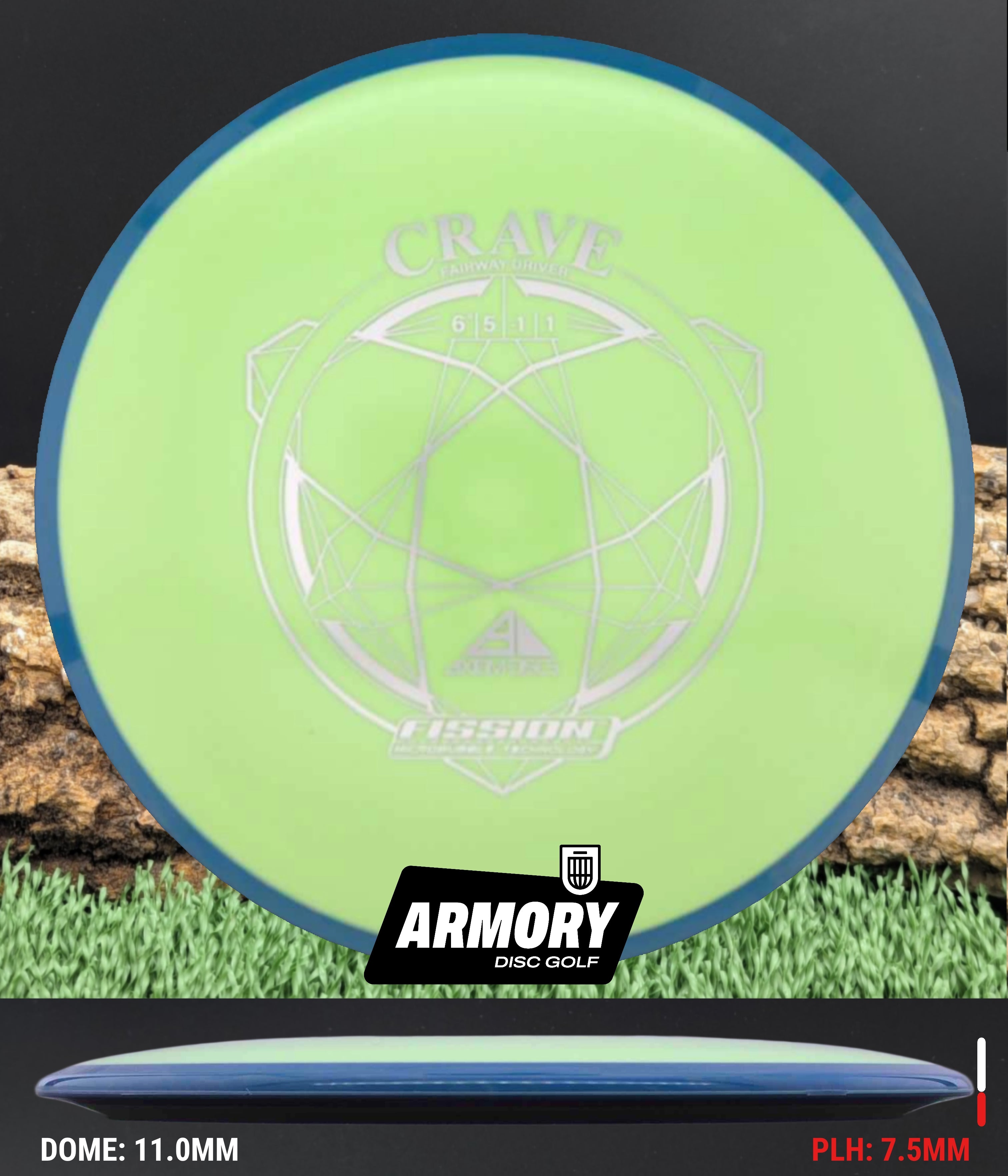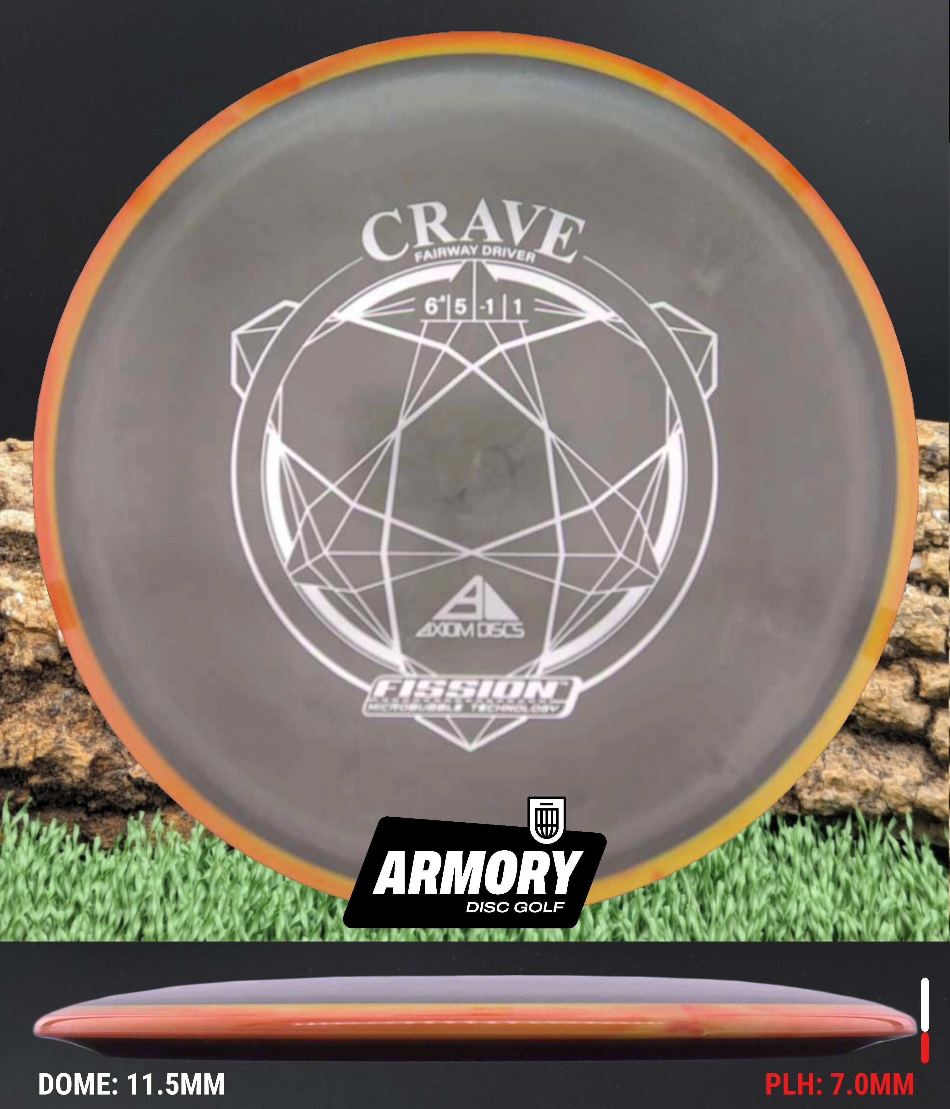 In Fission plastic, the Crave becomes even easier to throw. The lightweight micro-bubble core and enhanced GYRO overmold create a slightly more understable flight, adding extra turn, glide, and shot shaping potential. Players choose the Fission Crave for touch-controlled distance, workable lines in the woods, and reliable straight shots at modest power levels.