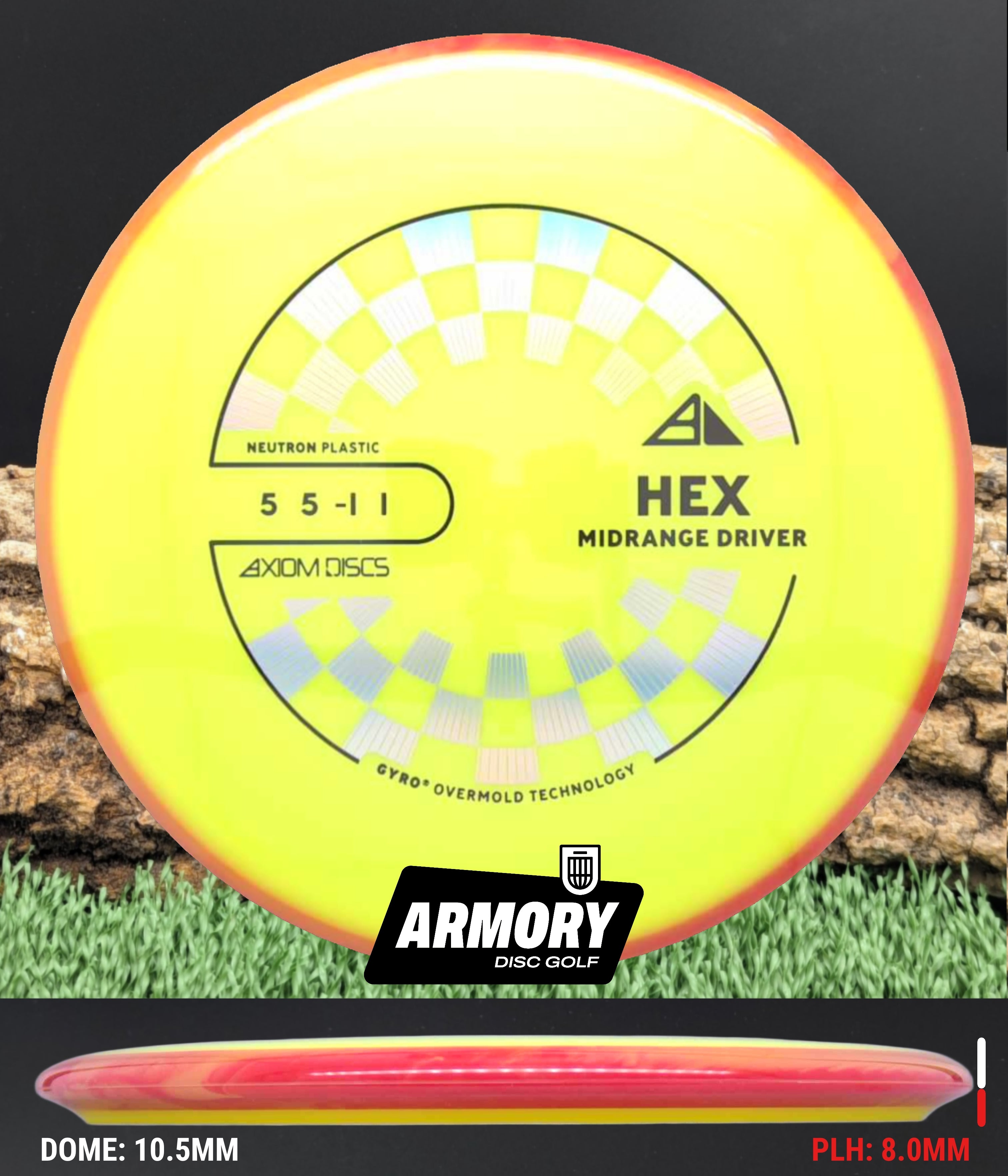 The Axiom Neutron Hex is the straight-stable midrange driver that fits every bag. With its point-and-shoot flight, the Hex makes line shaping effortless—hyzerflips, turnovers, or dead-straight lasers. Neutron plastic provides a premium feel, bright colors, and exceptional durability, giving you a disc that performs round after round.