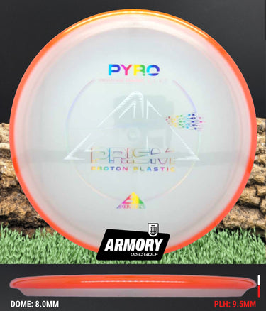 The Axiom Pyro in Prism Proton plastic brings a perfect balance of durability, stability, and visual appeal to one of Axiom’s most trusted midranges. Featuring flight numbers of 5 | 4 | 0 | 2.5, the Pyro offers a reliably overstable flight with dependable fade — ideal for forehands, headwinds, and precise placement shots.