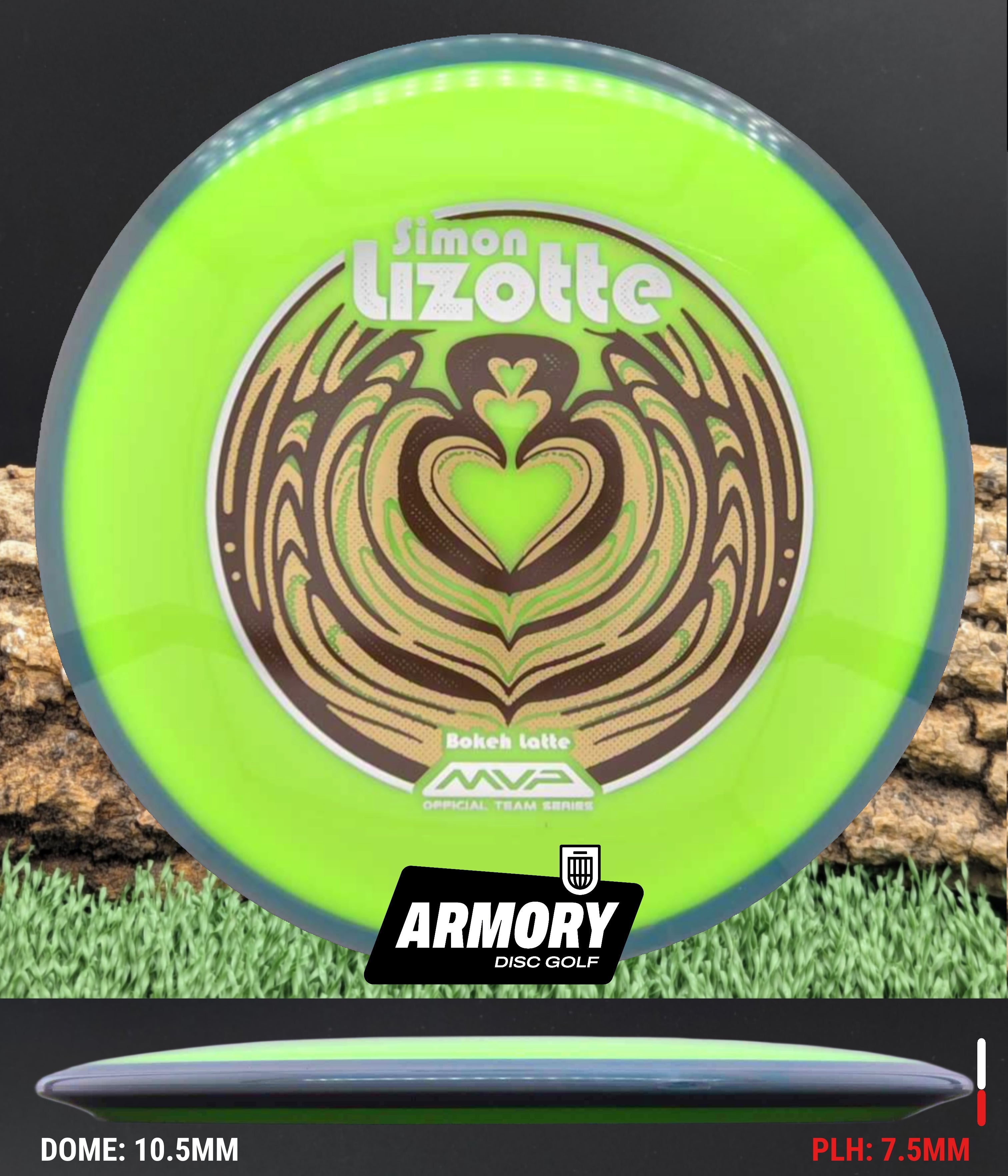 The Axiom Neutron Bokeh is Simon Lizotte’s 2026 Team Series fairway driver, blending thoughtful design with all-around versatility. Inspired by Simon’s pursuit of the perfect latte, industry veteran Mike Inscho brings that same balance and refinement into the “bokeh latte” artwork and flight. At its core, the Bokeh is a stable 7-speed fairway driver built to handle a wide range of shots with confidence and control.