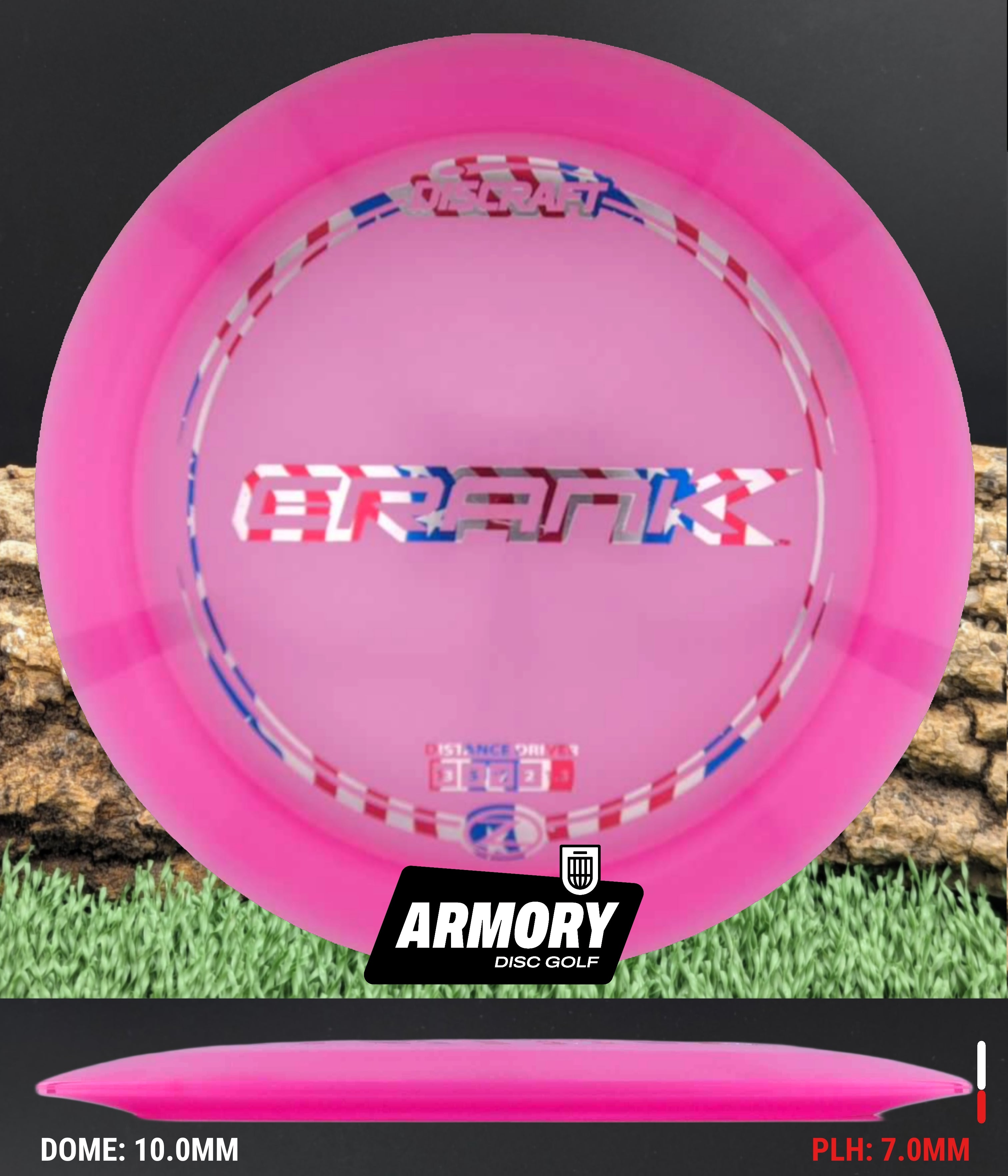 Z Line plastic adds outstanding durability and long-term stability, helping the Crank maintain its flight characteristics over extended use. This blend offers a firm feel and consistent grip, giving players confidence when pushing for distance in varying weather conditions.