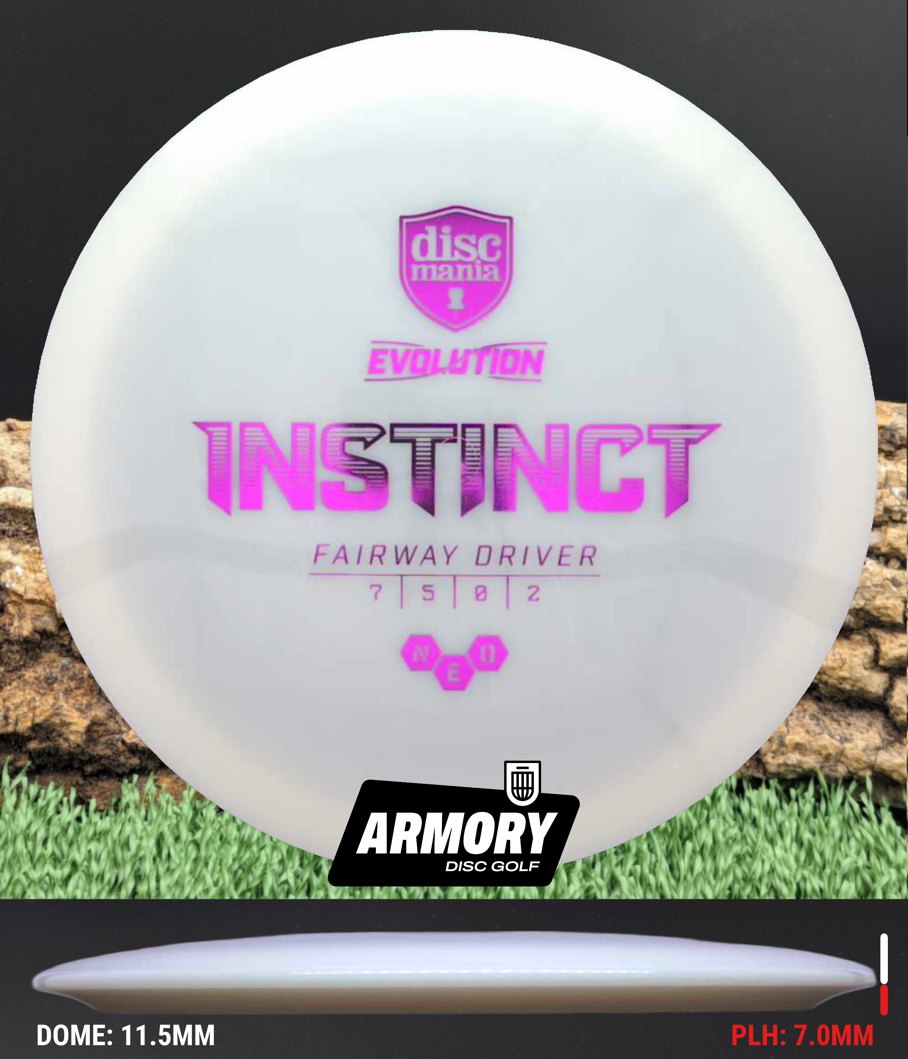The Instinct is the first fairway driver and the very first disc released in Discmania's Evolution line. It offers the perfect blend of control and stability, resulting in a fairway driver that can be depended on for touch shots as well as big crushes down the fairway. The disc is a glide machine and makes your control drives longer. Evolve your game by trusting your instincts!