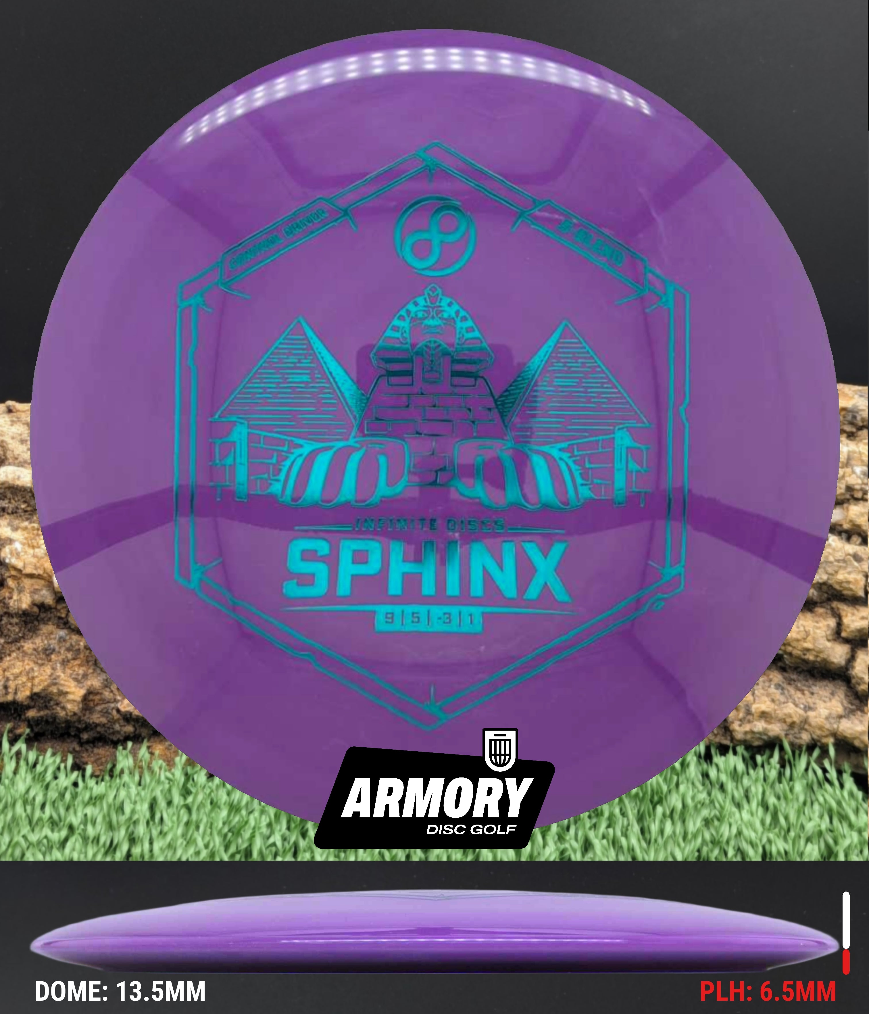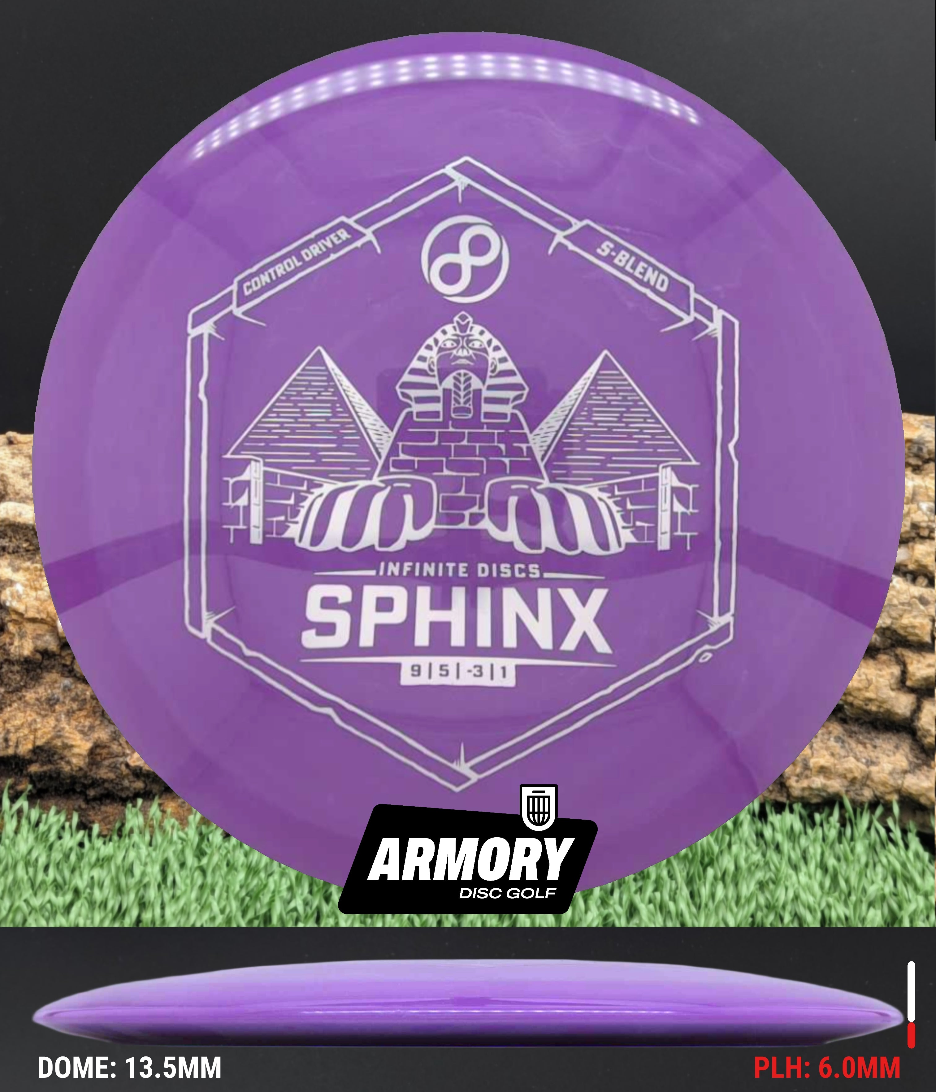 The SPHINX is the perfect disc for new players who want a distance driver / control driver crossover that won't fade too soon while covering as much distance as possible. With an understable release and manageable speed rating, the Sphinx can fly with accuracy and ease. For experienced players the Sphinx is a wonderful, understable utility disc for hyzer-flips, long anhyzer throws, or power rollers. The Sphinx will stand the test of time as a disc that earns a spot in any bag.
