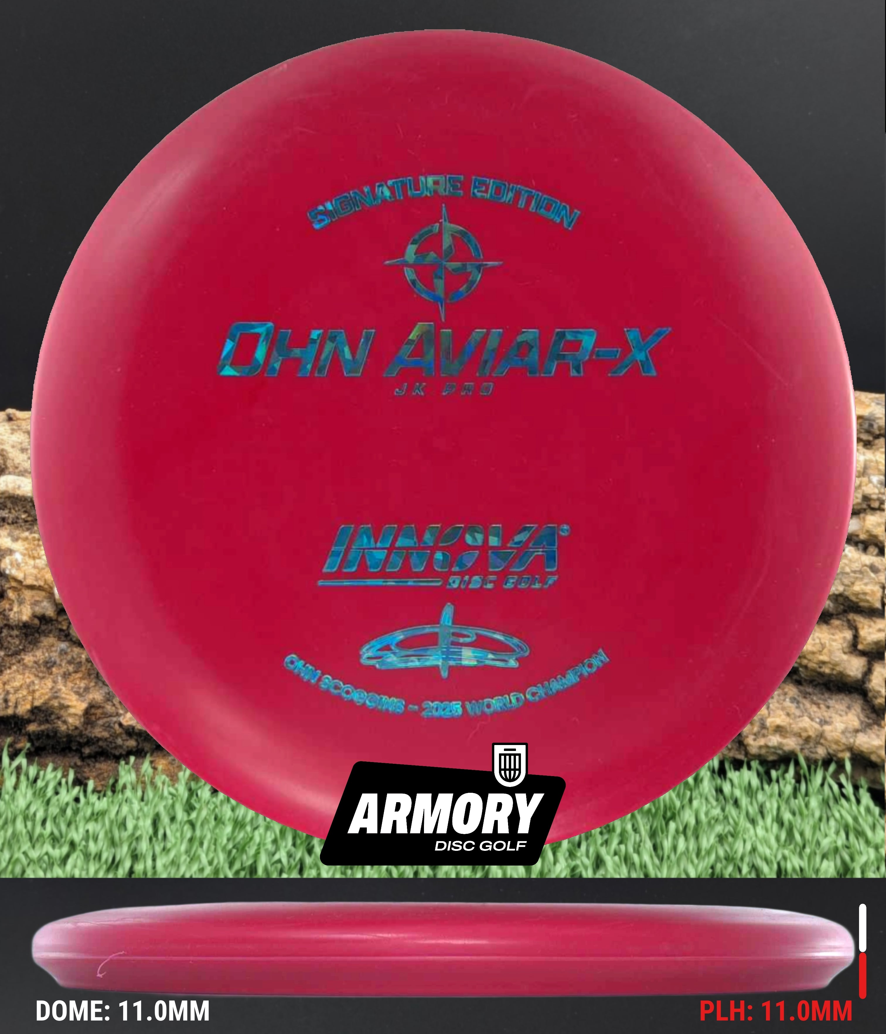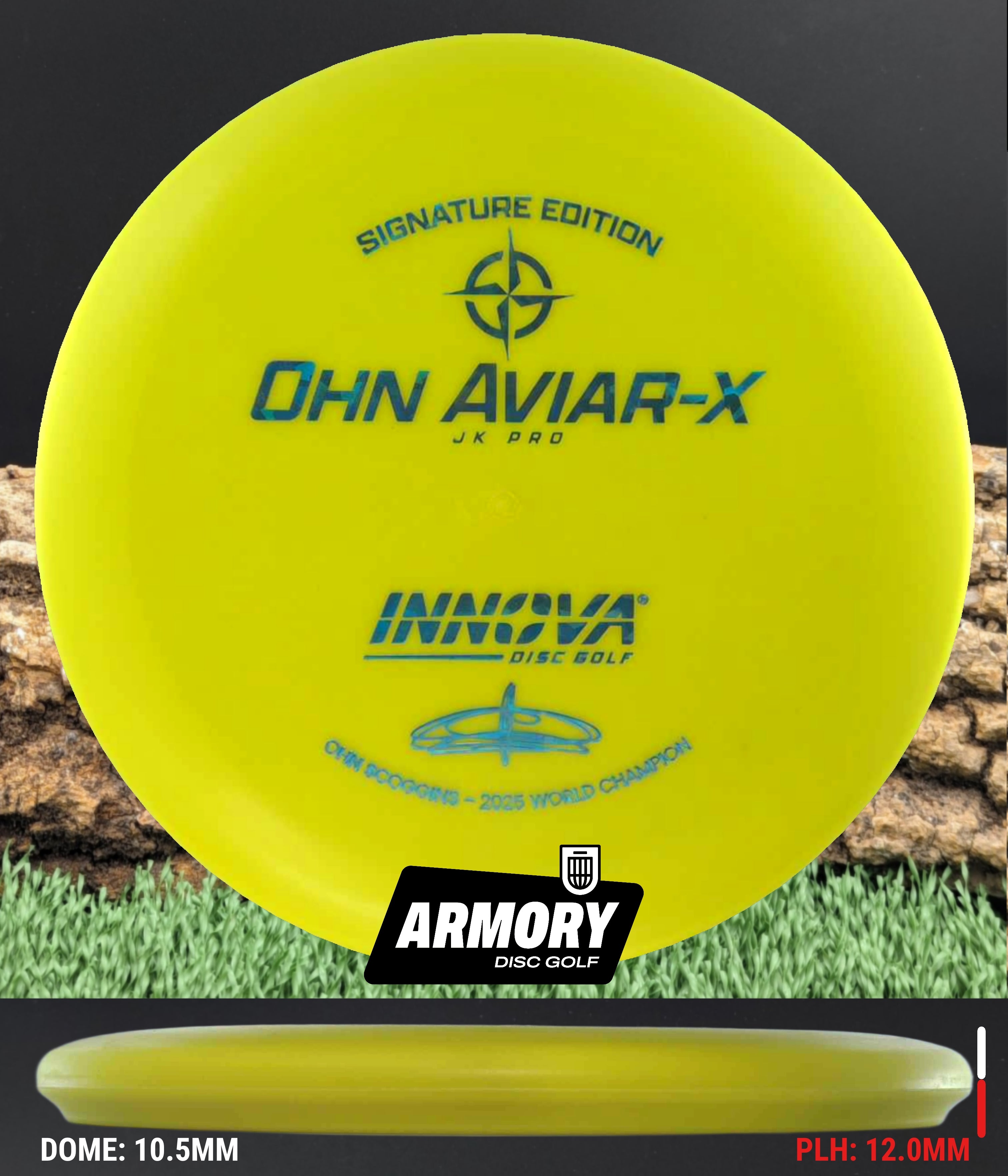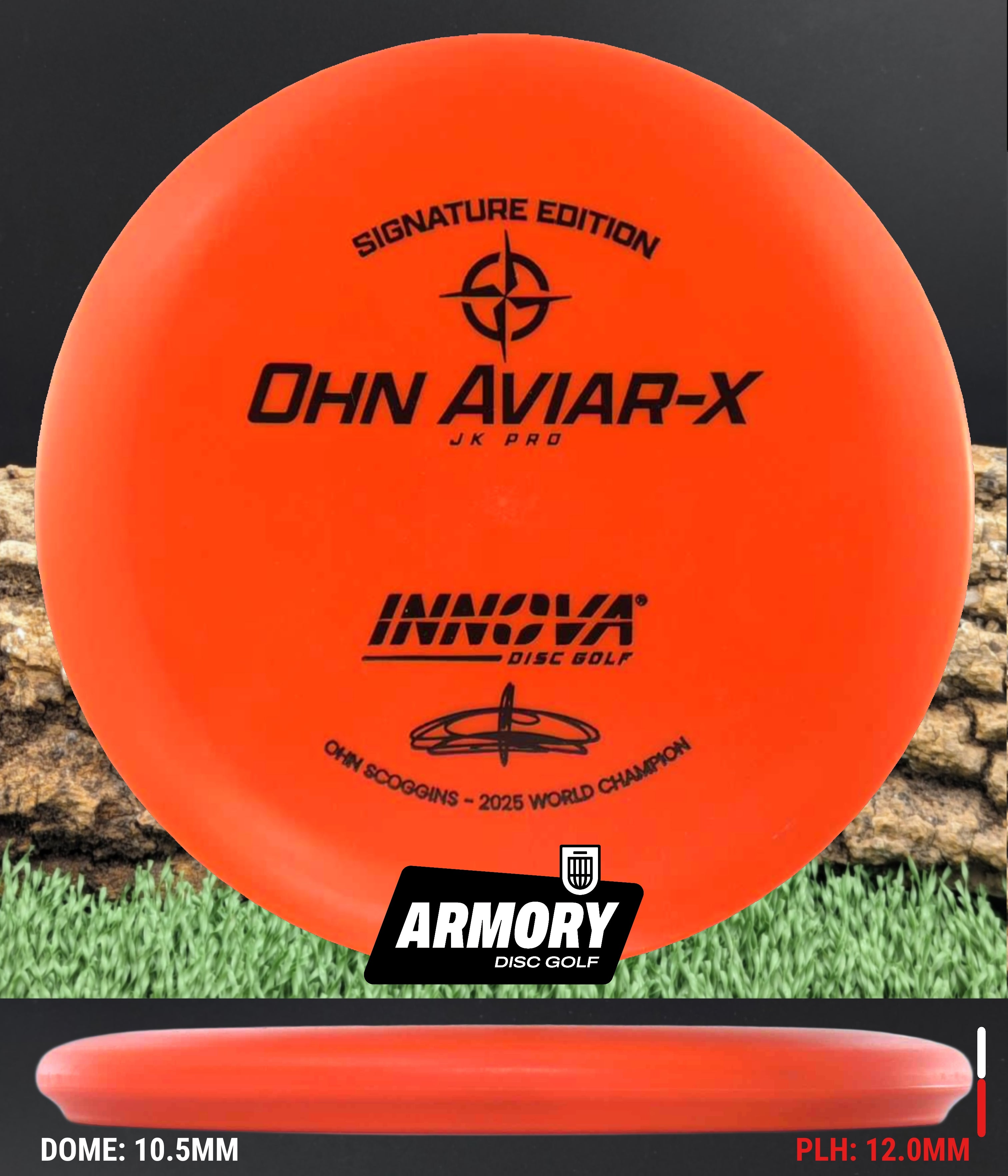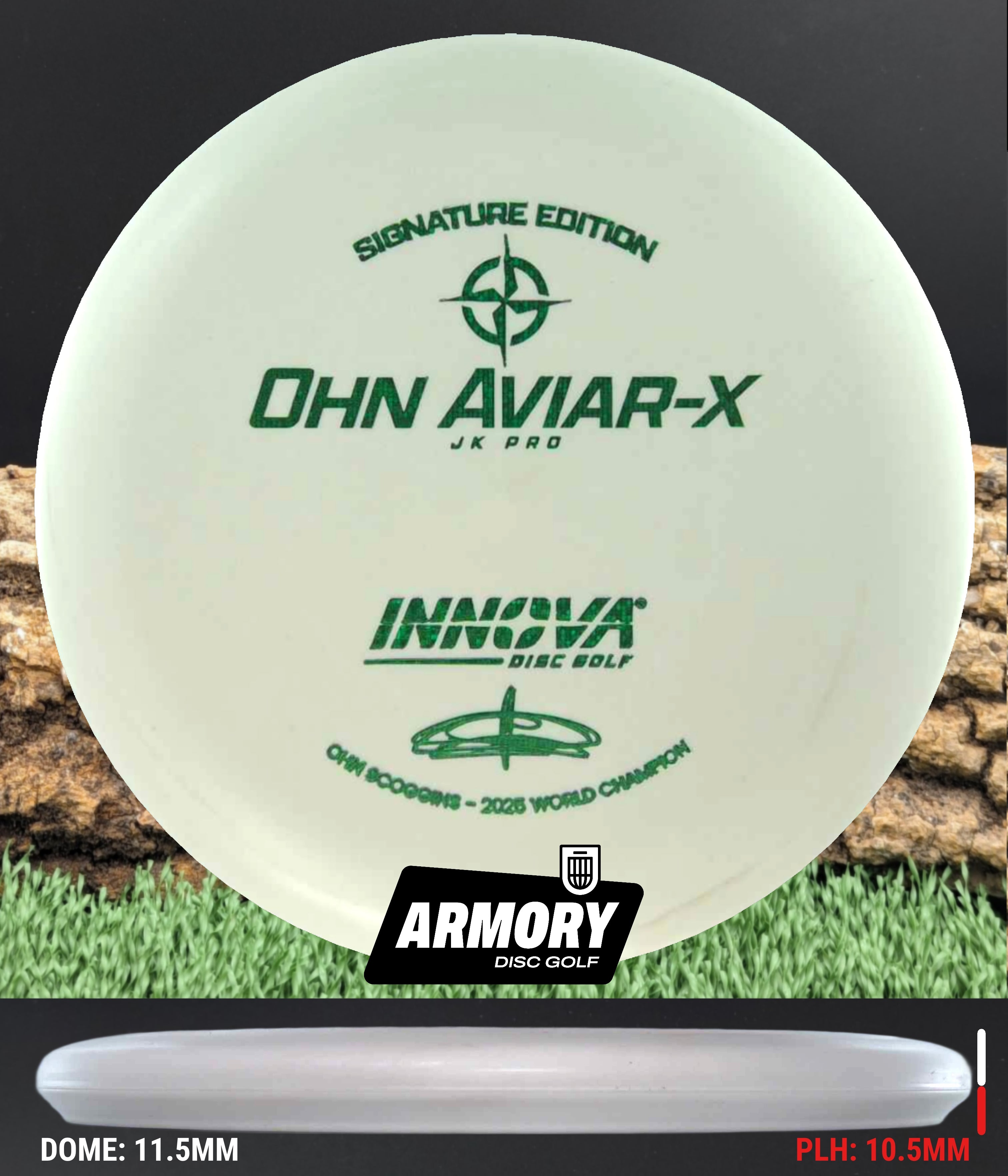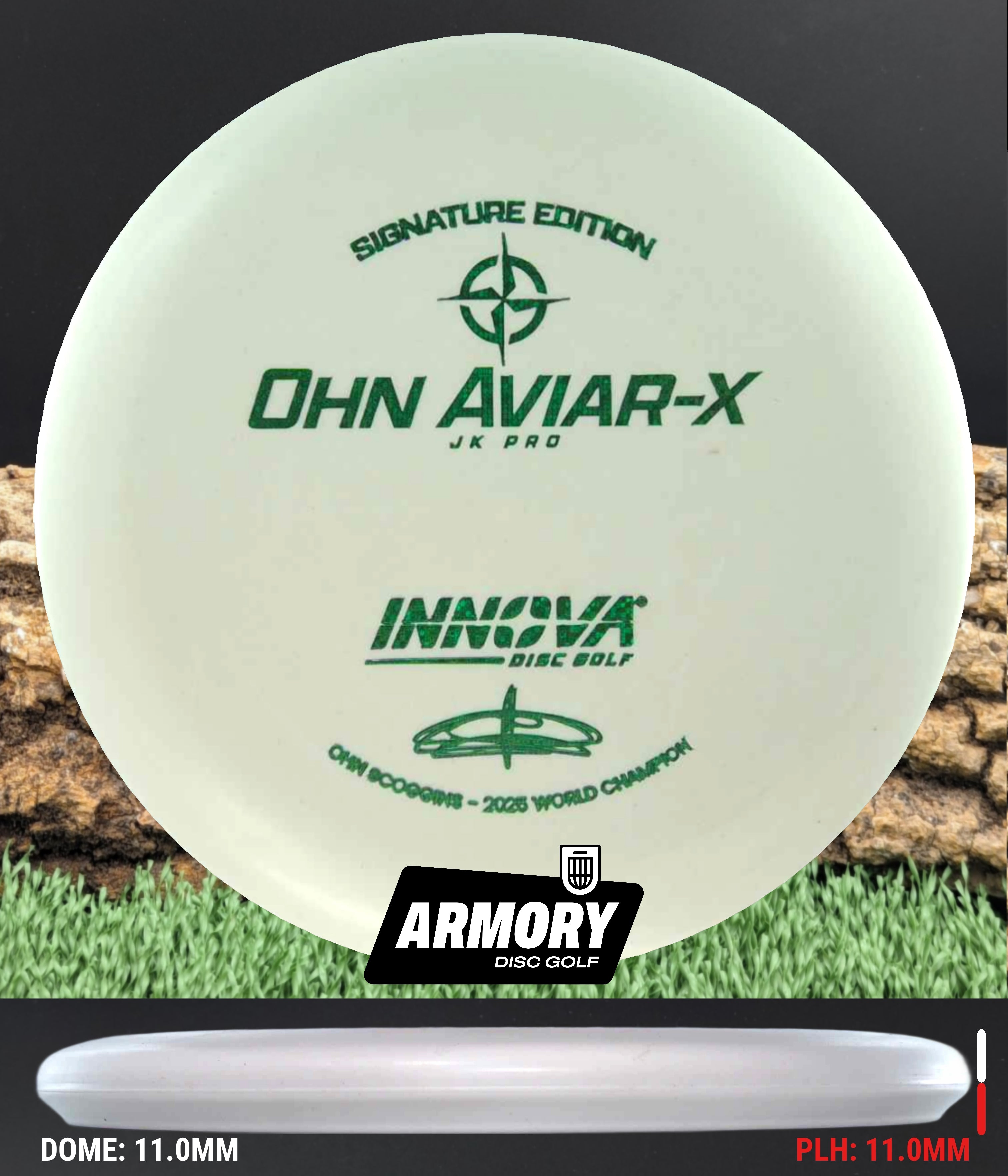 Ohn’s touch. JK Pro feel. The Ohn Aviar-X is the new Signature Edition putter from Ohn Scoggins, one of the smoothest and most accurate putters in the game. Built from the Aviar Driver (big bead) mold and crafted in soft, grippy JK Pro plastic, this disc captures the confidence and finesse that define Ohn’s putting style.