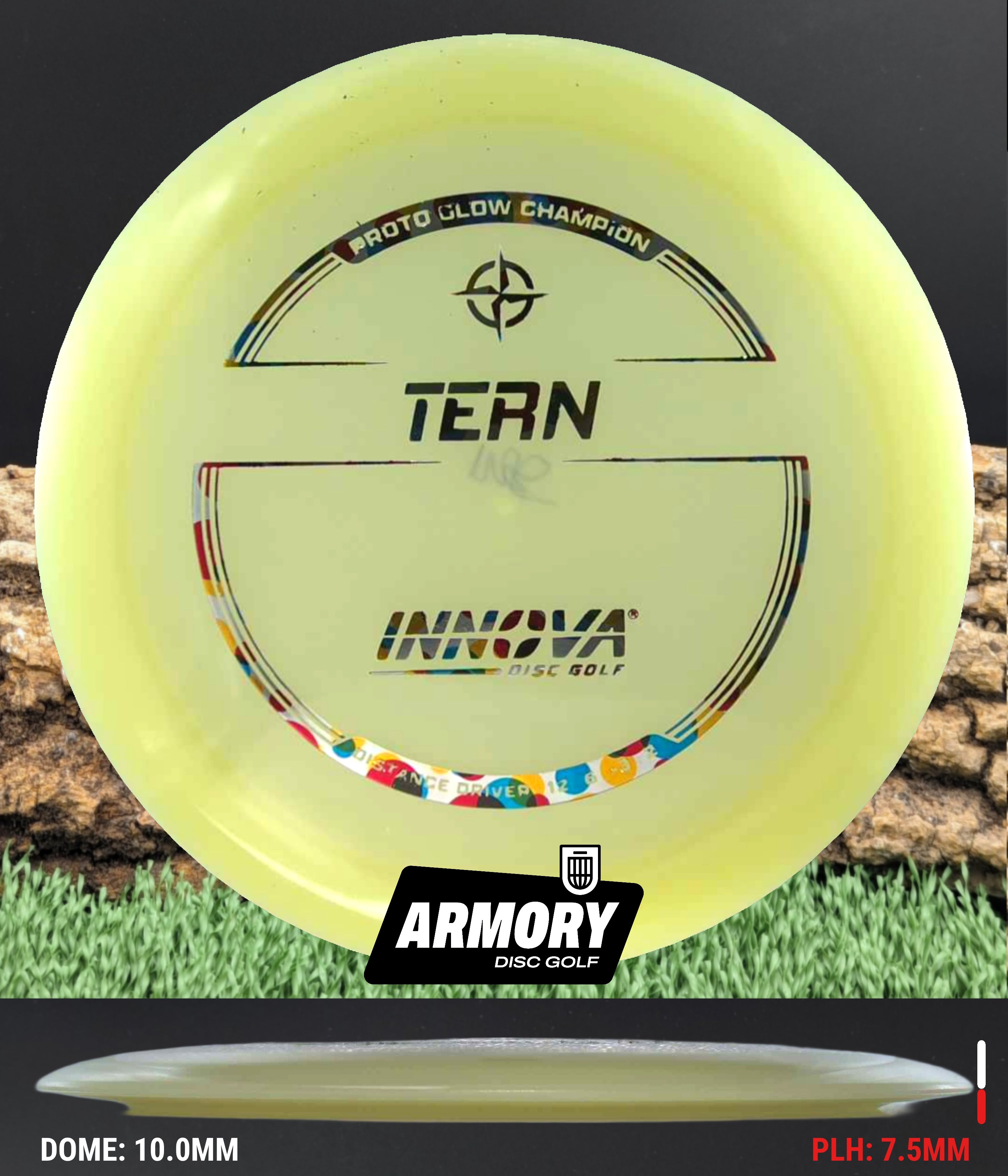 The Proto Glow Tern takes one of Innova’s most beloved long-distance drivers and lights it up for night and low-light play. With flight numbers 12 | 6 | -3 | 2, the Tern is known for its natural high-speed turn, easy distance, and exceptional glide—making it a favorite for players who love shaping long, drifting lines.