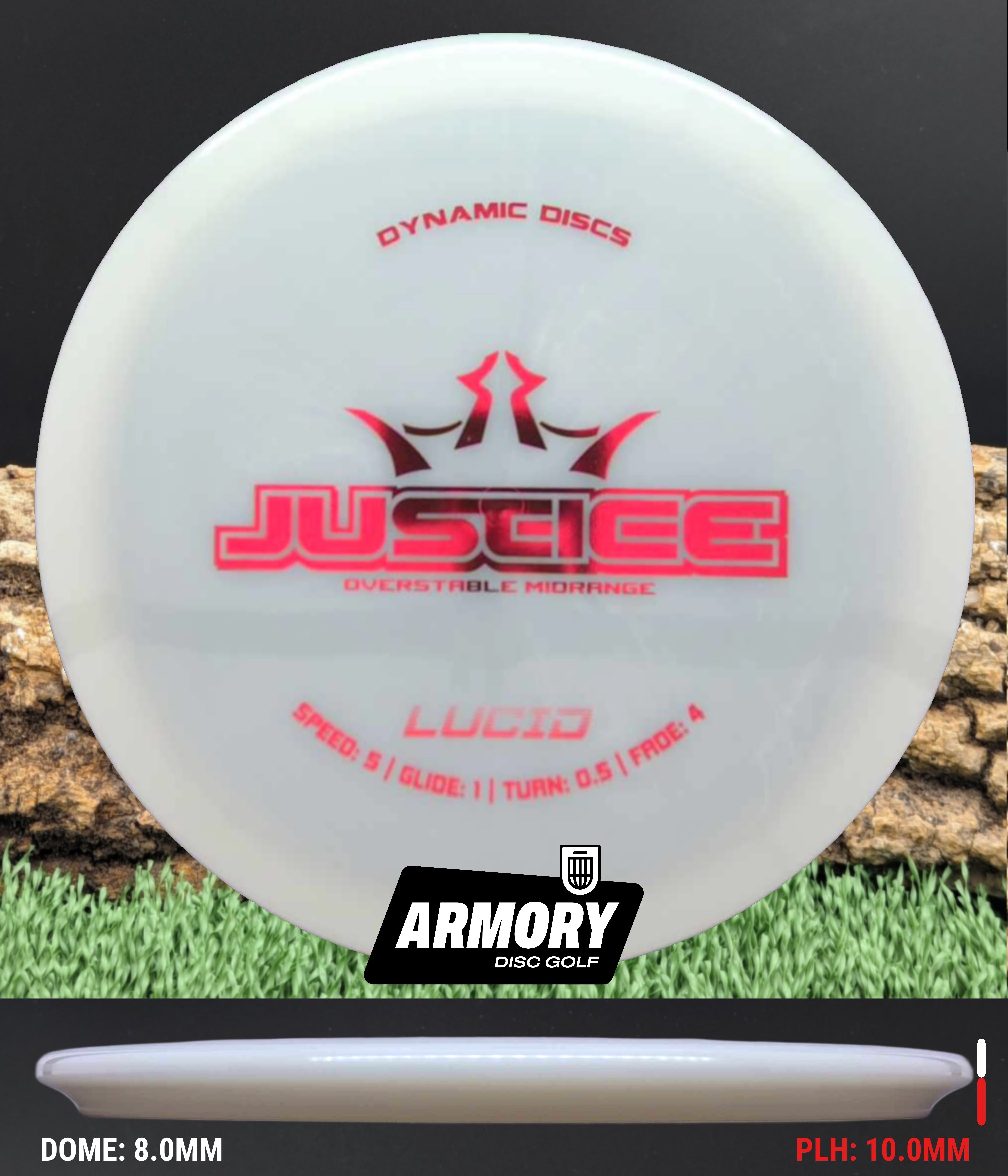Designed as an ultra-overstable midrange, the Justice is a true utility disc that thrives in conditions where other mids fail. With extremely low glide and a powerful, dependable fade, the Justice refuses to turn over, even when thrown hard or into heavy headwinds. When you need a short-range solution that absolutely must finish left and stay on line, the Justice delivers every time.