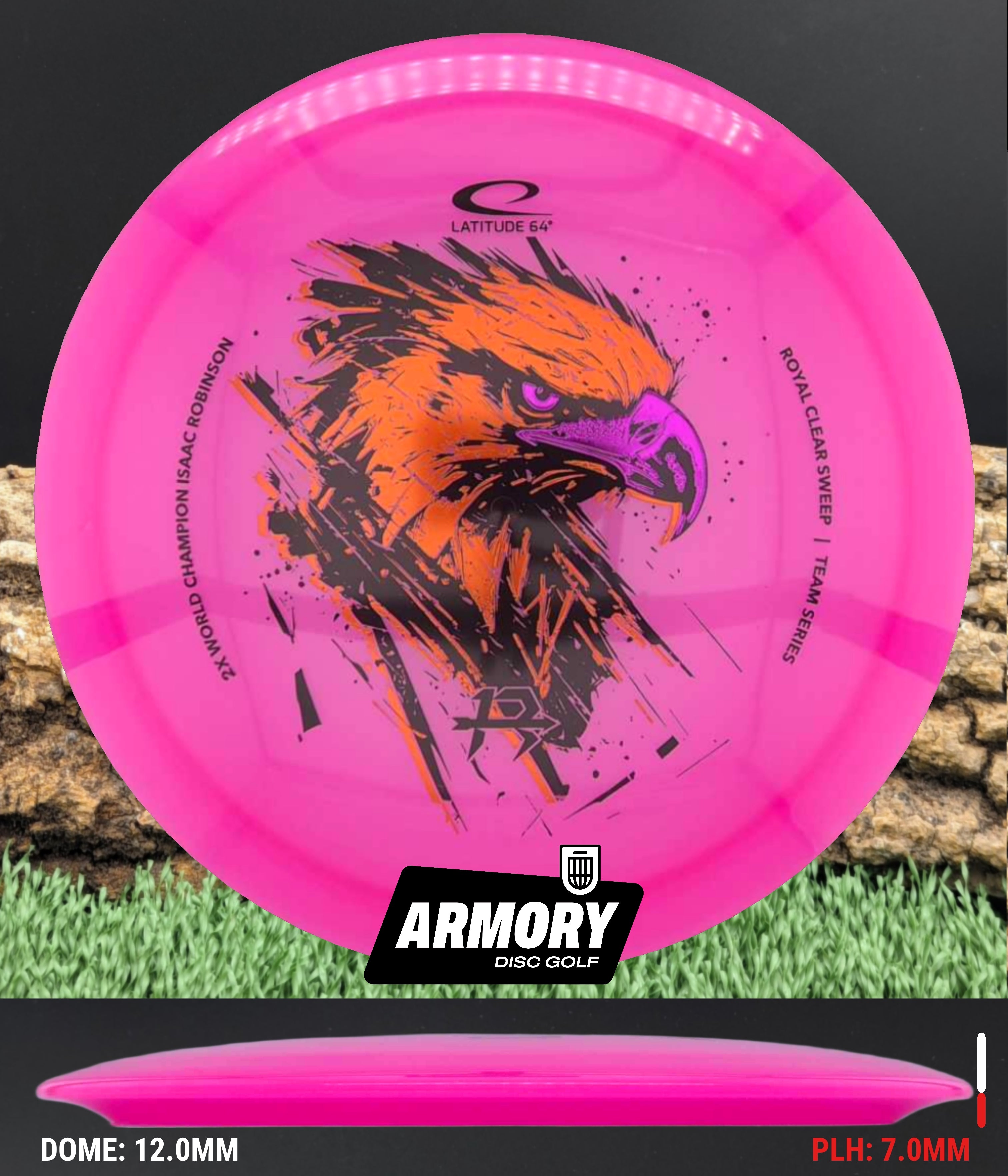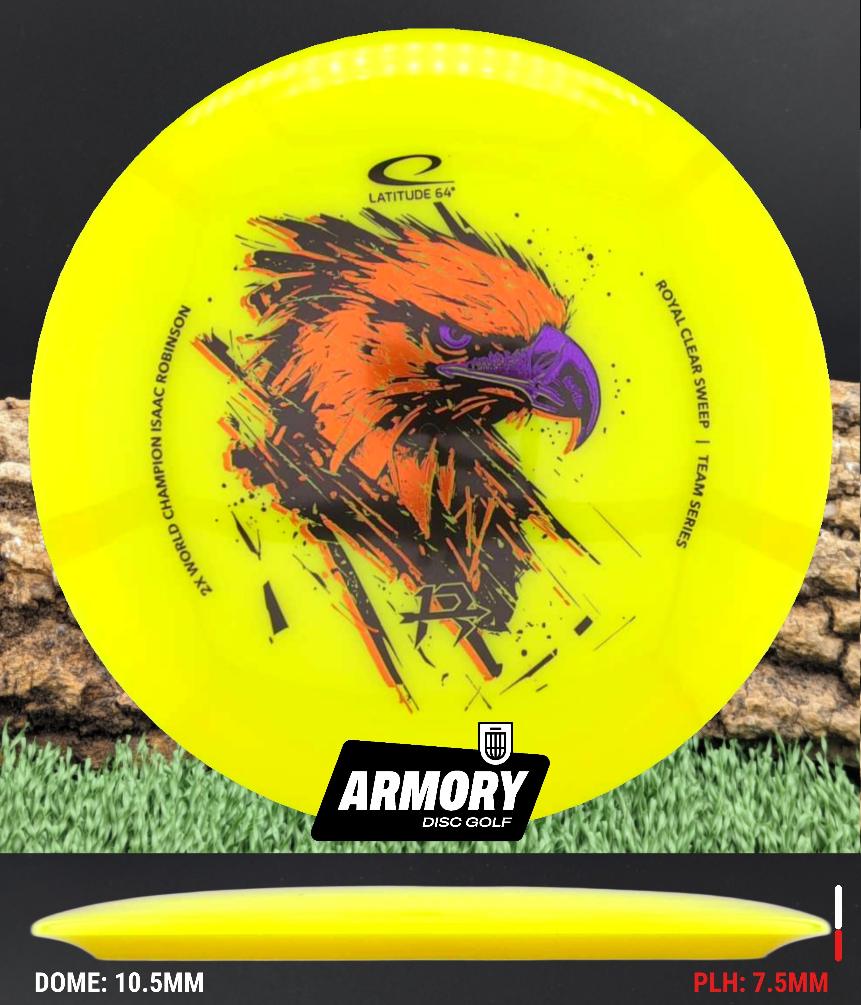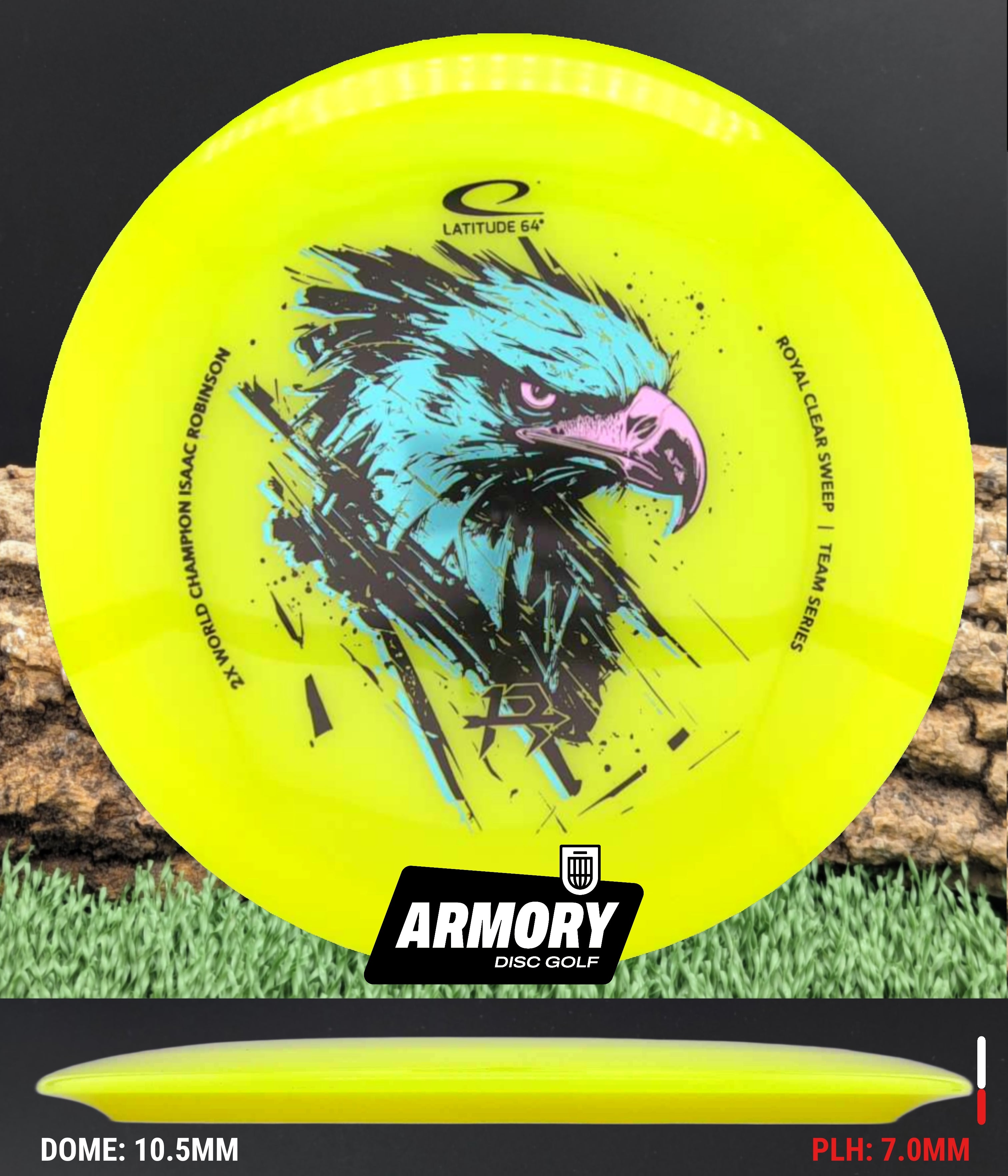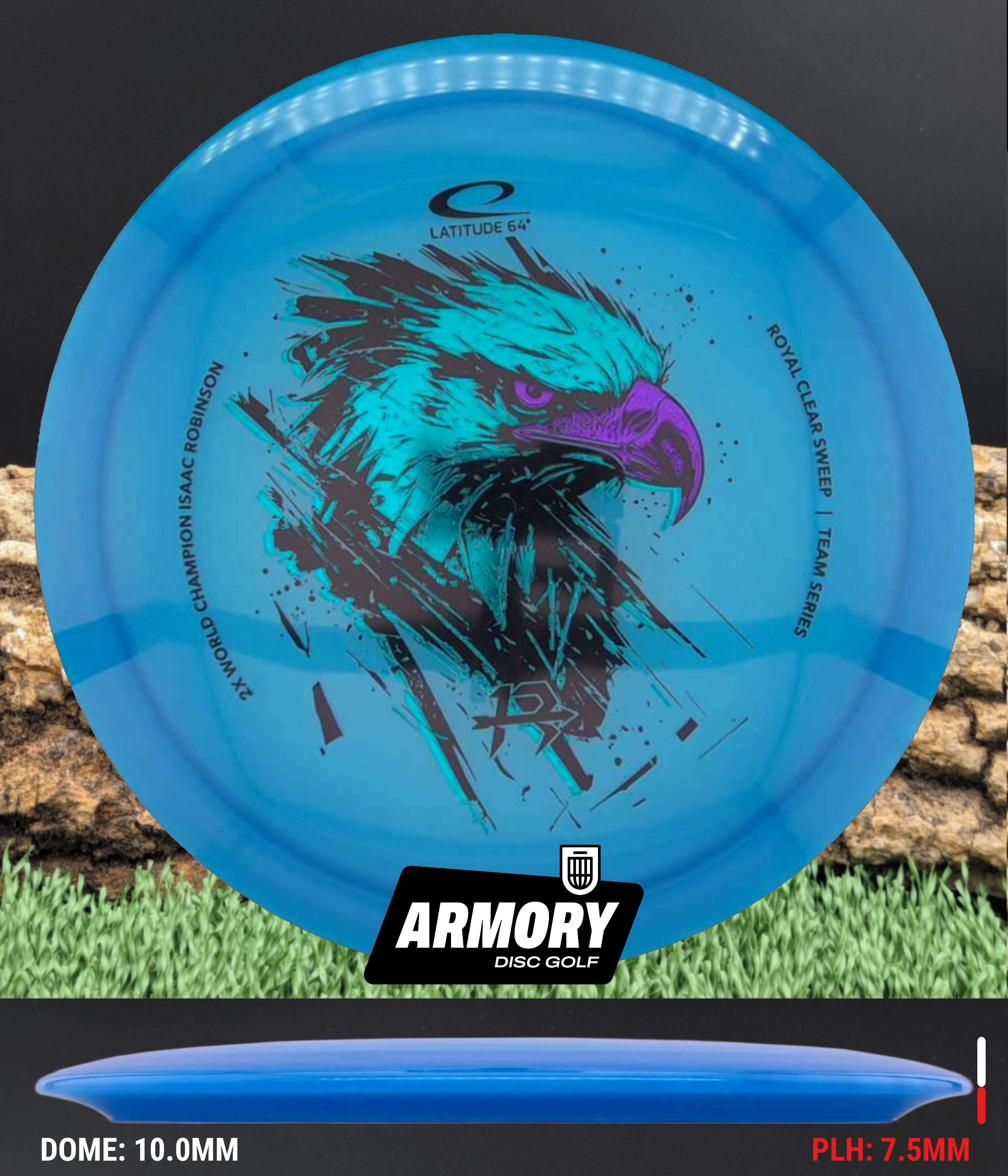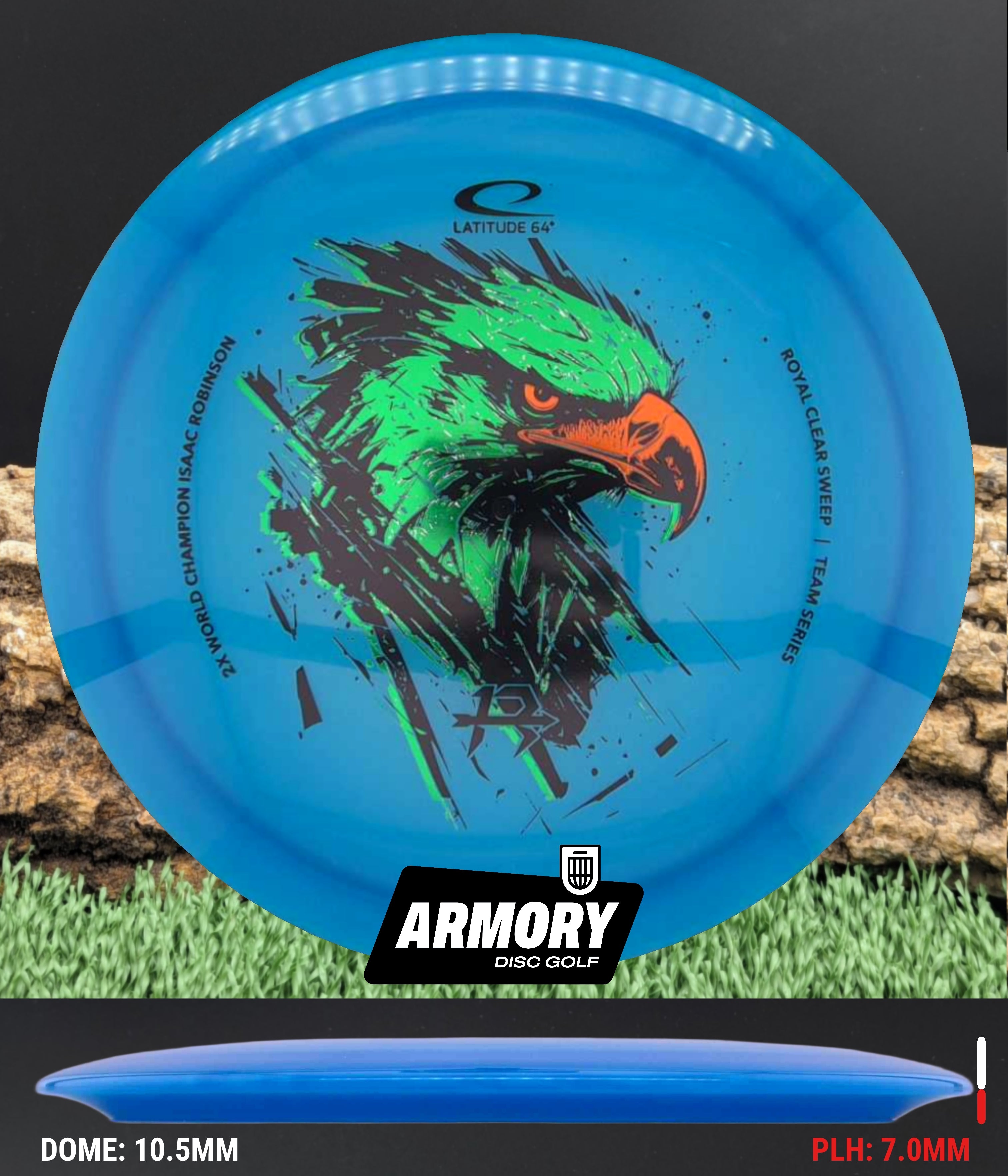 The Isaac Robinson Team Series edition adds a bold triple-stamp eagle design, combining high-level performance with standout visuals. Whether you are attacking fairways or dialing in placement shots, the Latitude 64 Sweep delivers control, glide, and reliability.