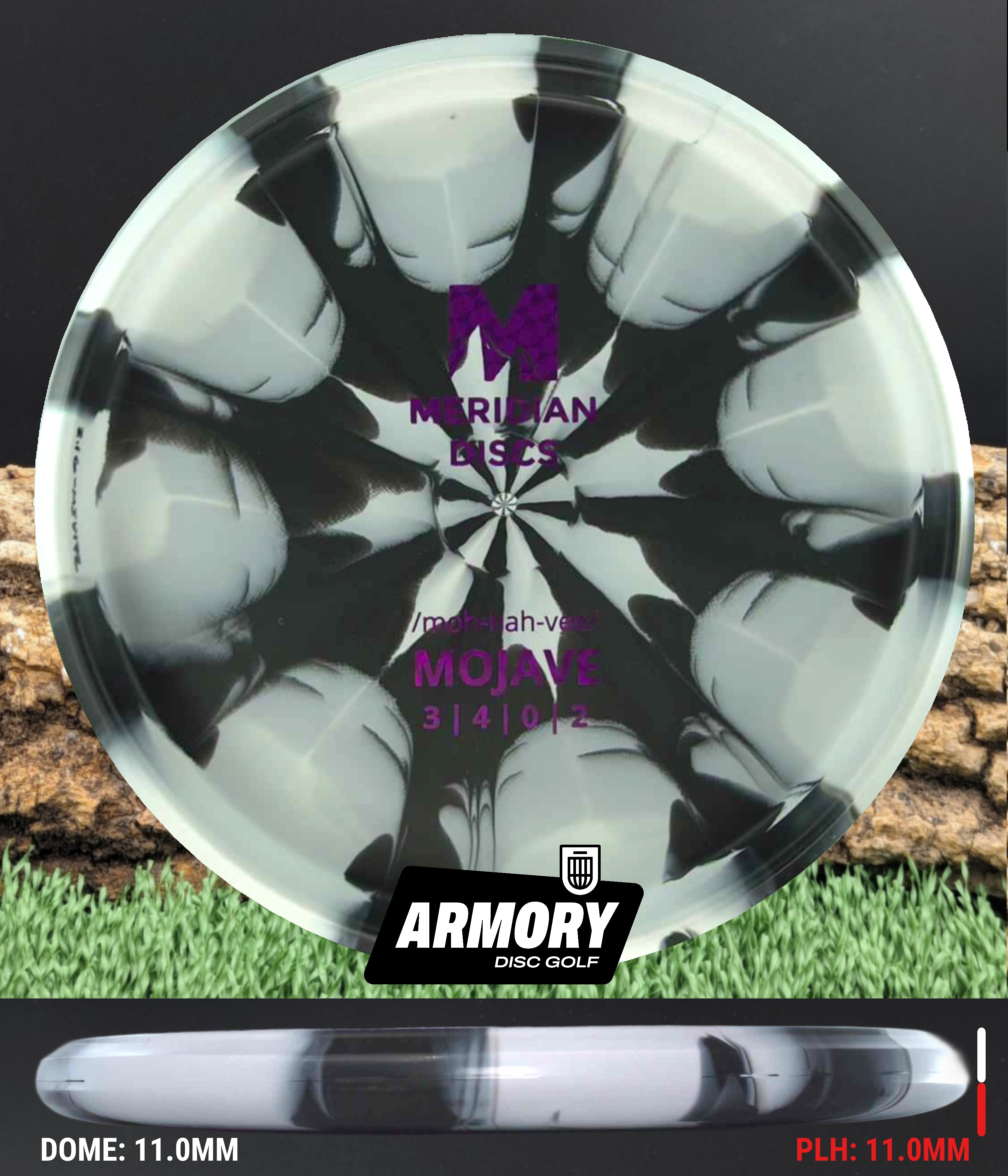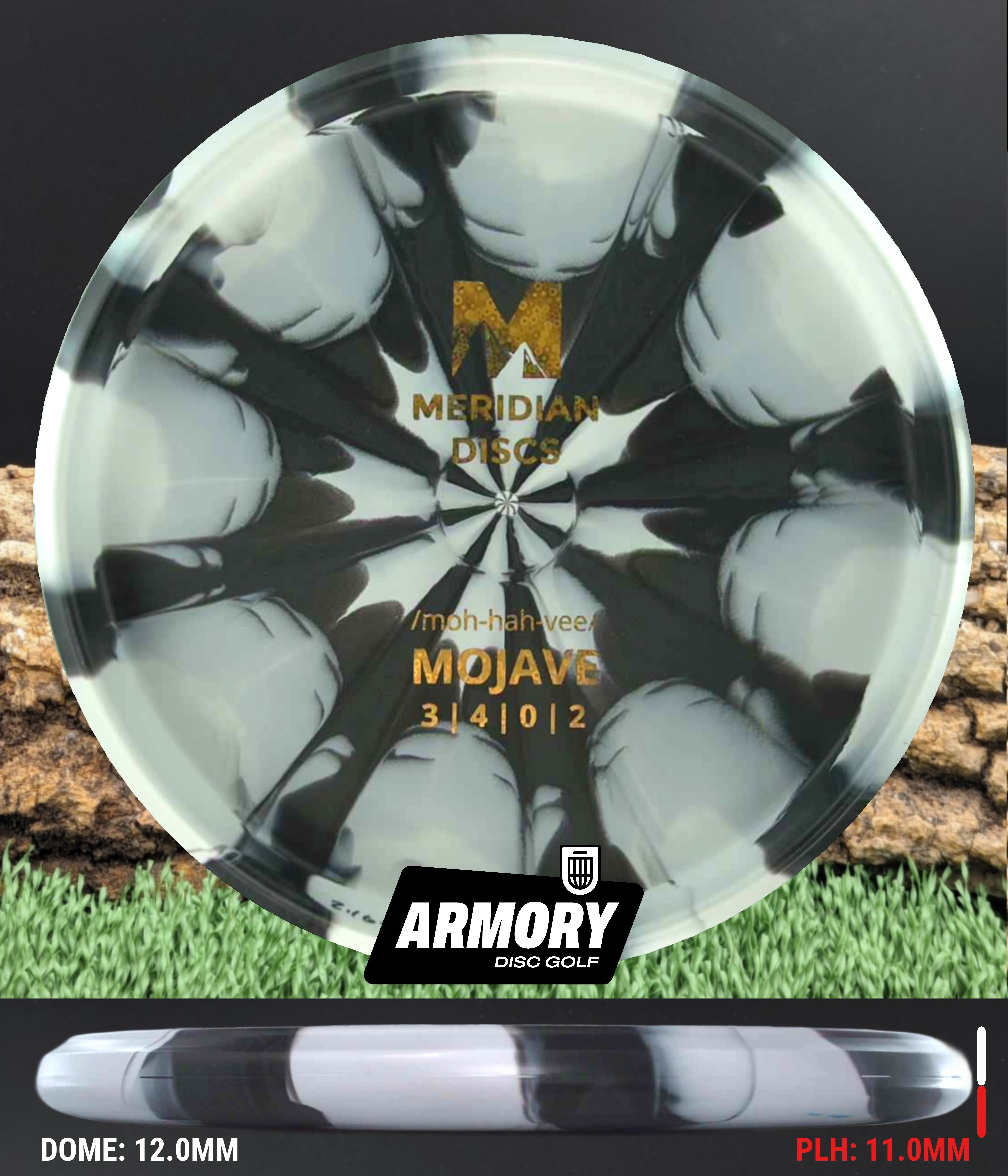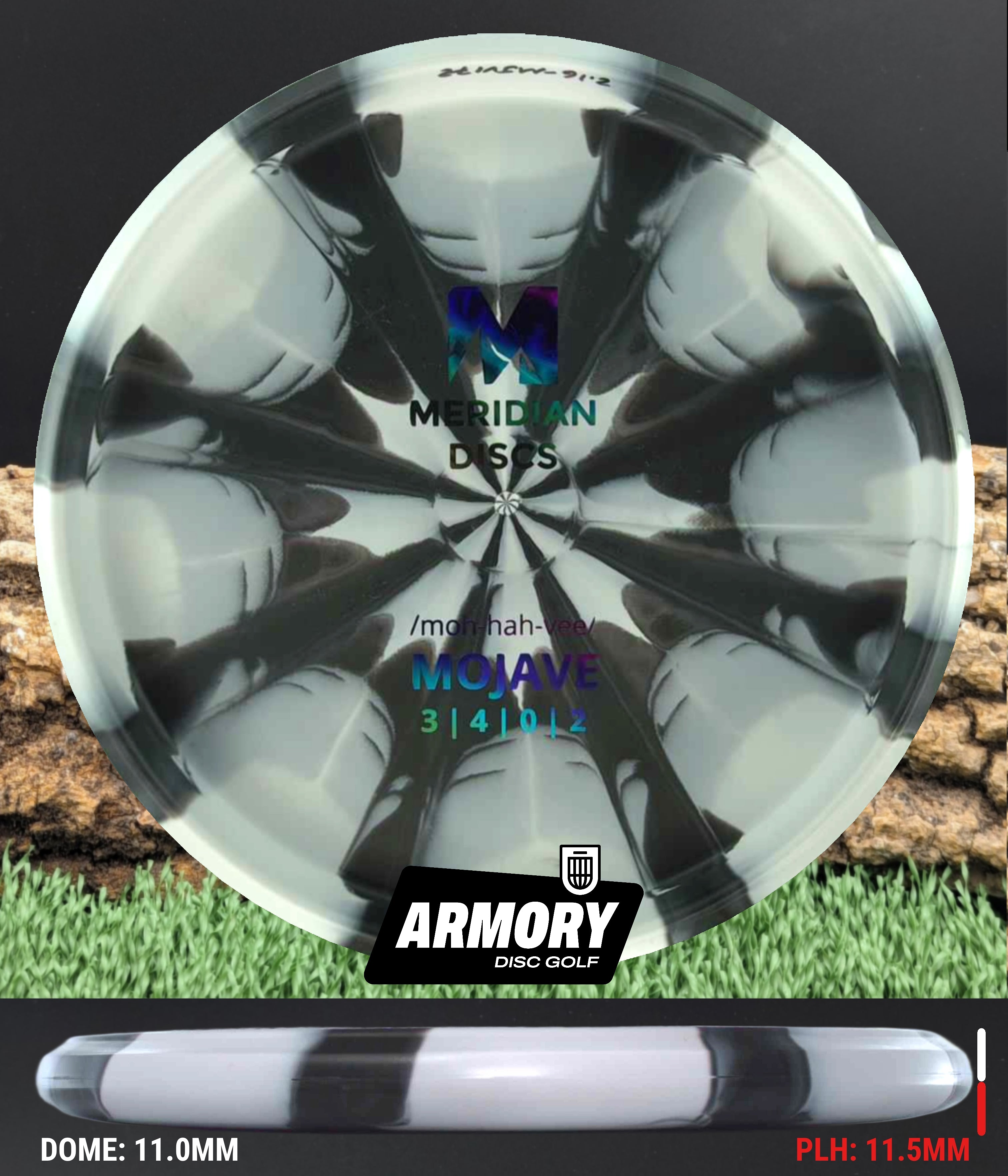 The Marbled Graphite Mojave is Meridian’s newest bead-in putt and approach disc, modeled closely after the trusted PA3 but tuned for even better glide and control. Featuring a flat top, low shoulder, squared nose, and a clean, confident bead, the Mojave delivers a consistent hand feel that players who love stable putters will immediately trust.