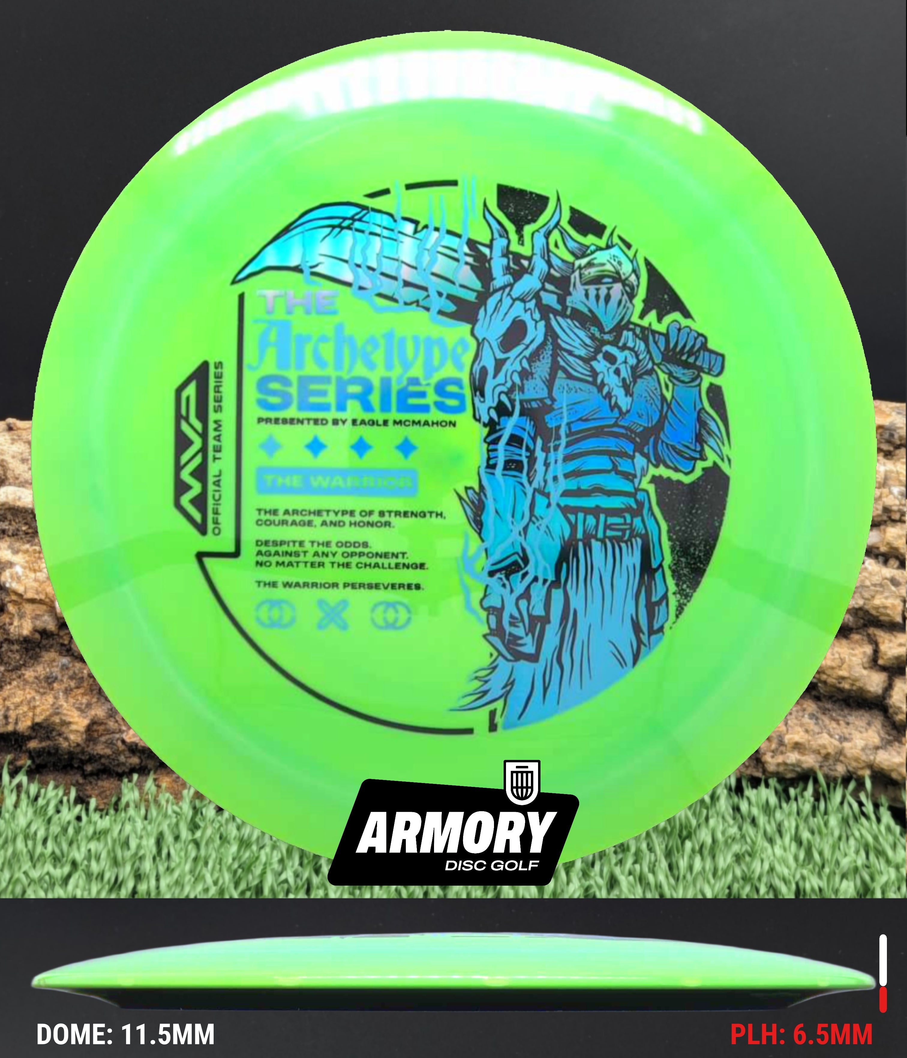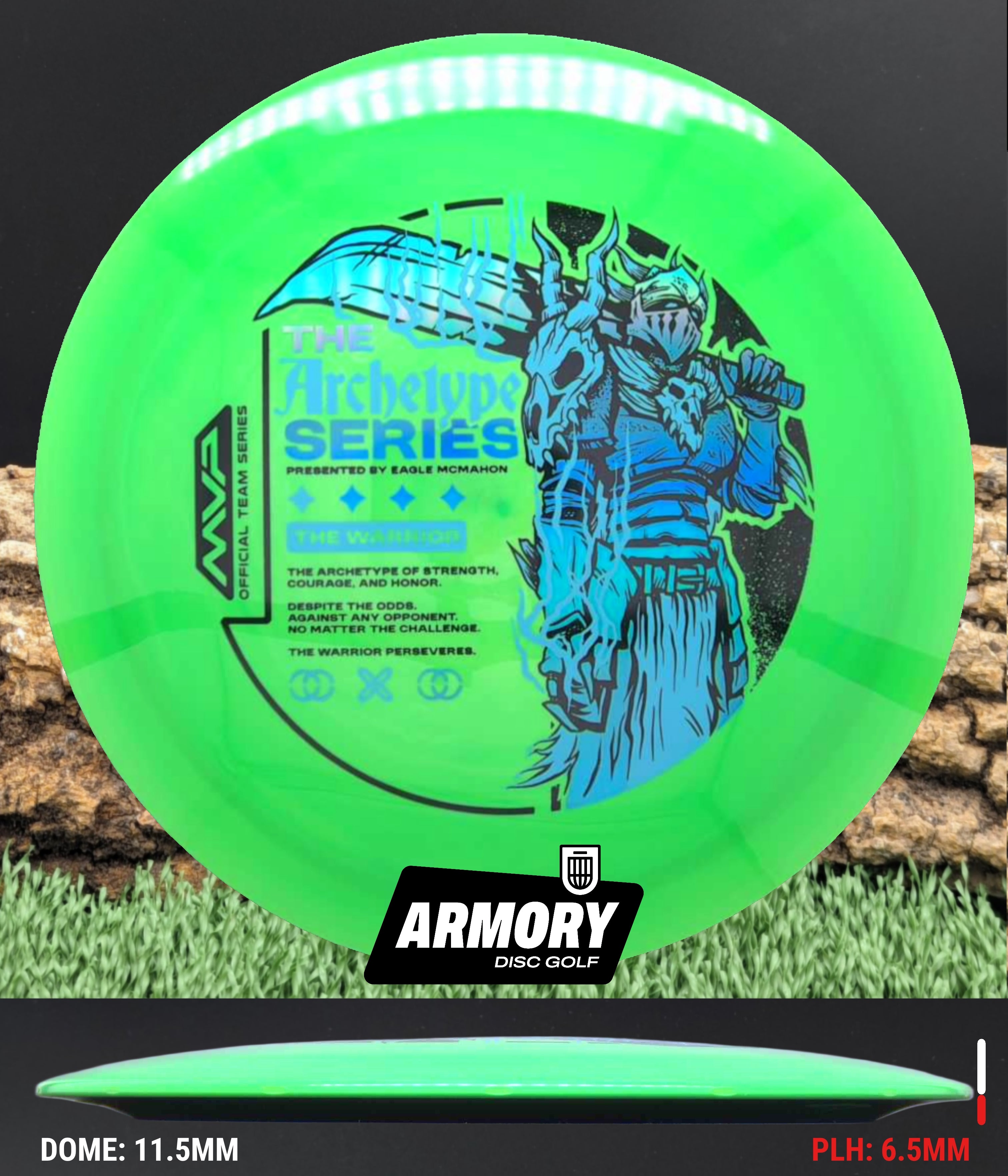 The Streamline Neutron Engine launches the 2026 Eagle McMahon Archetype Series, created in collaboration with Green C Studio. Assigned the role of The Warrior, the Engine is built from the ground up to be a dependable, no-nonsense workhorse distance driver. As the first 13-speed disc in the Streamline lineup, it is designed to handle power while maintaining control and consistency across a wide range of throwers.