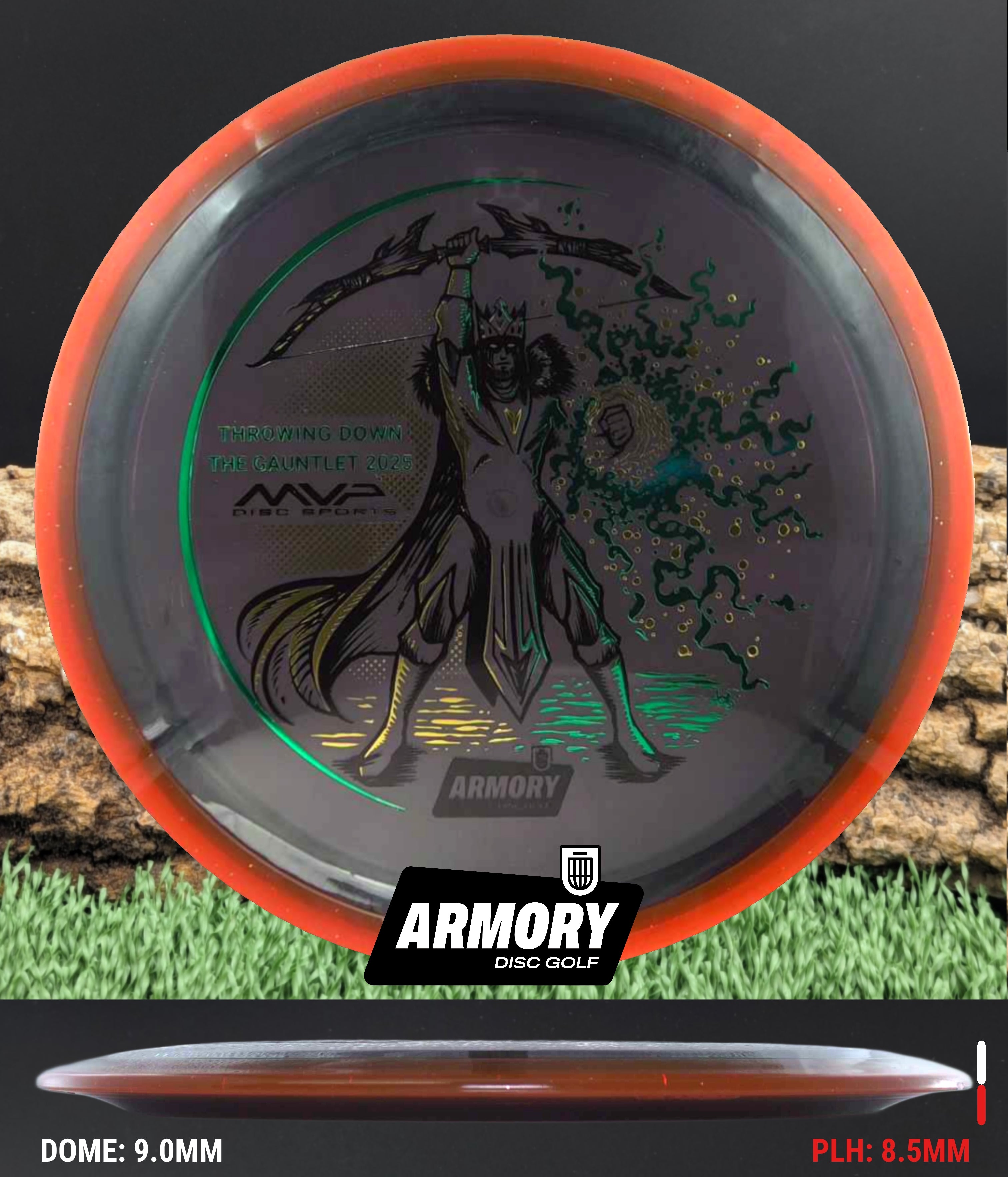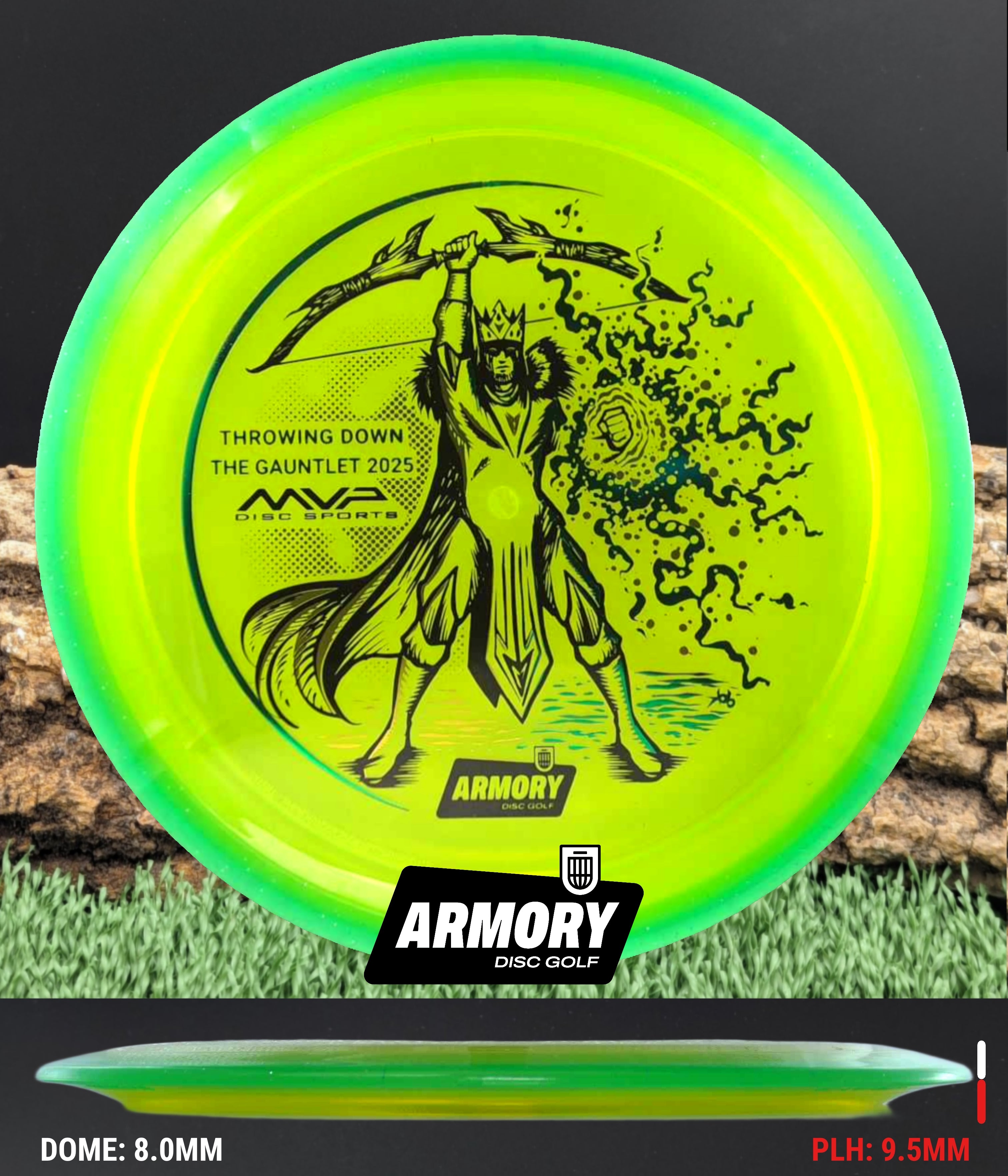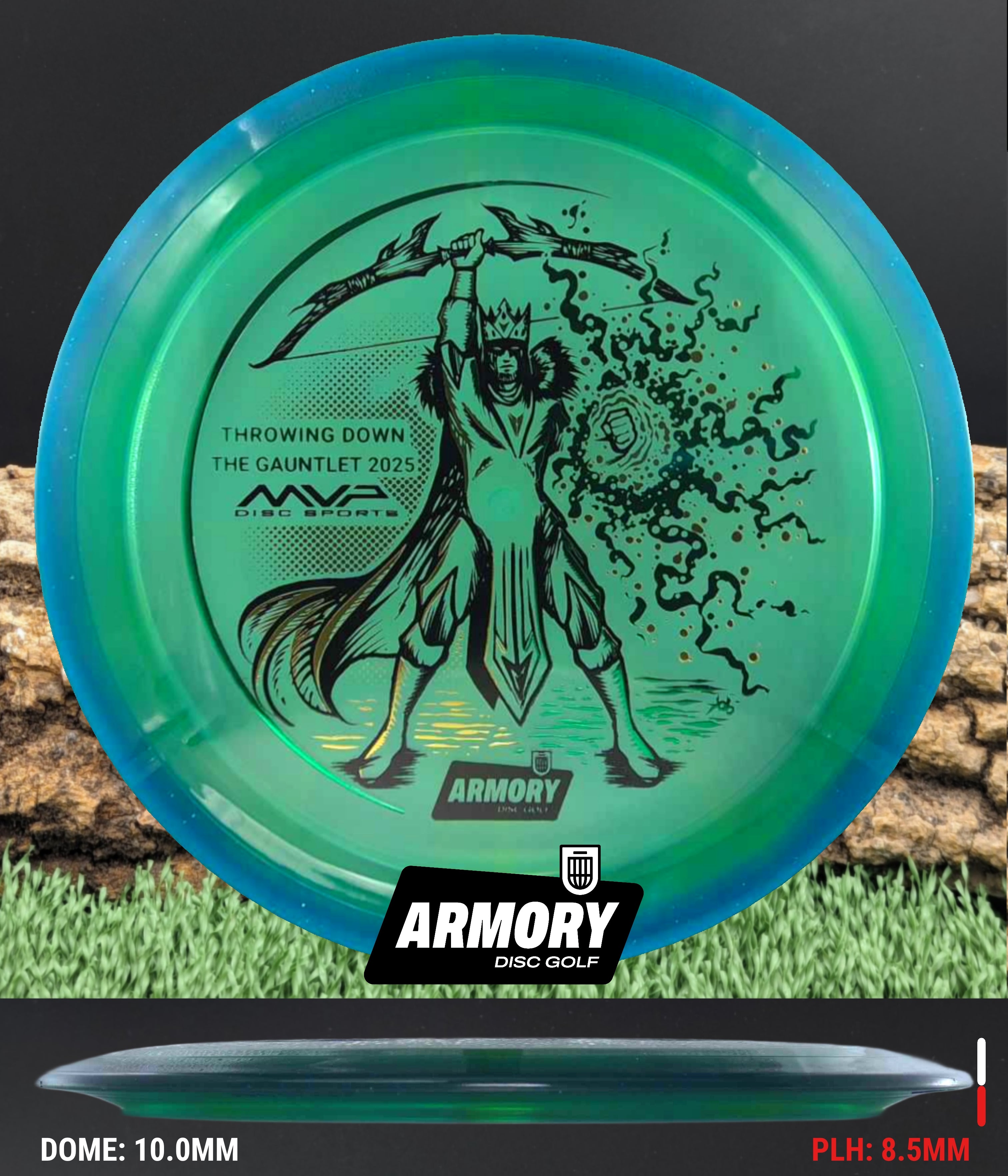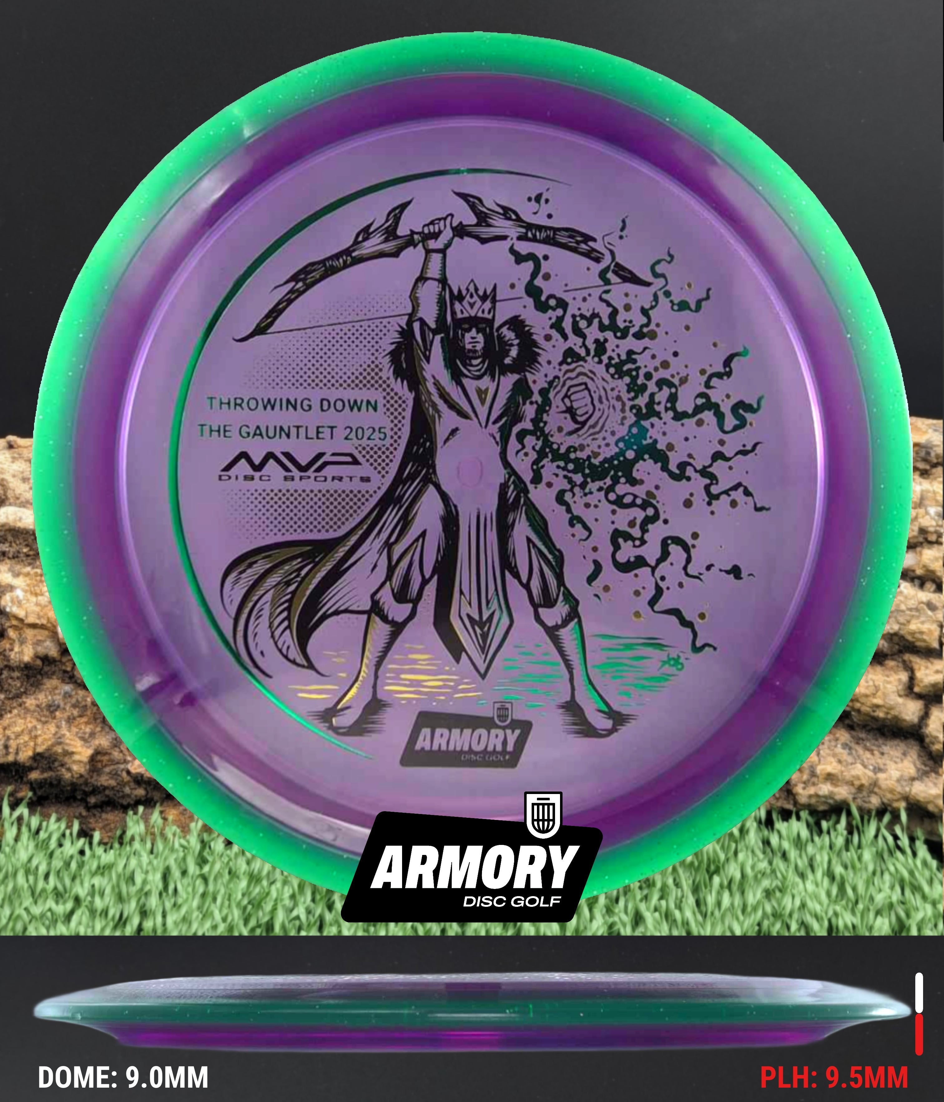 Celebrate the 2025 Championship with the Prism Proton Soft Vanish, featuring an exclusive 3-foil design (black, gold, and emerald) by Kelly “KoB” Baber. The stamp depicts a crowned Syndicate general standing victorious, bow raised high and magical energy extending from his hand — a tribute to precision, strategy, and triumph.